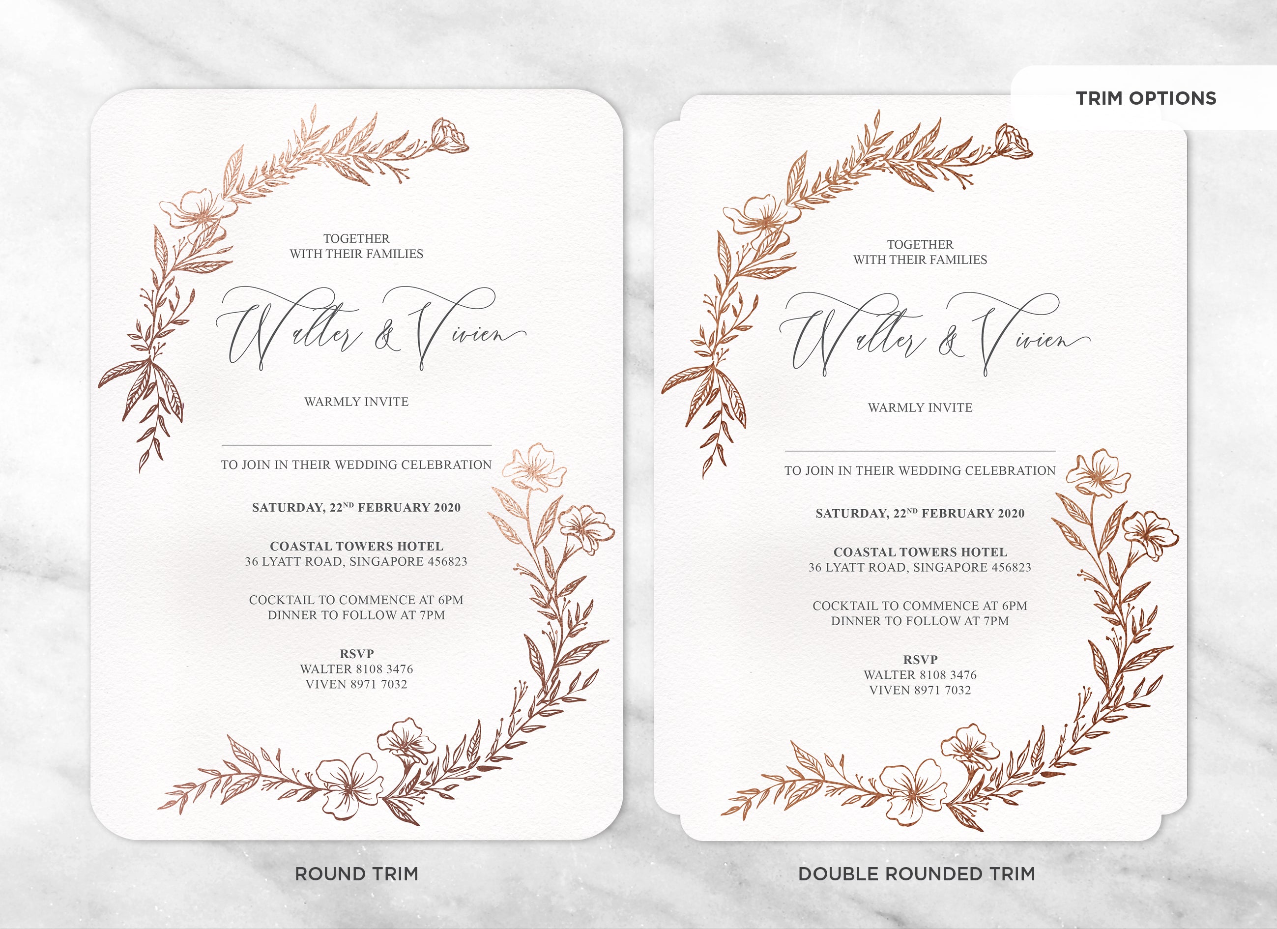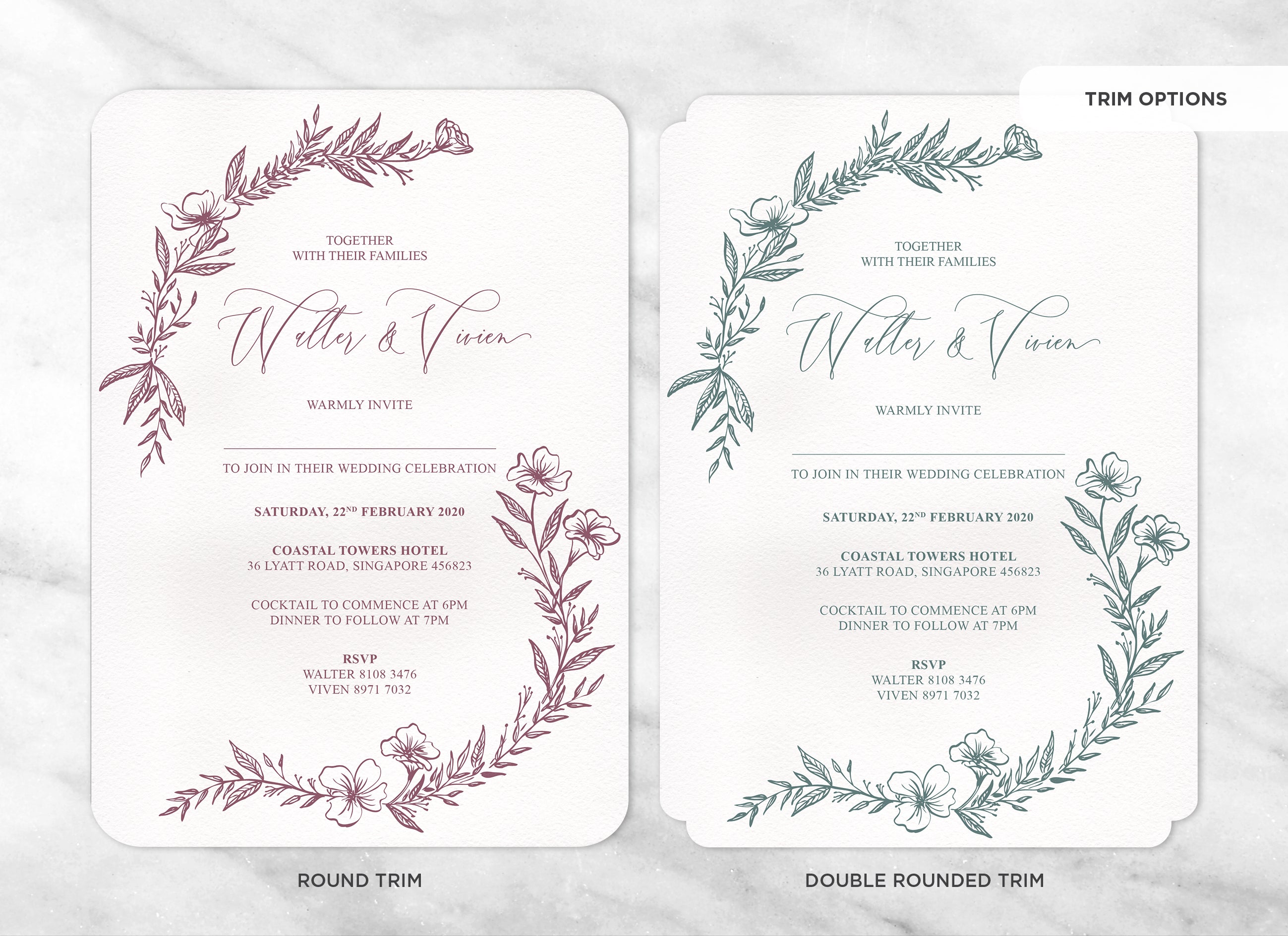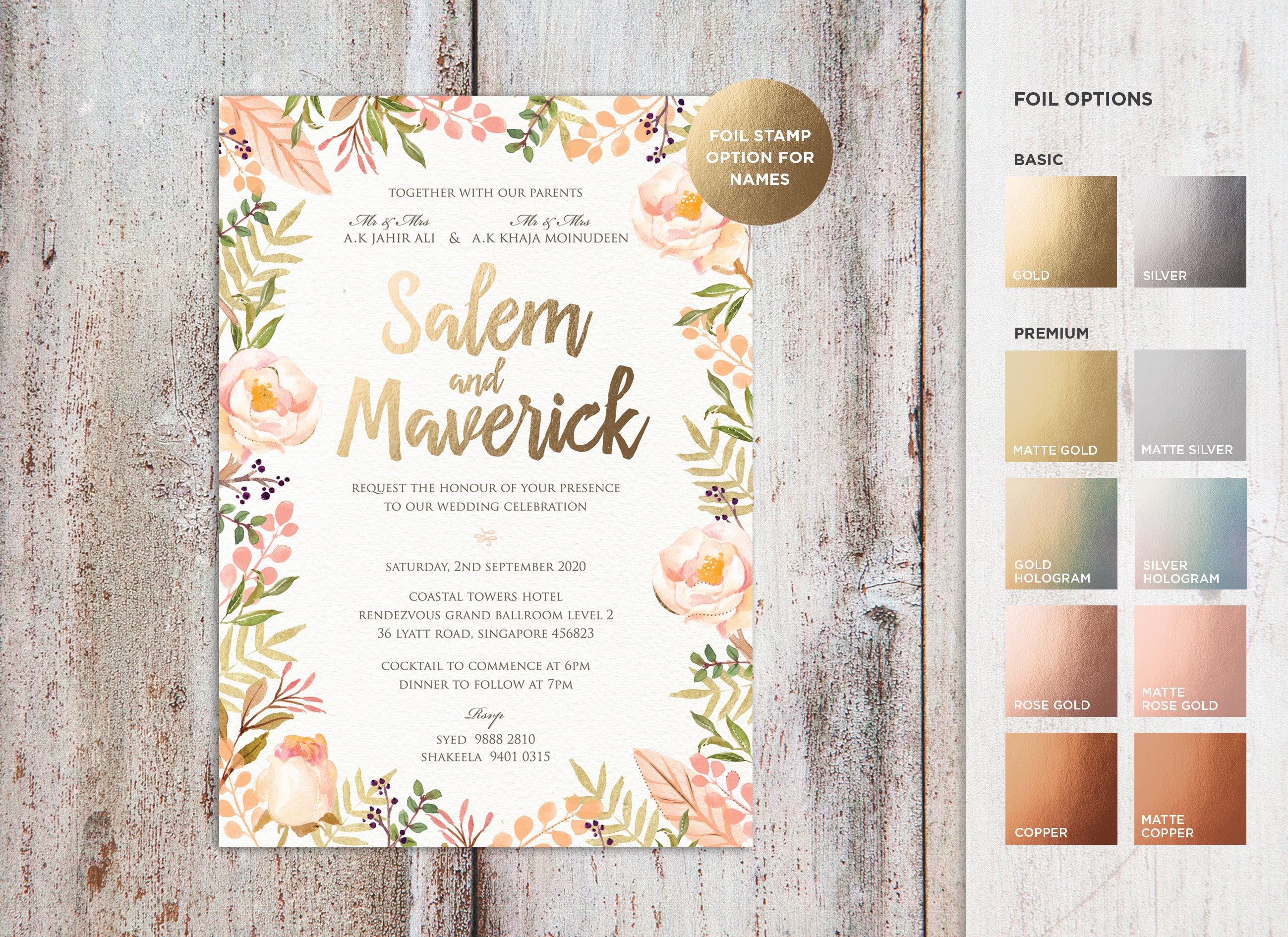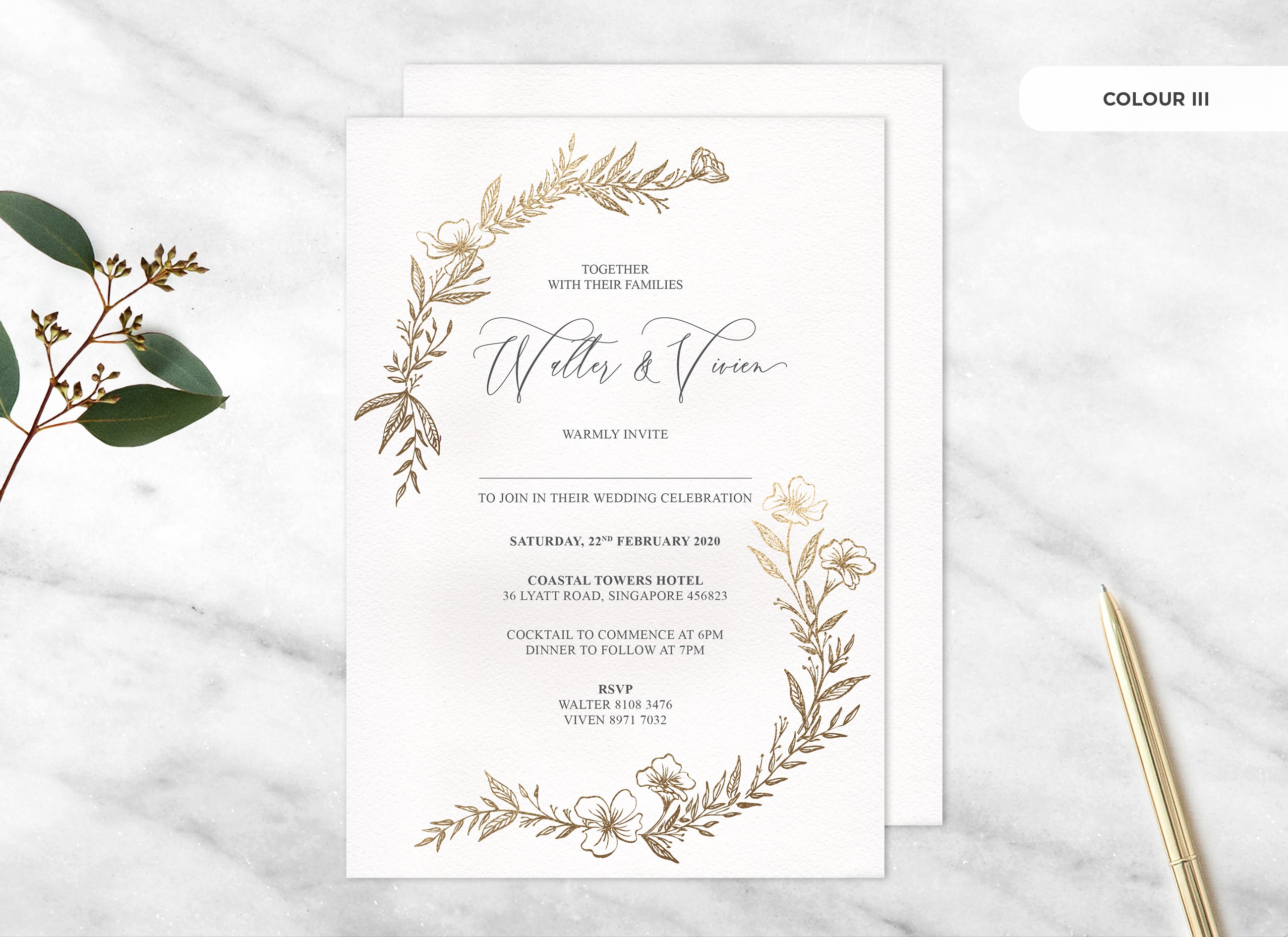 Our team of talented designers ensures that each wedding card is crafted with attention to detail, using high-quality materials and exquisite printing techniques. Whether you prefer shimmering foiling, or vibrant digital printing, we have the expertise to bring your vision to life.