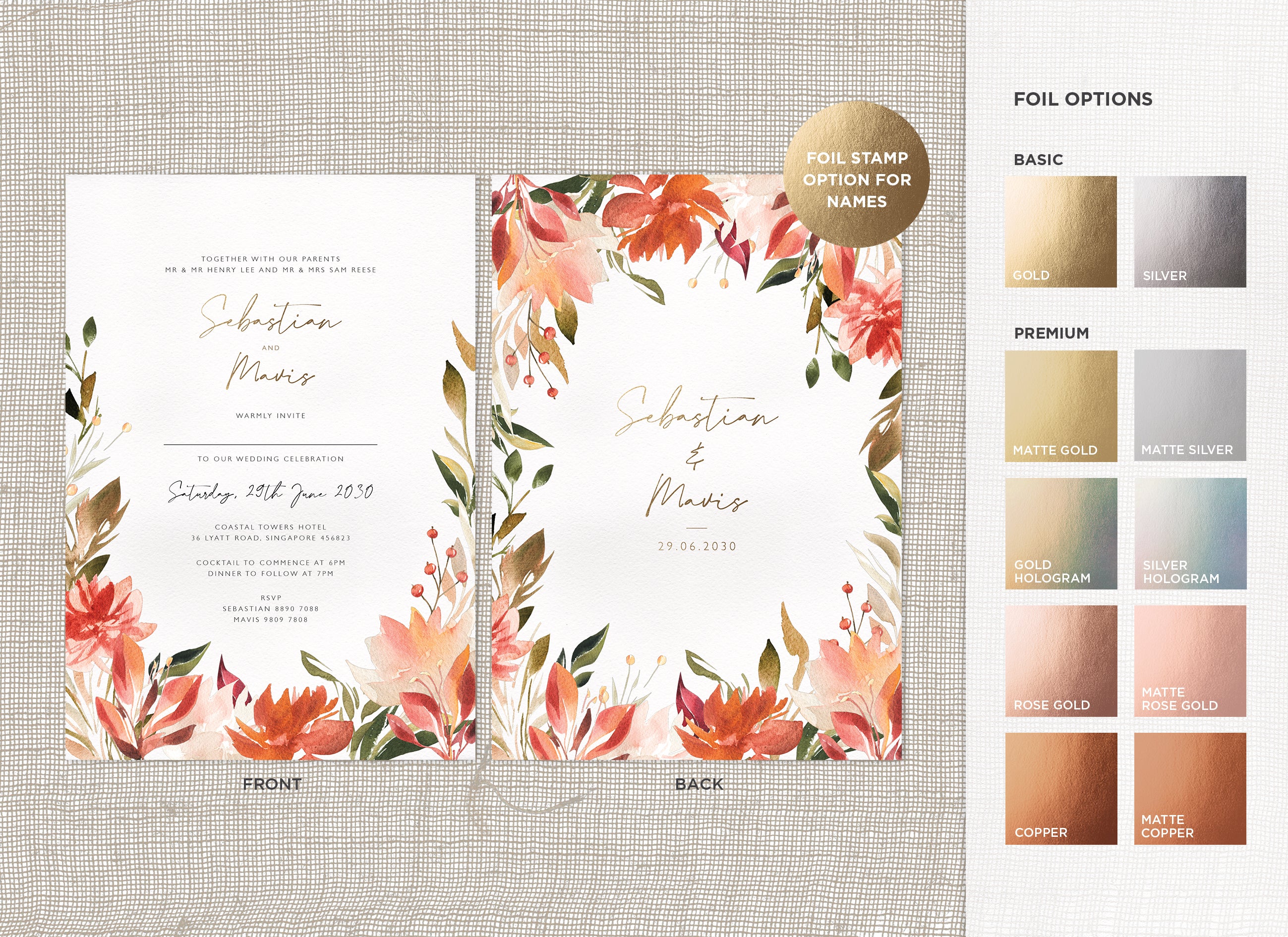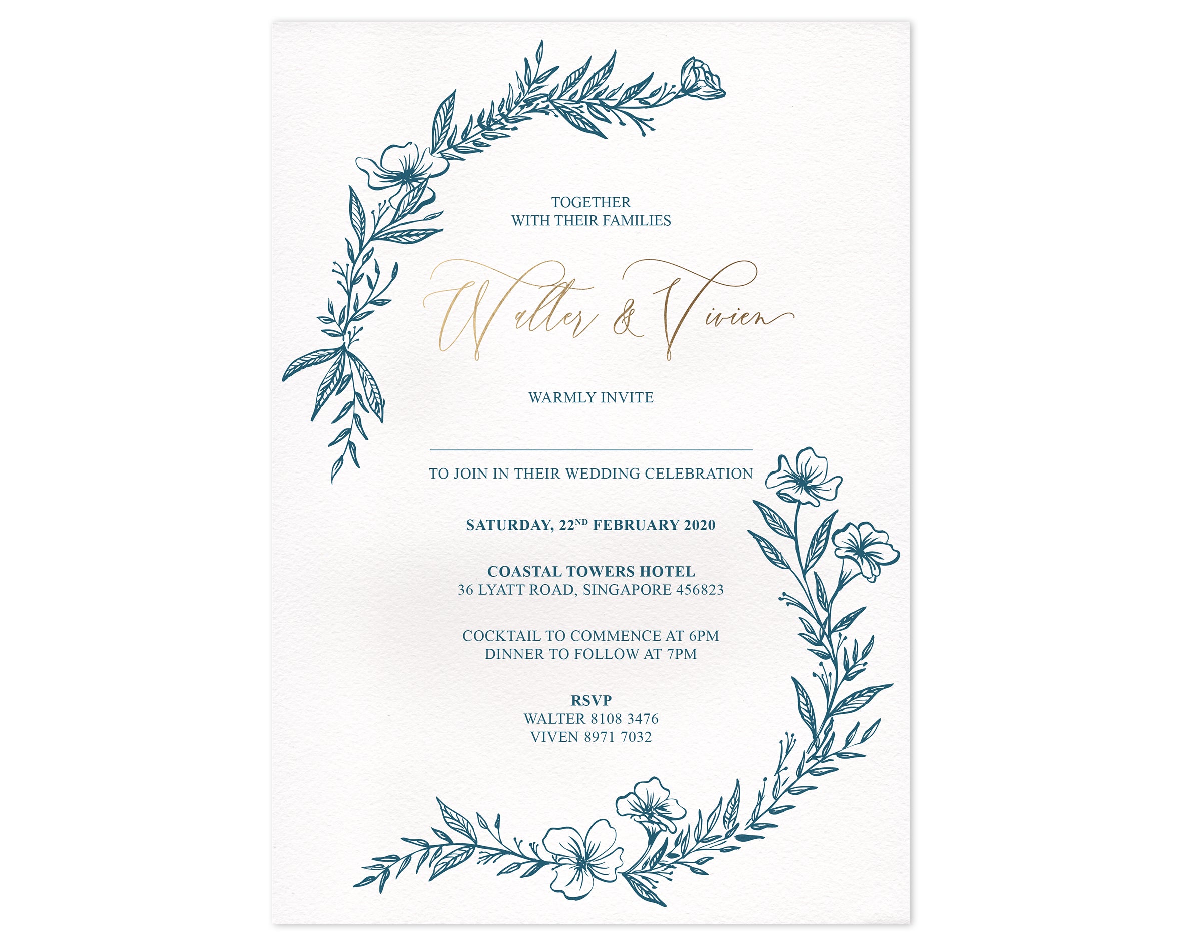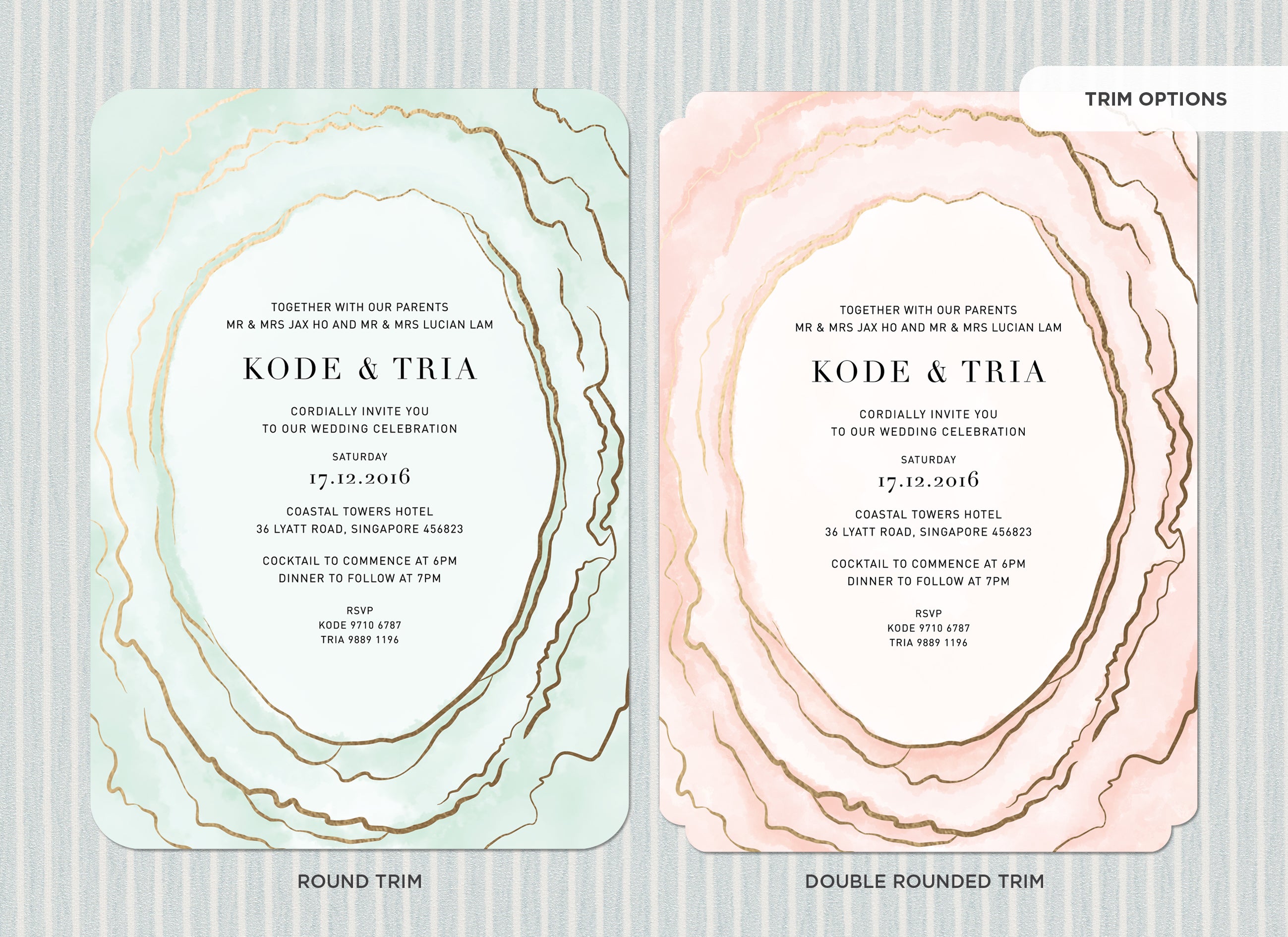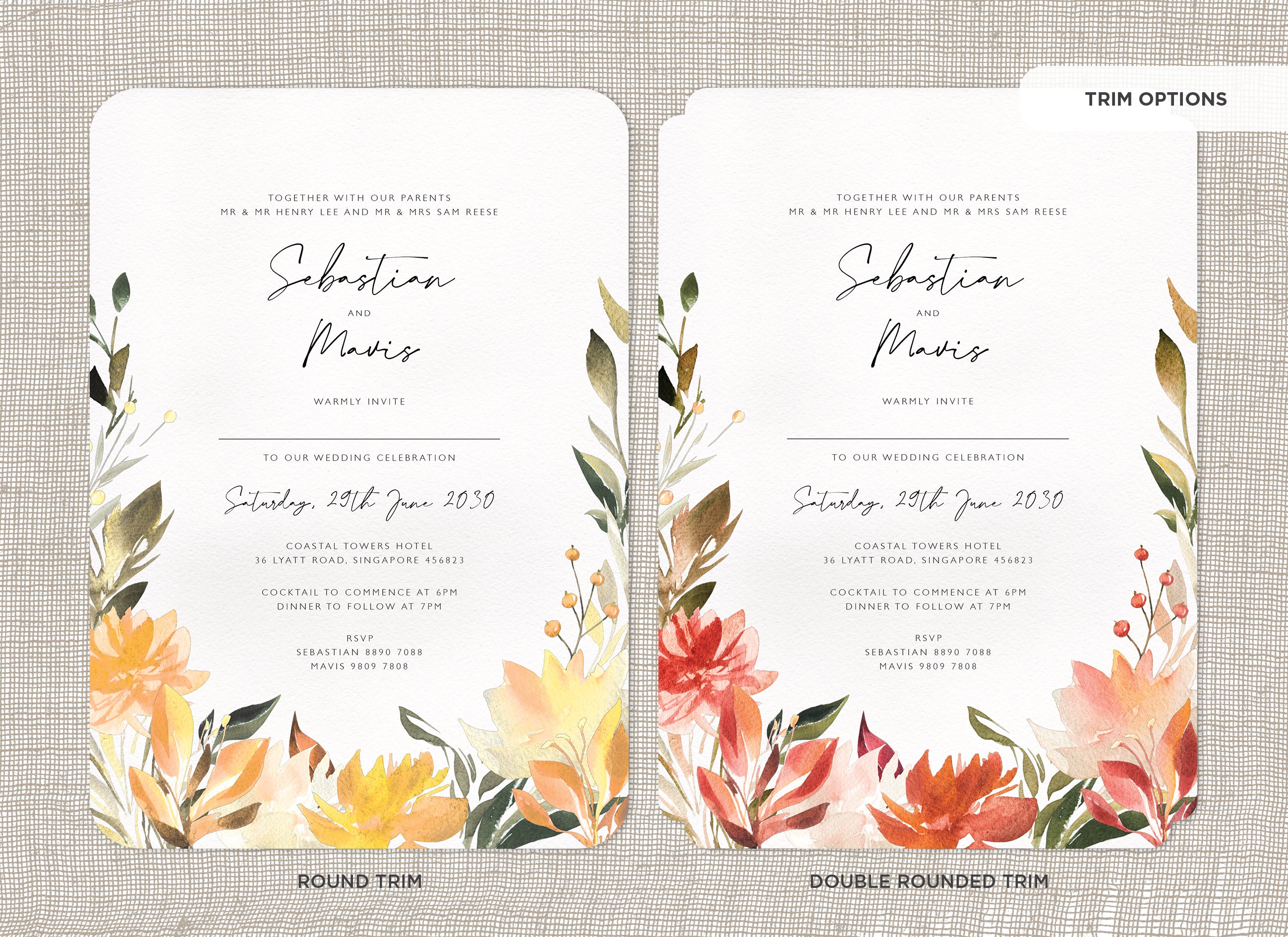 Our team of talented designers ensures that each wedding card is crafted with attention to detail, using high-quality materials and exquisite printing techniques. Whether you prefer shimmering foiling, or vibrant digital printing, we have the expertise to bring your vision to life.