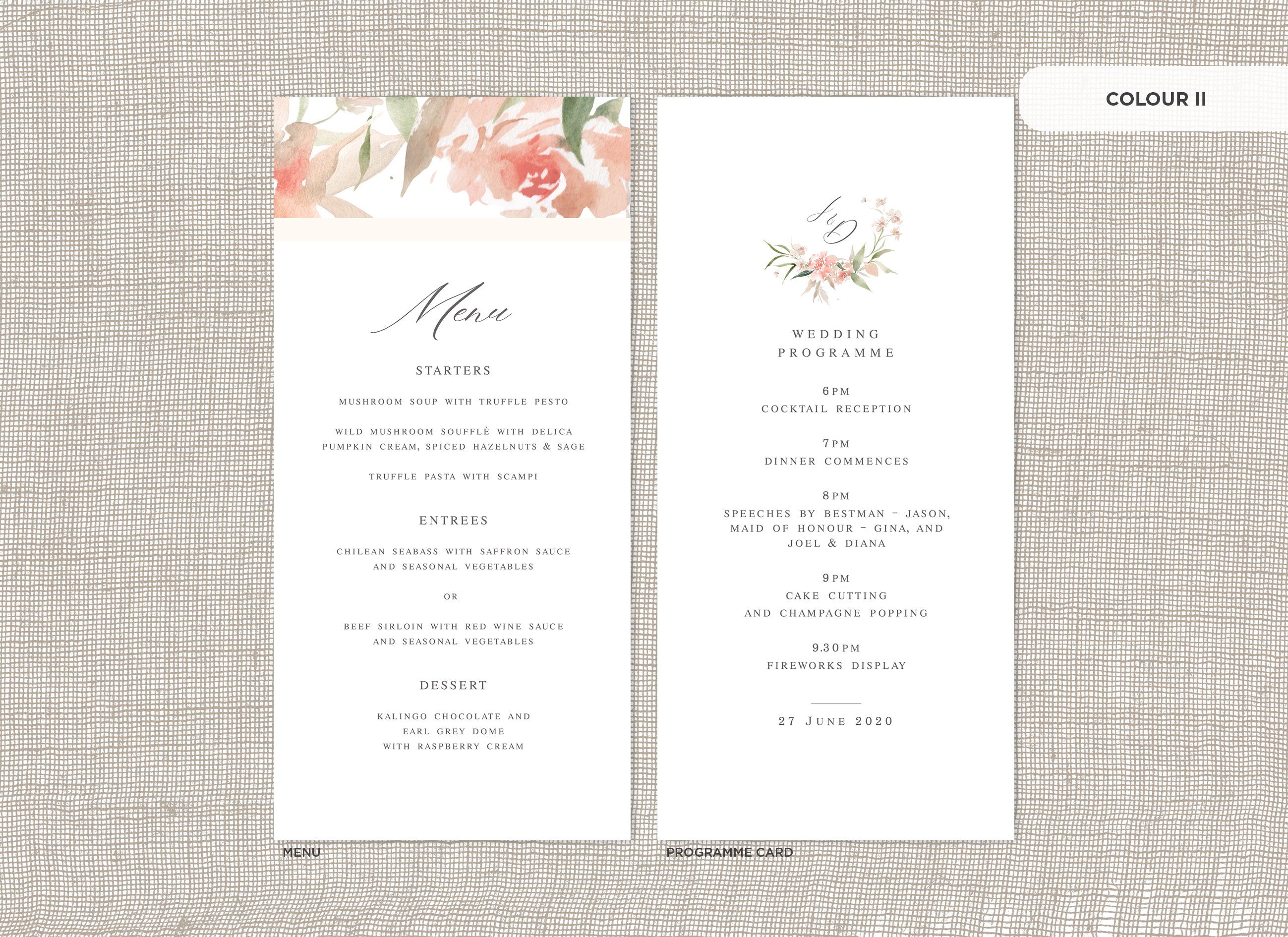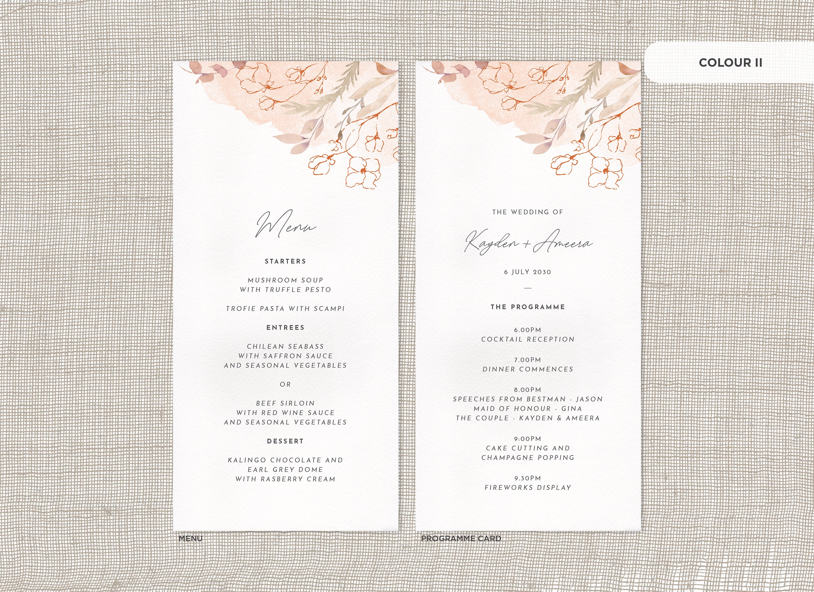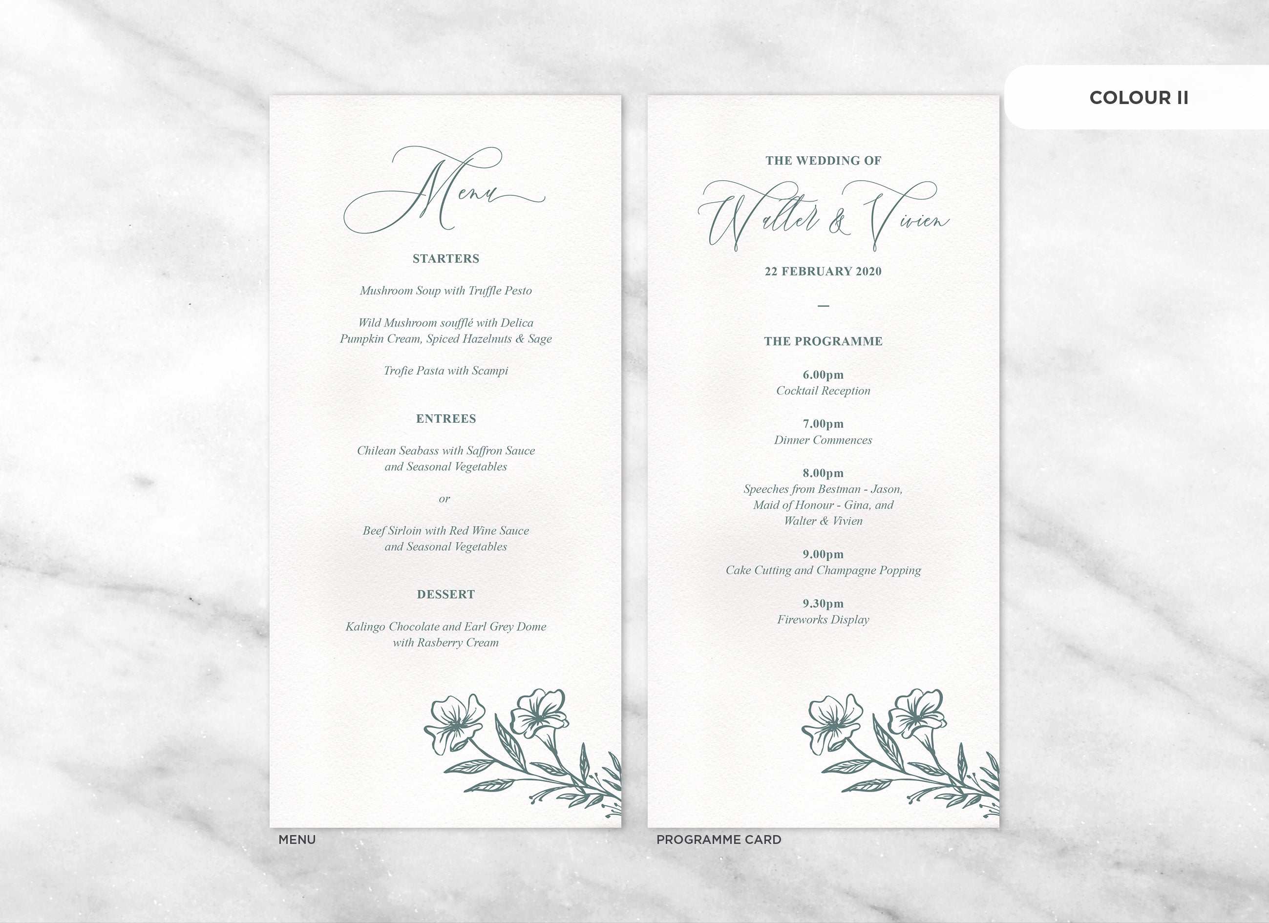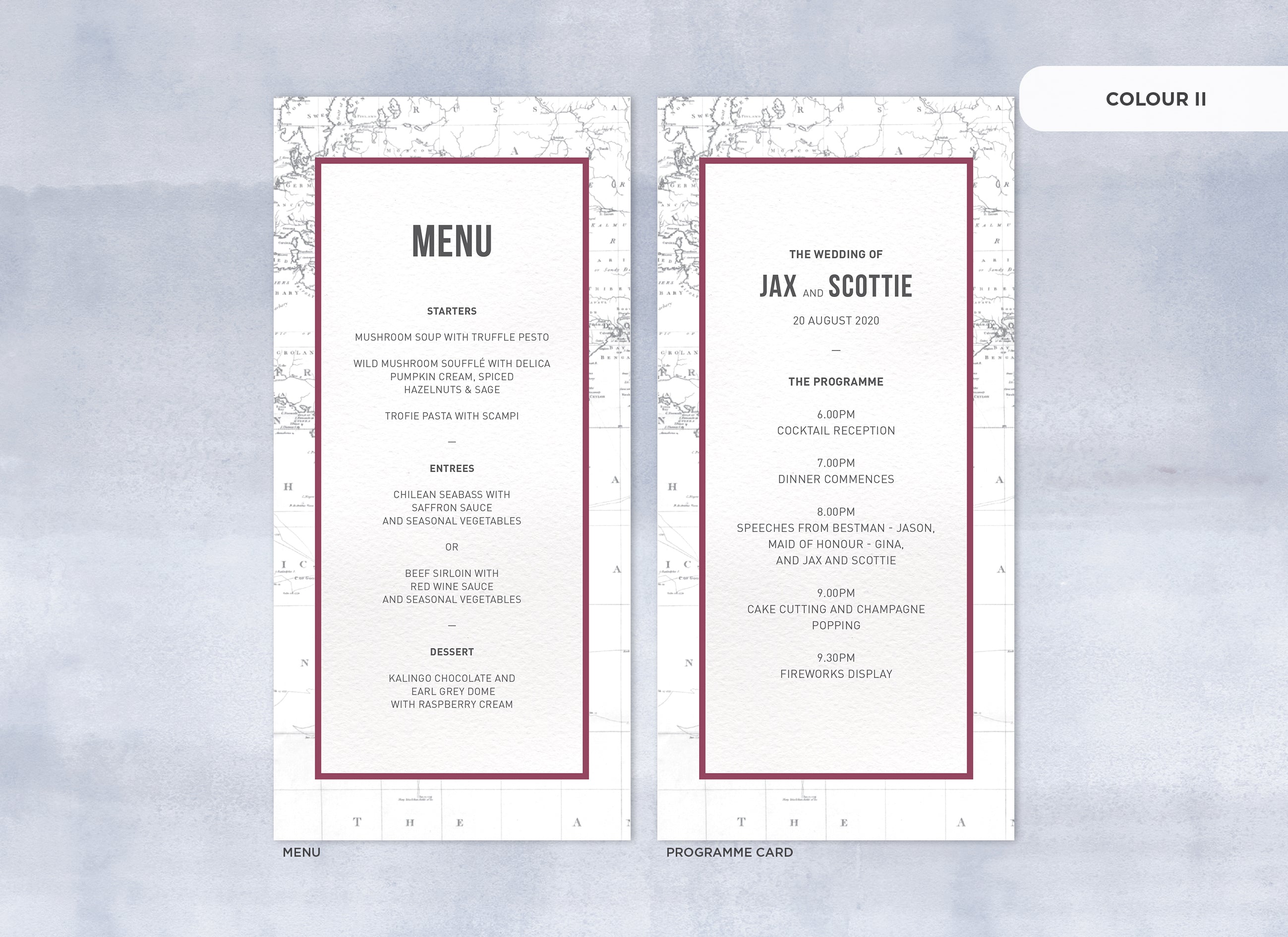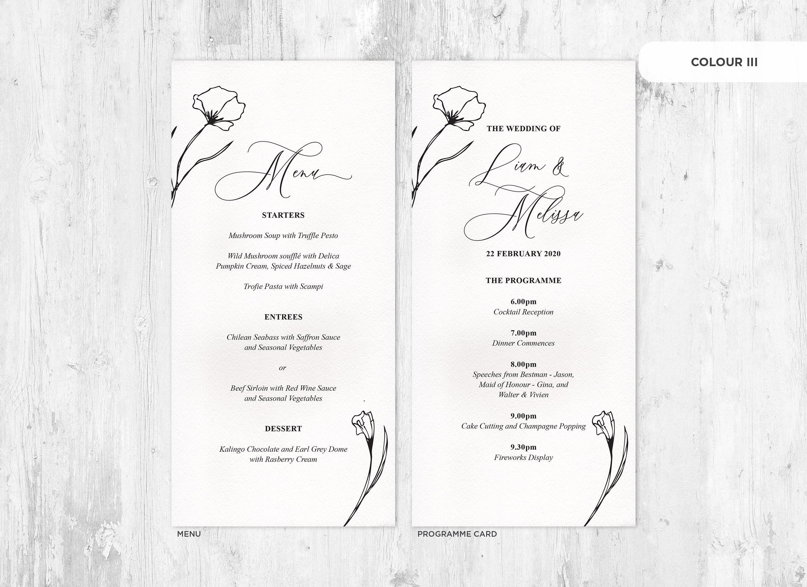It's the little things that count! Accessorise your wedding day with matching Menu or Programme cards to your invitations.