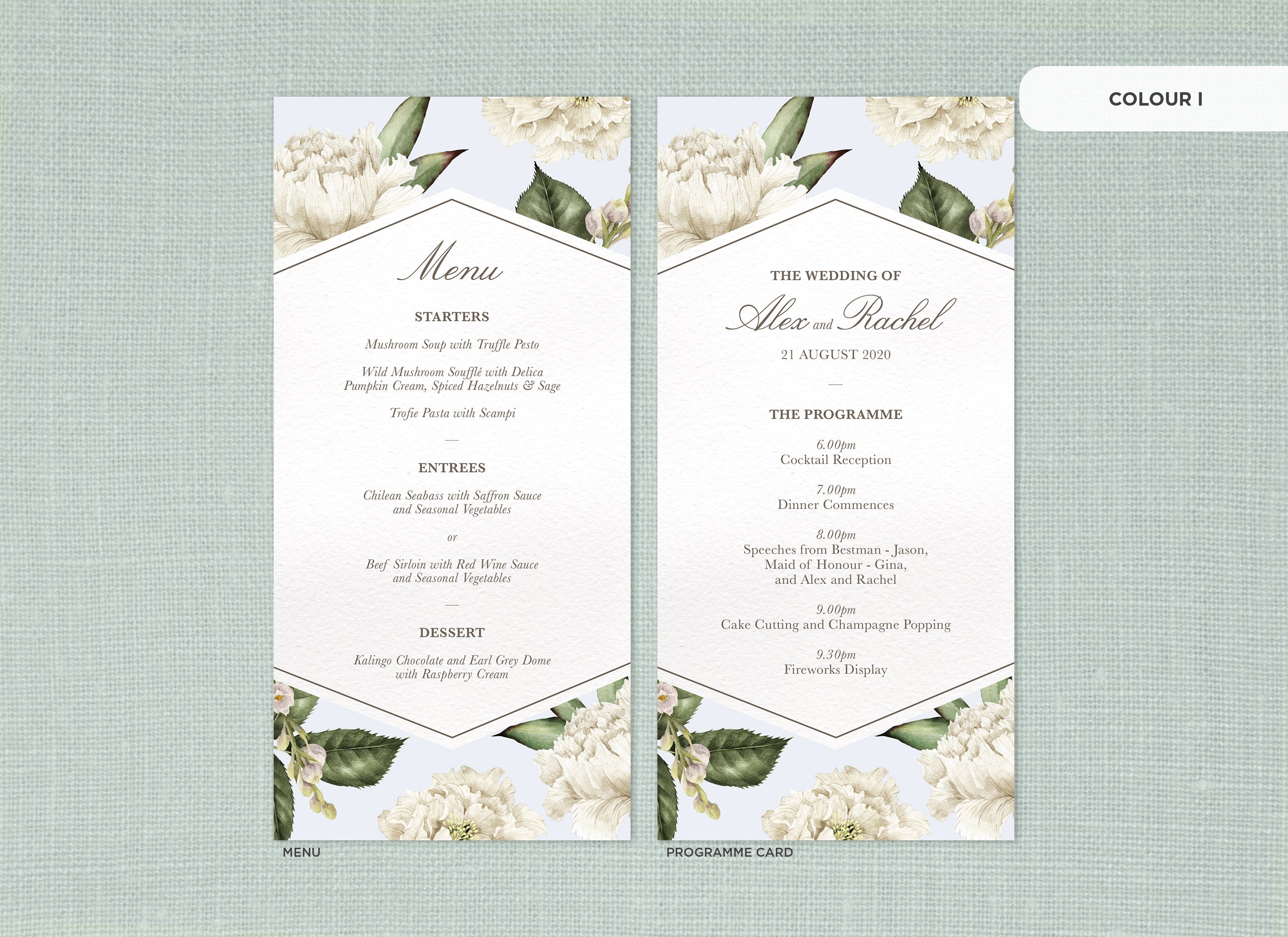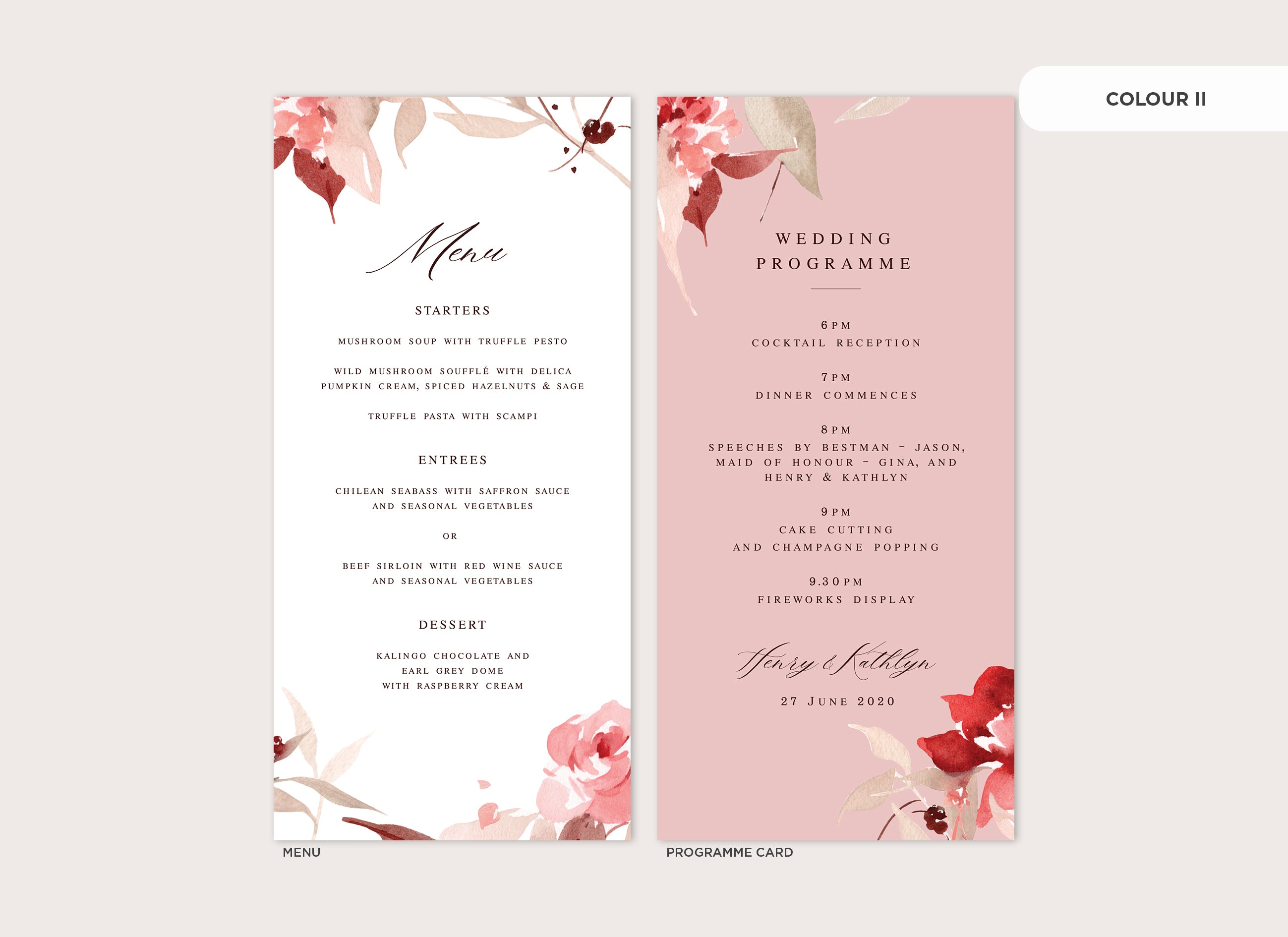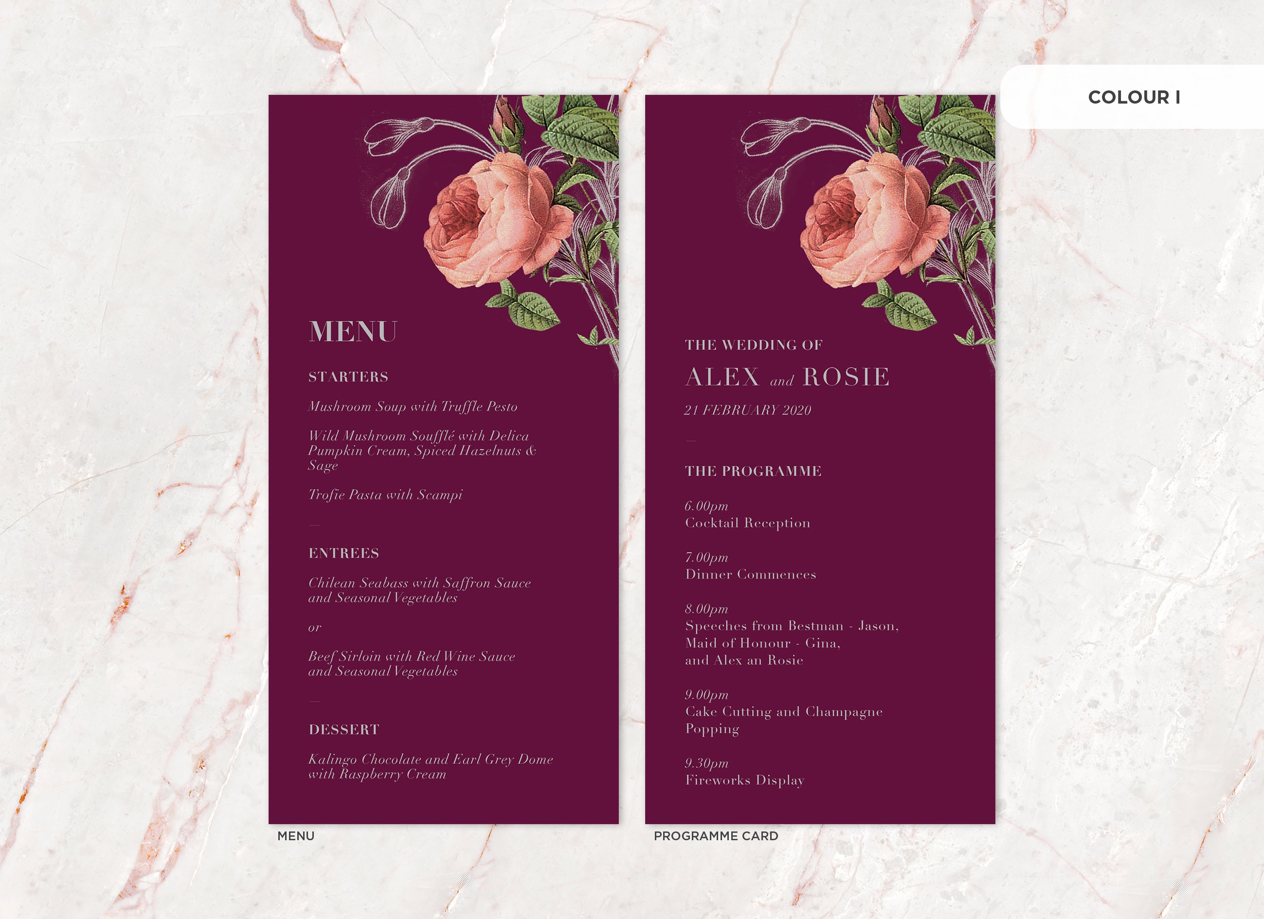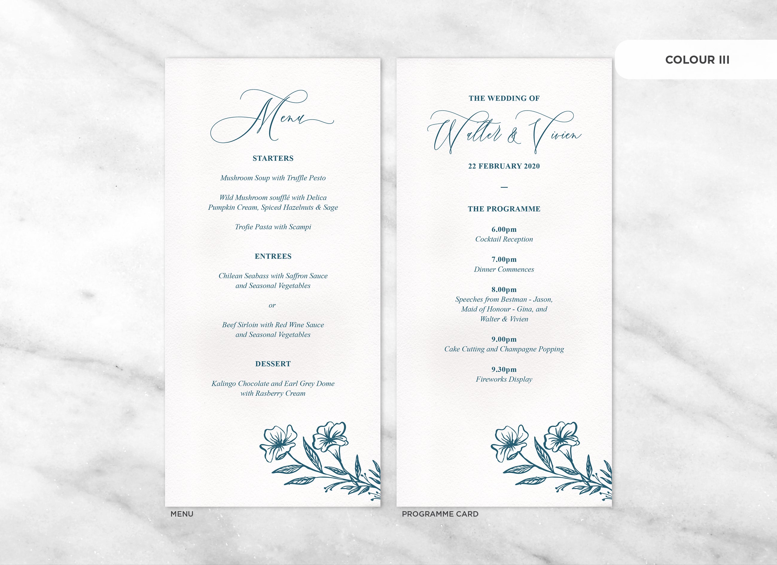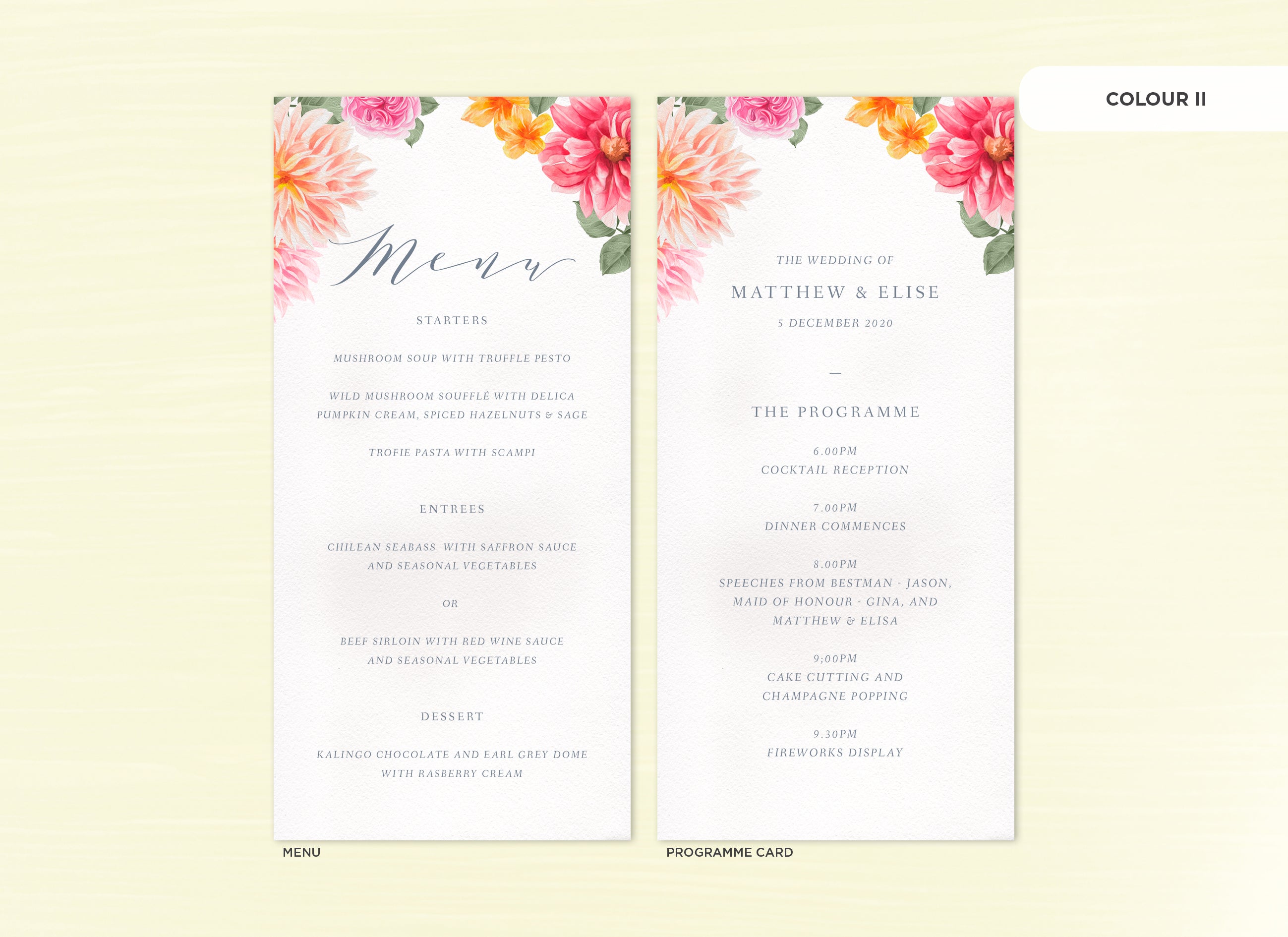 It's the little things that count! Accessorise your wedding day with matching Menu or Programme cards to your invitations.