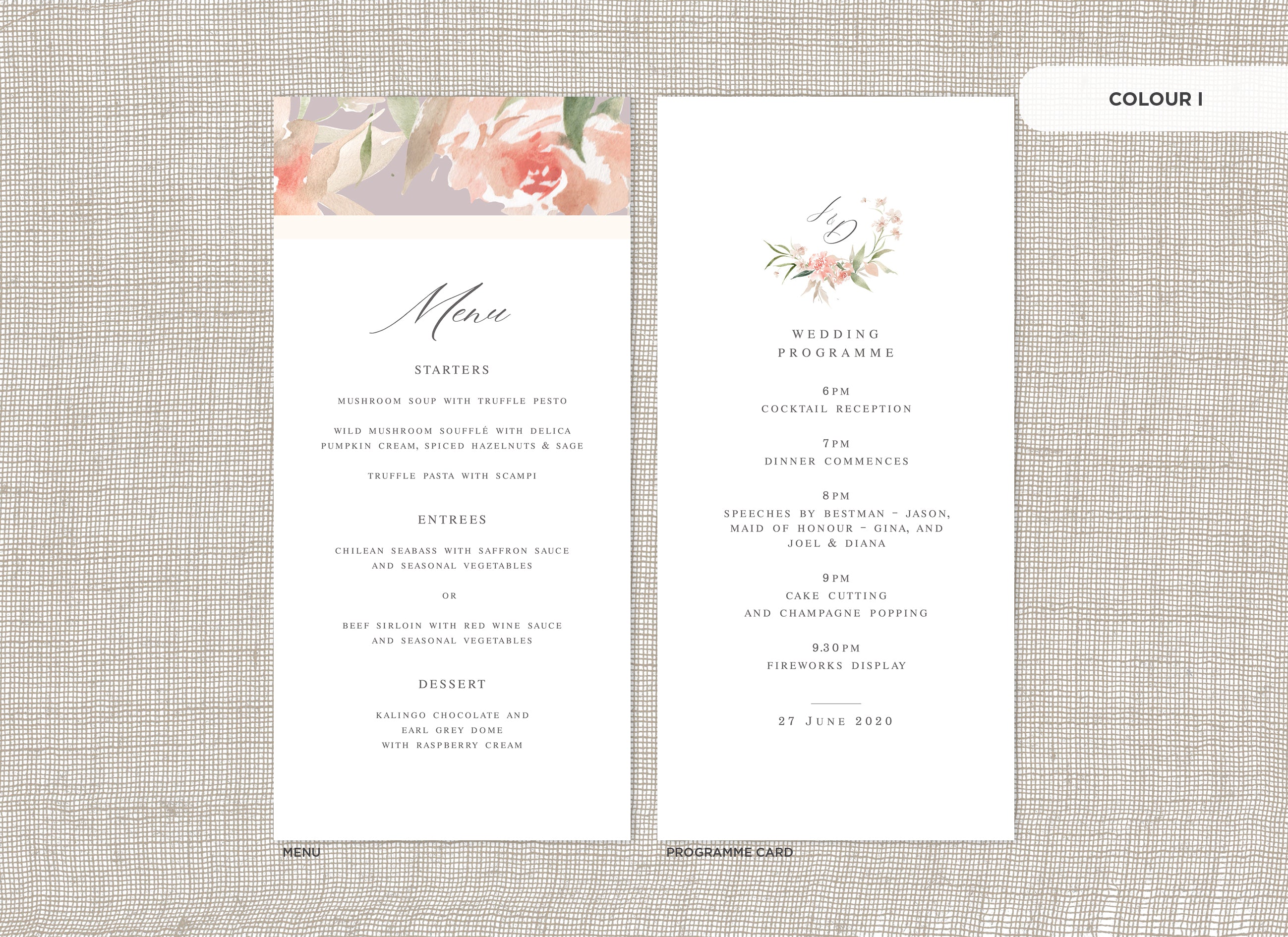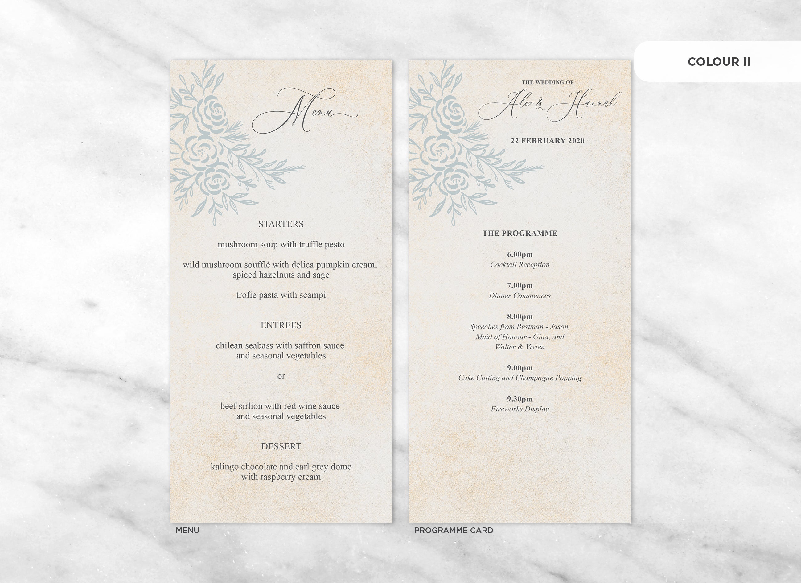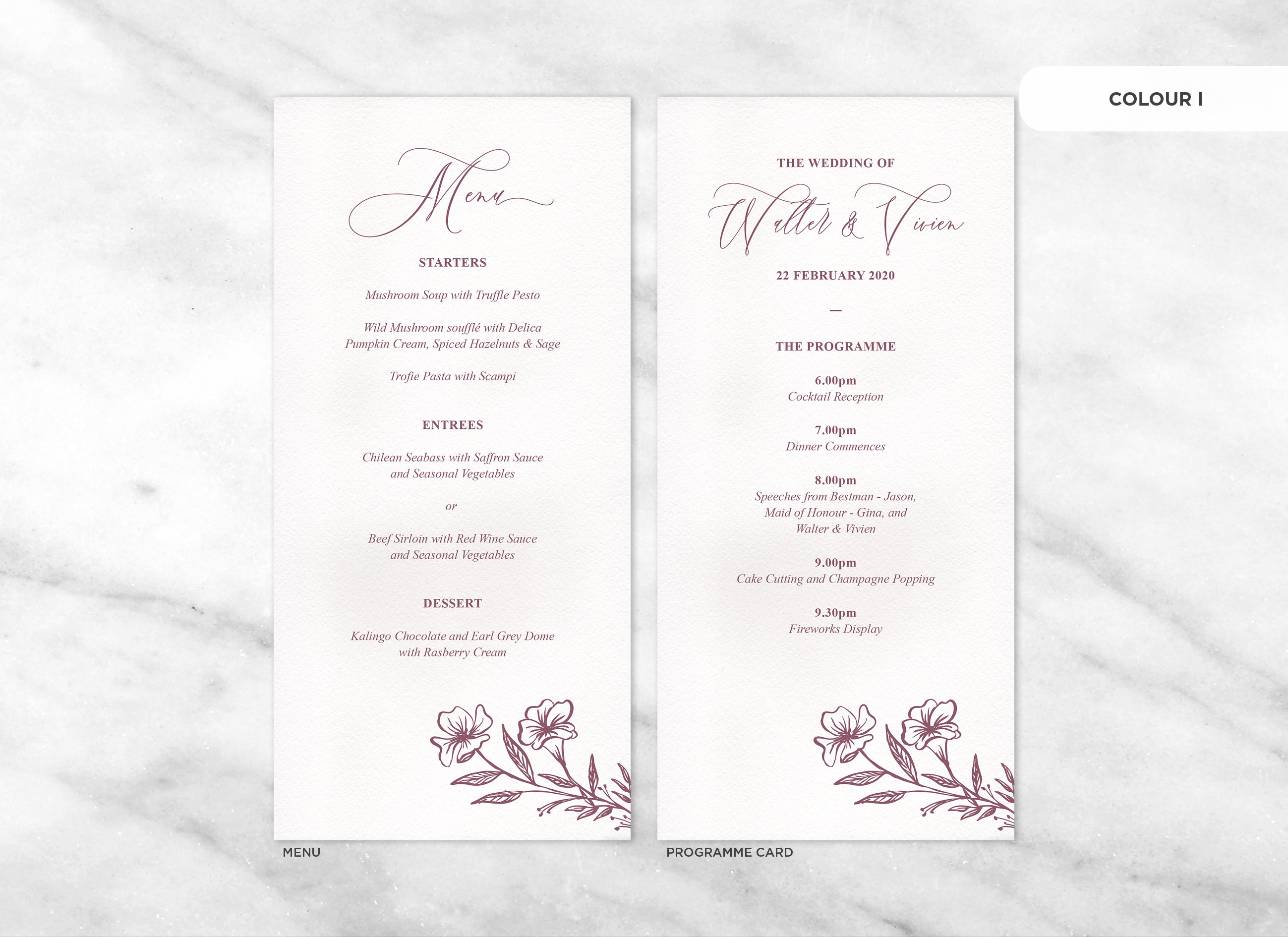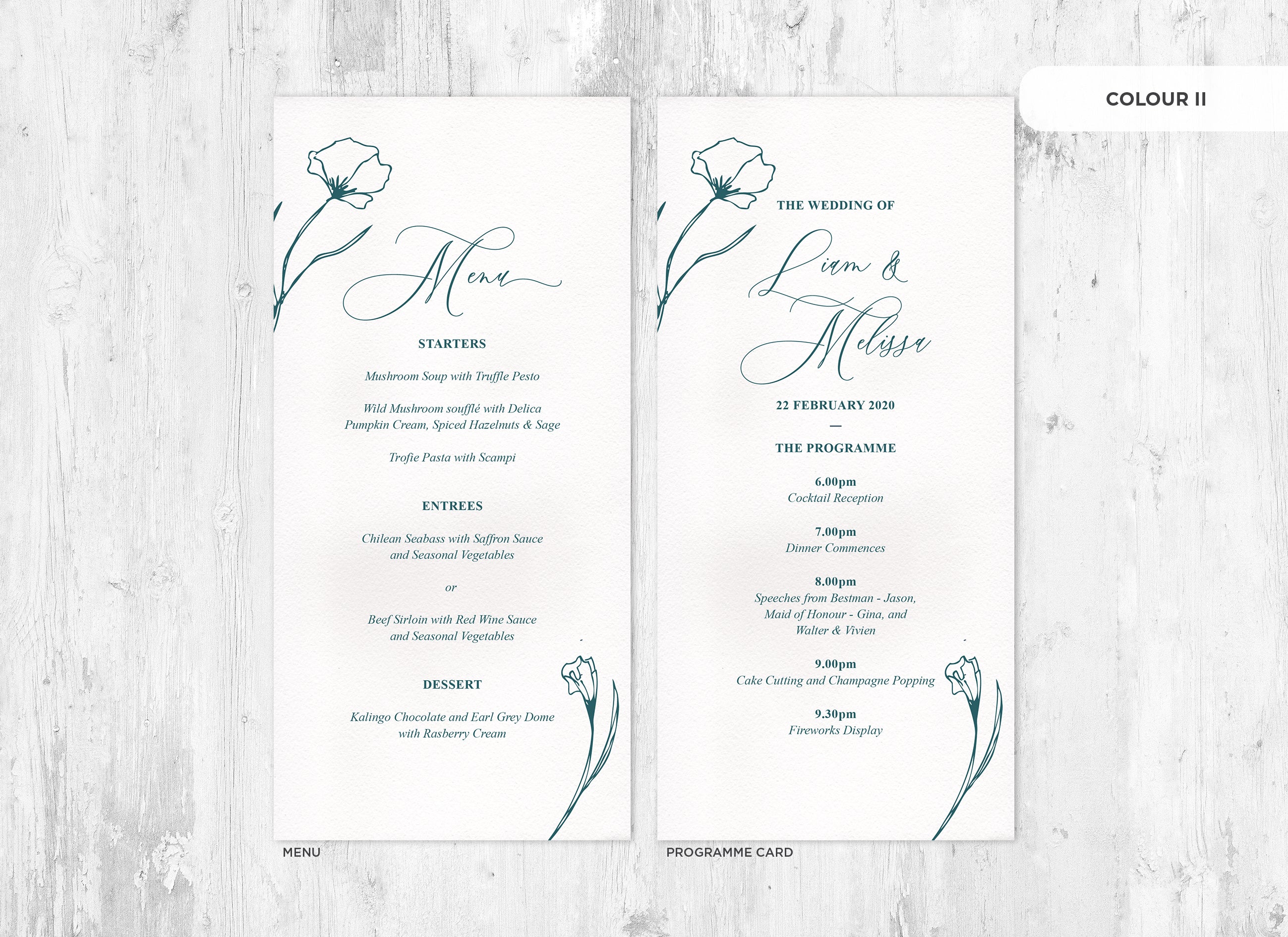 It's the little things that count! Accessorise your wedding day with matching Menu or Programme cards to your invitations.