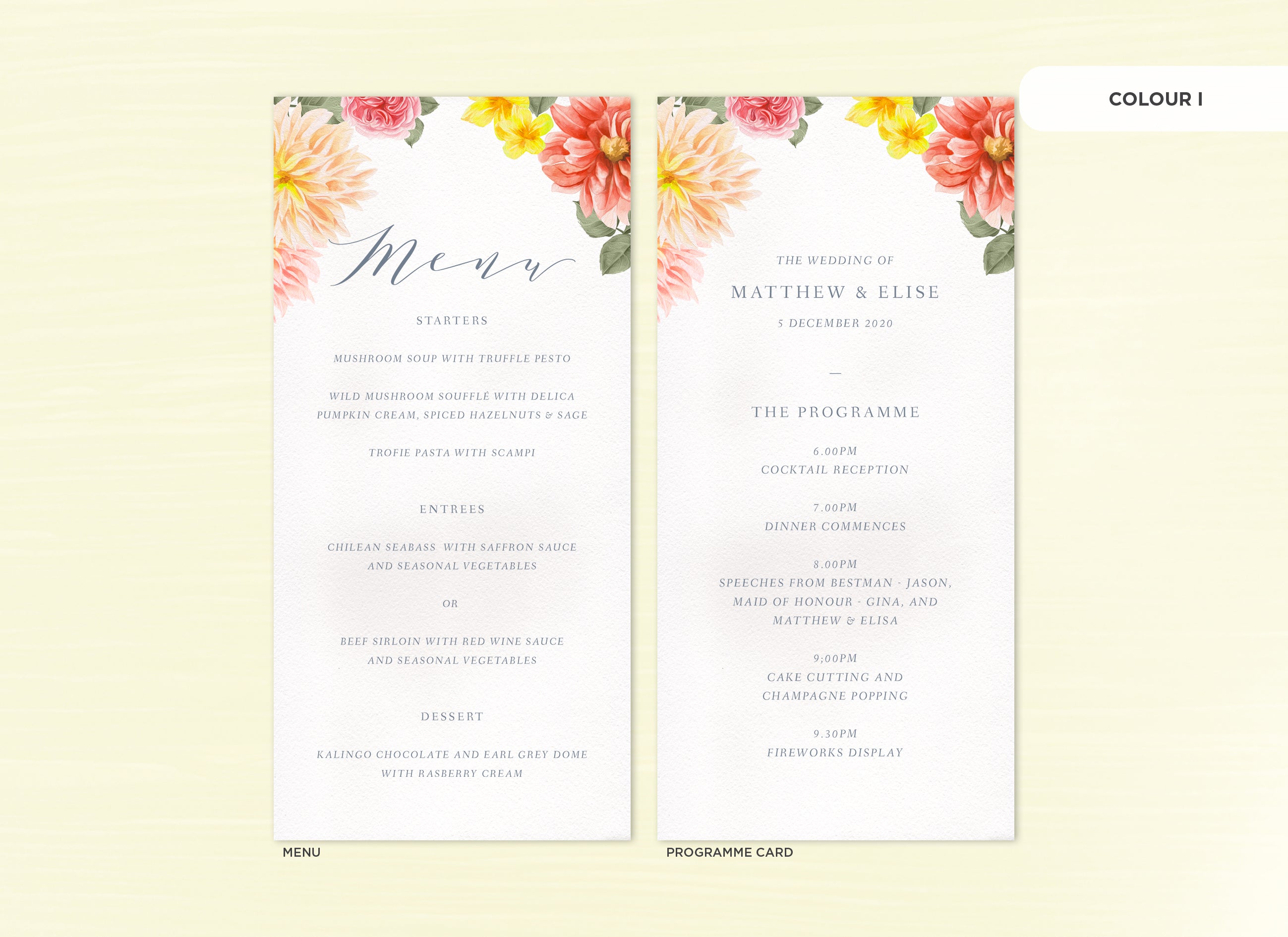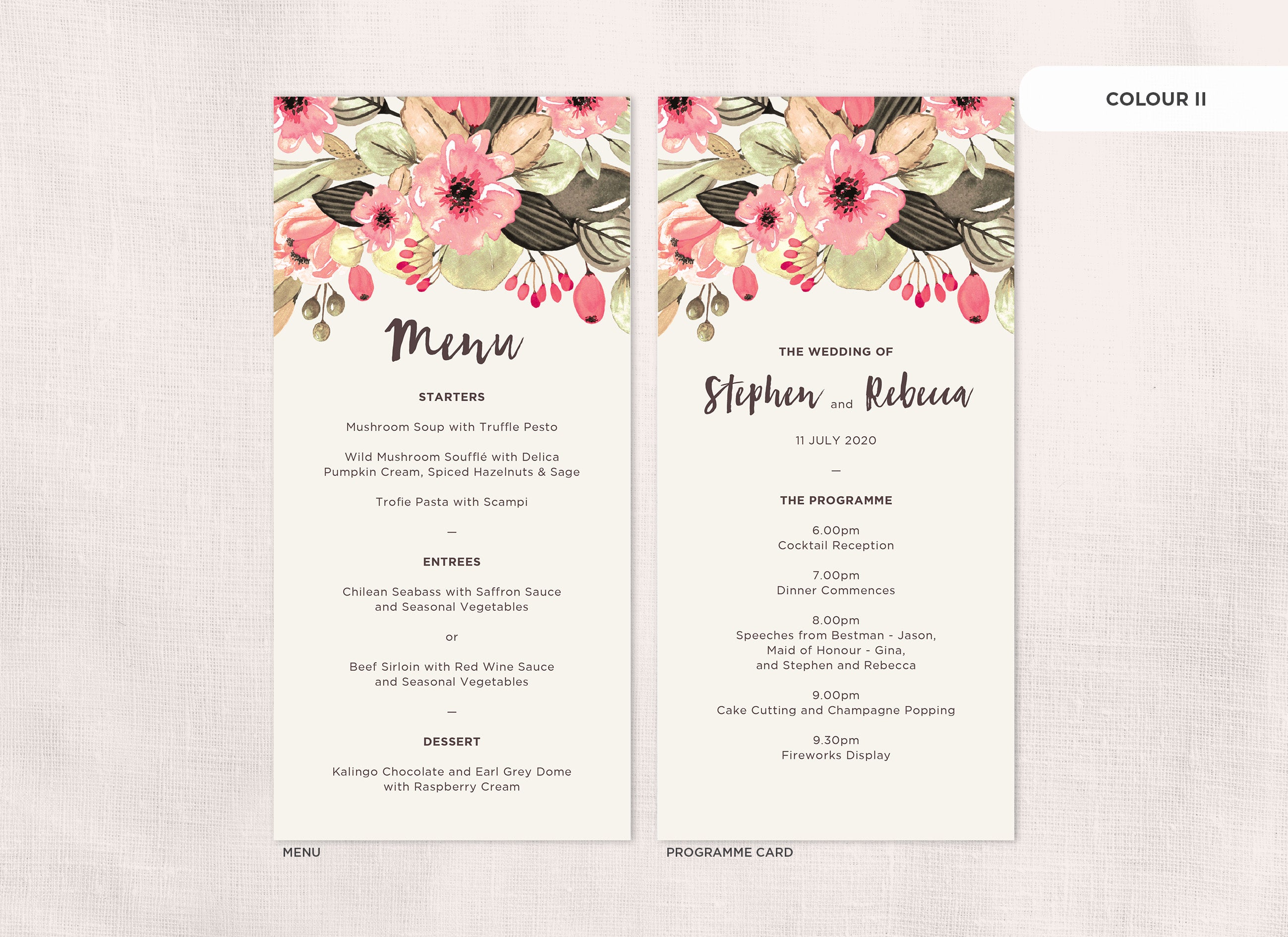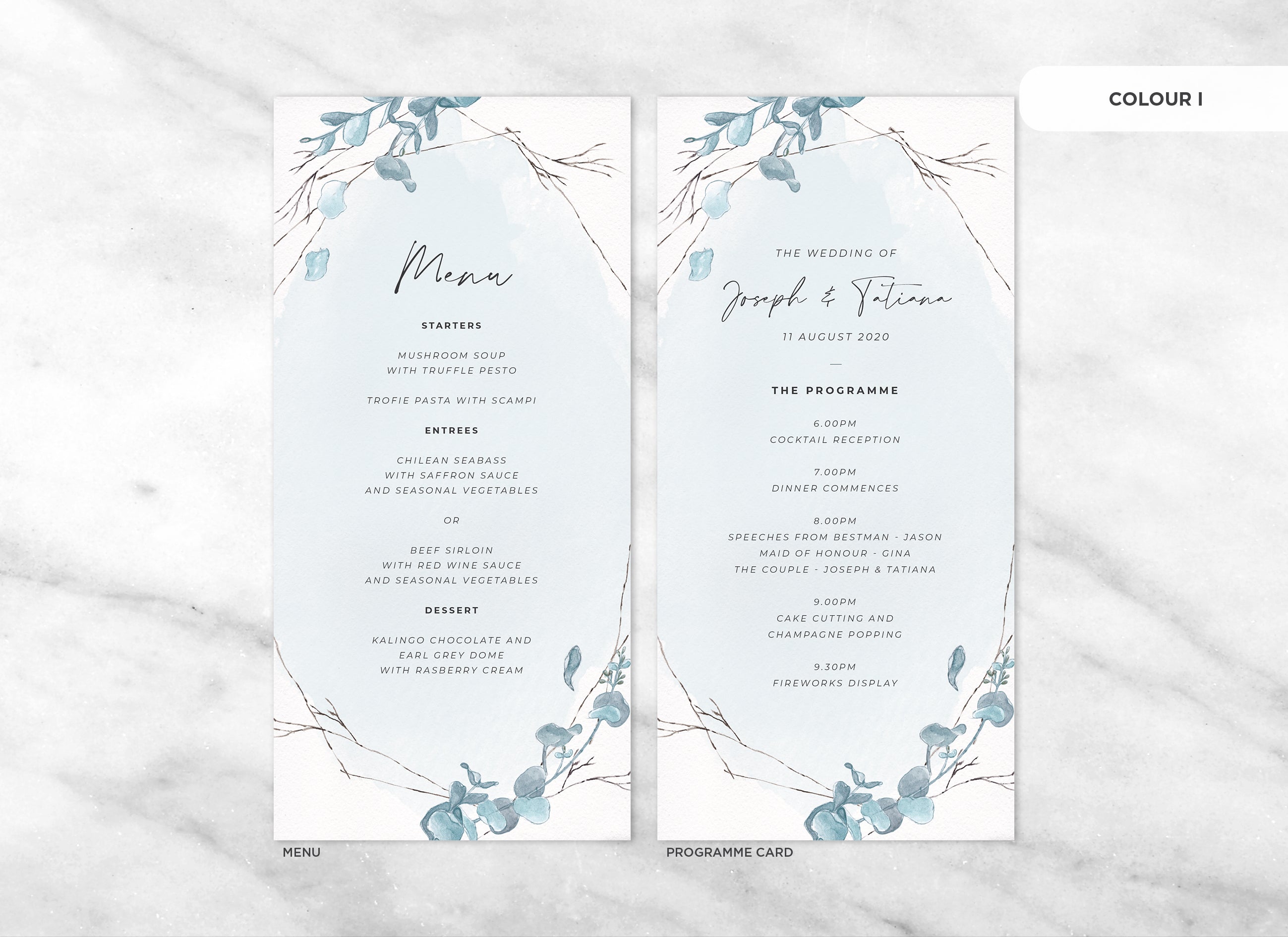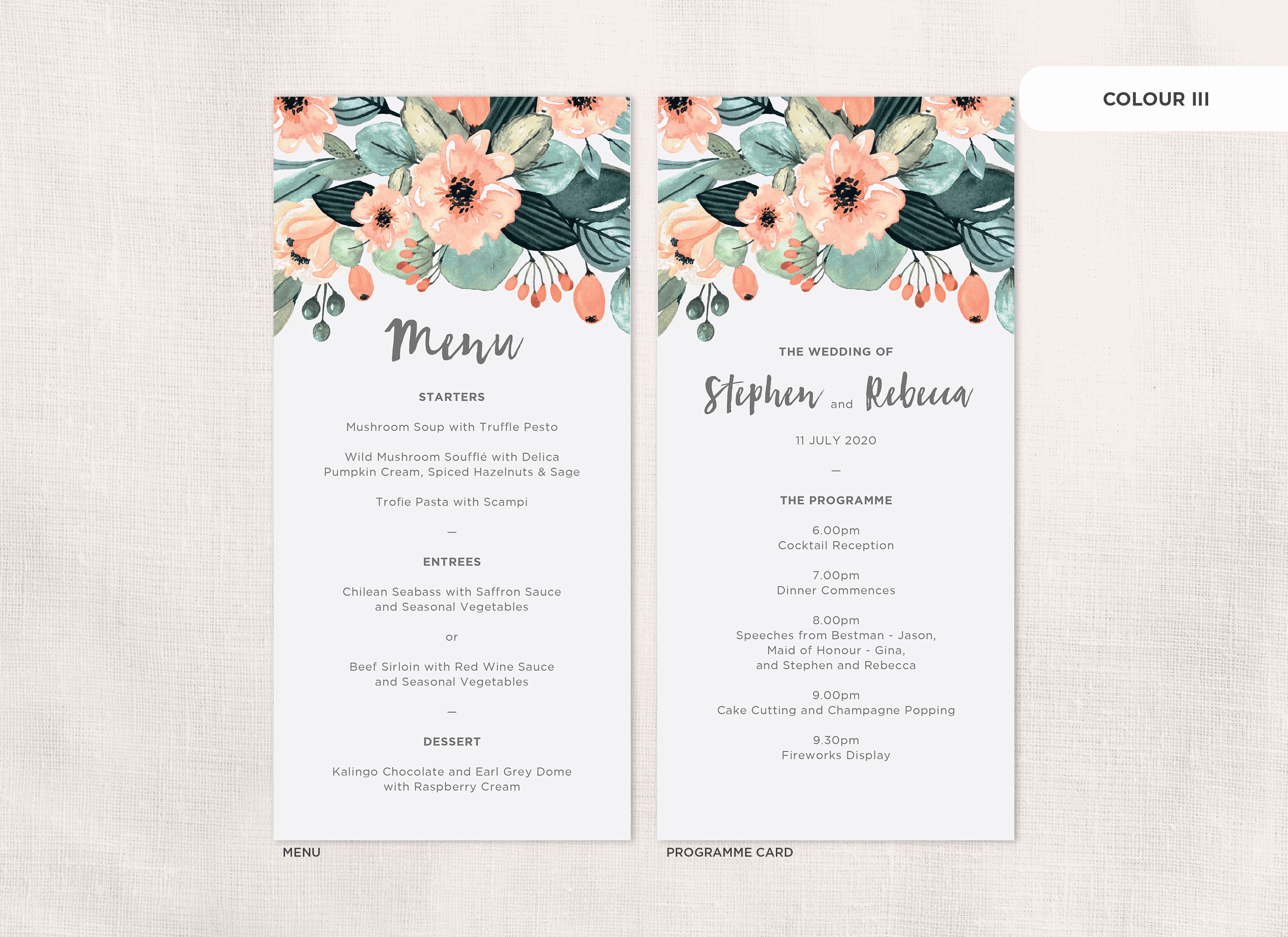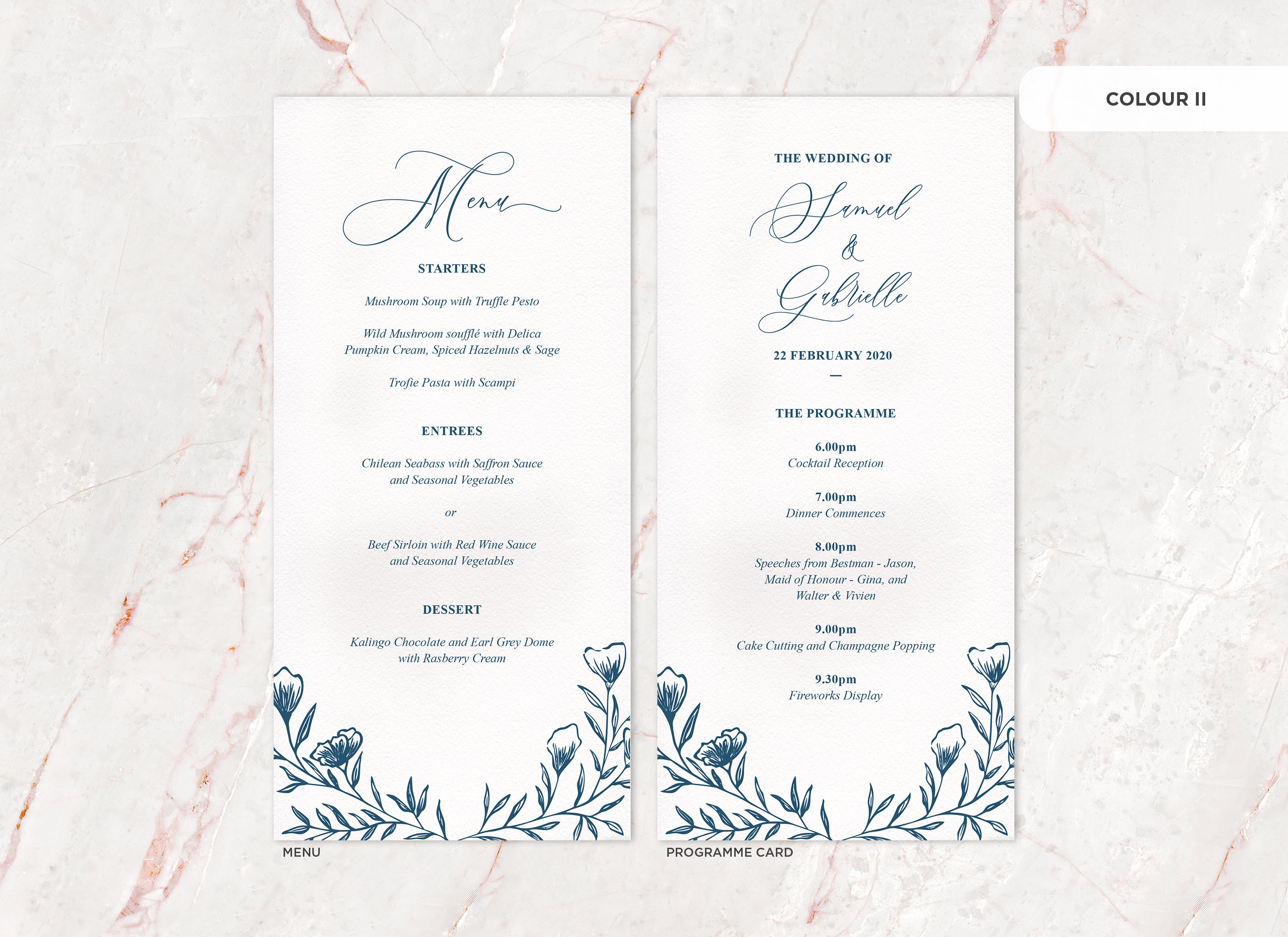 It's the little things that count! Accessorise your wedding day with matching Menu or Programme cards to your invitations.