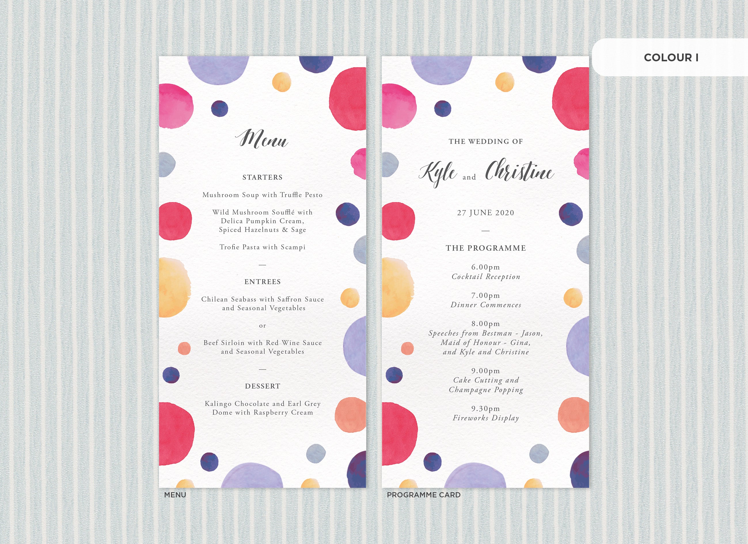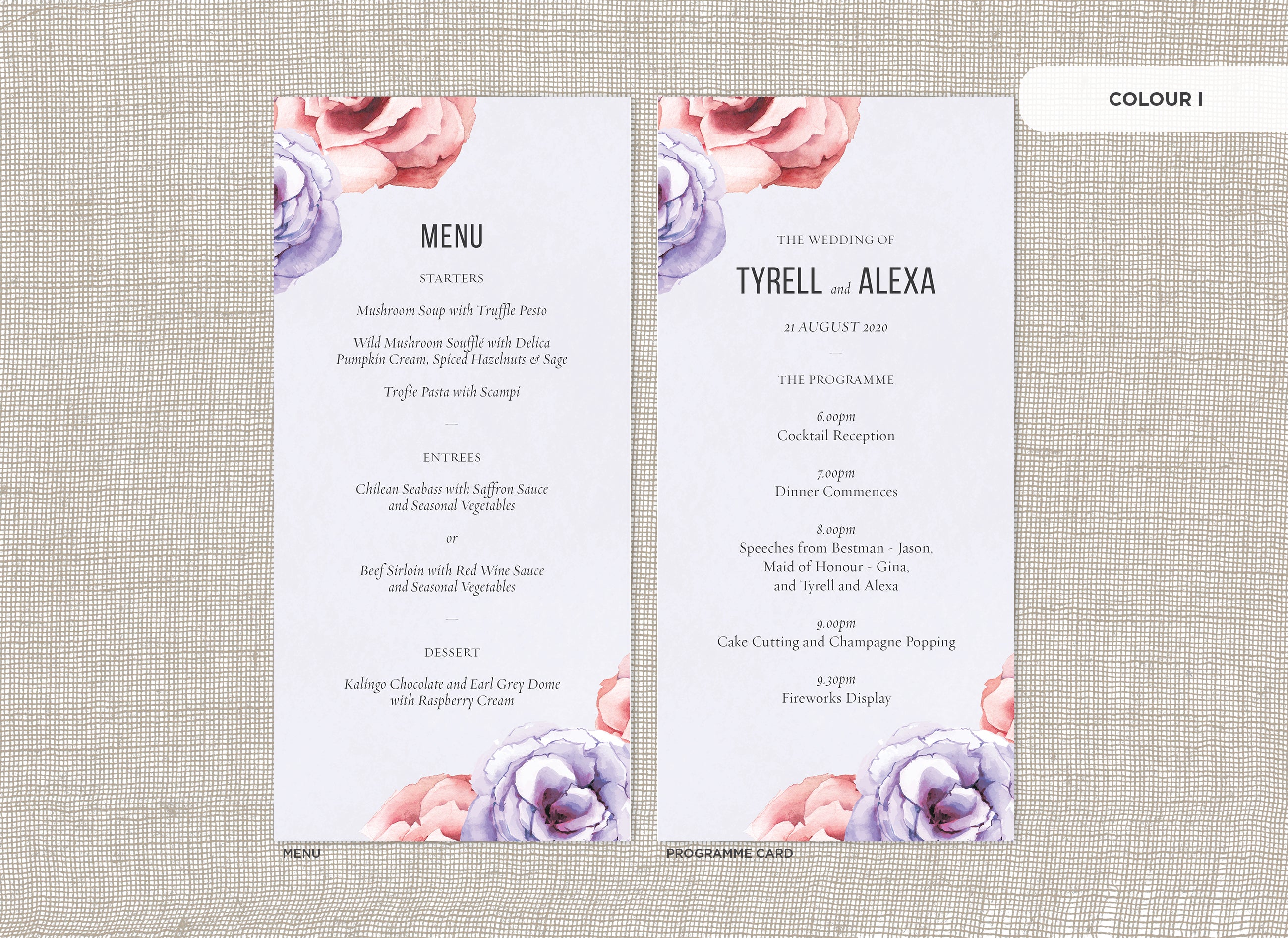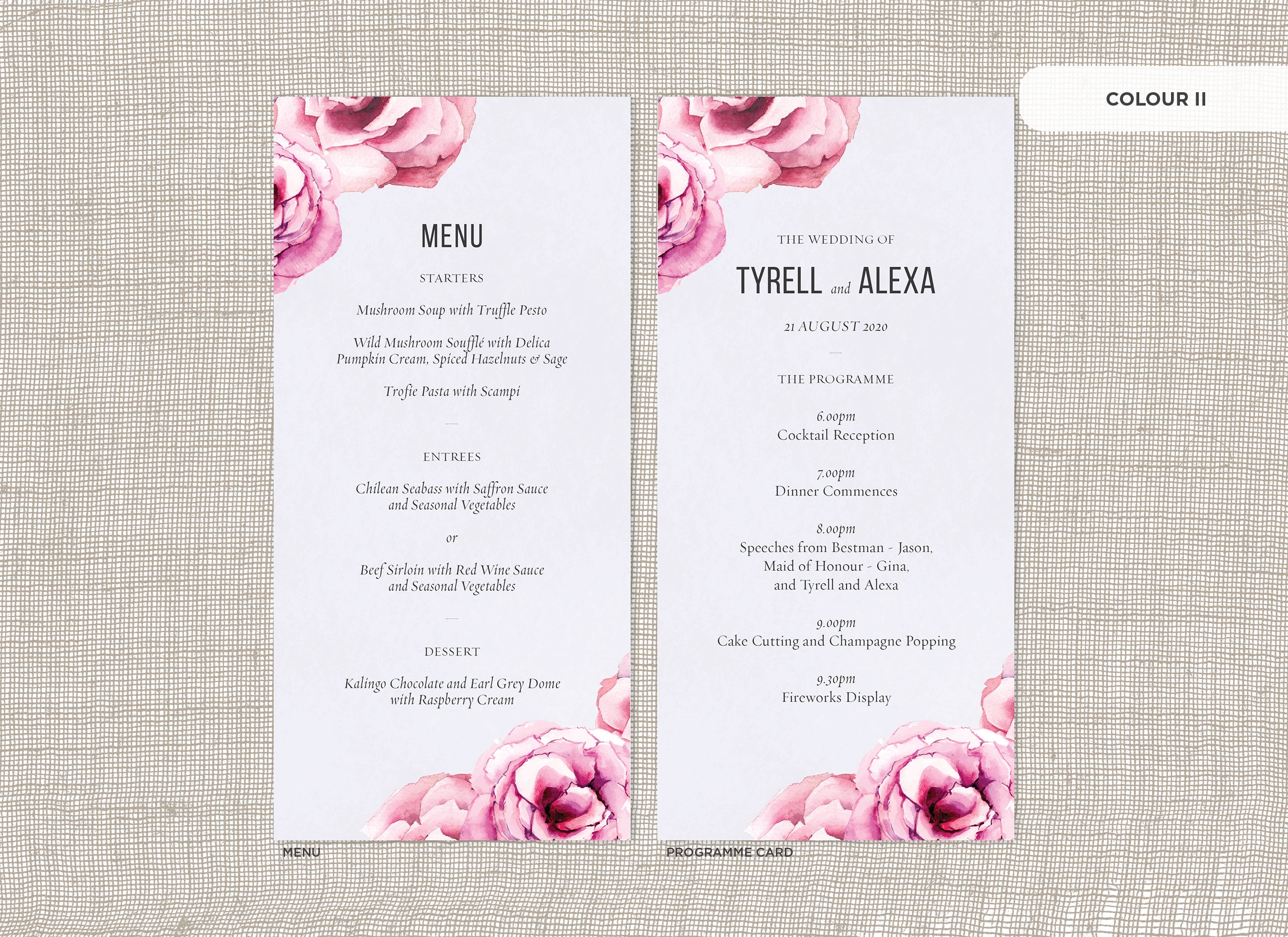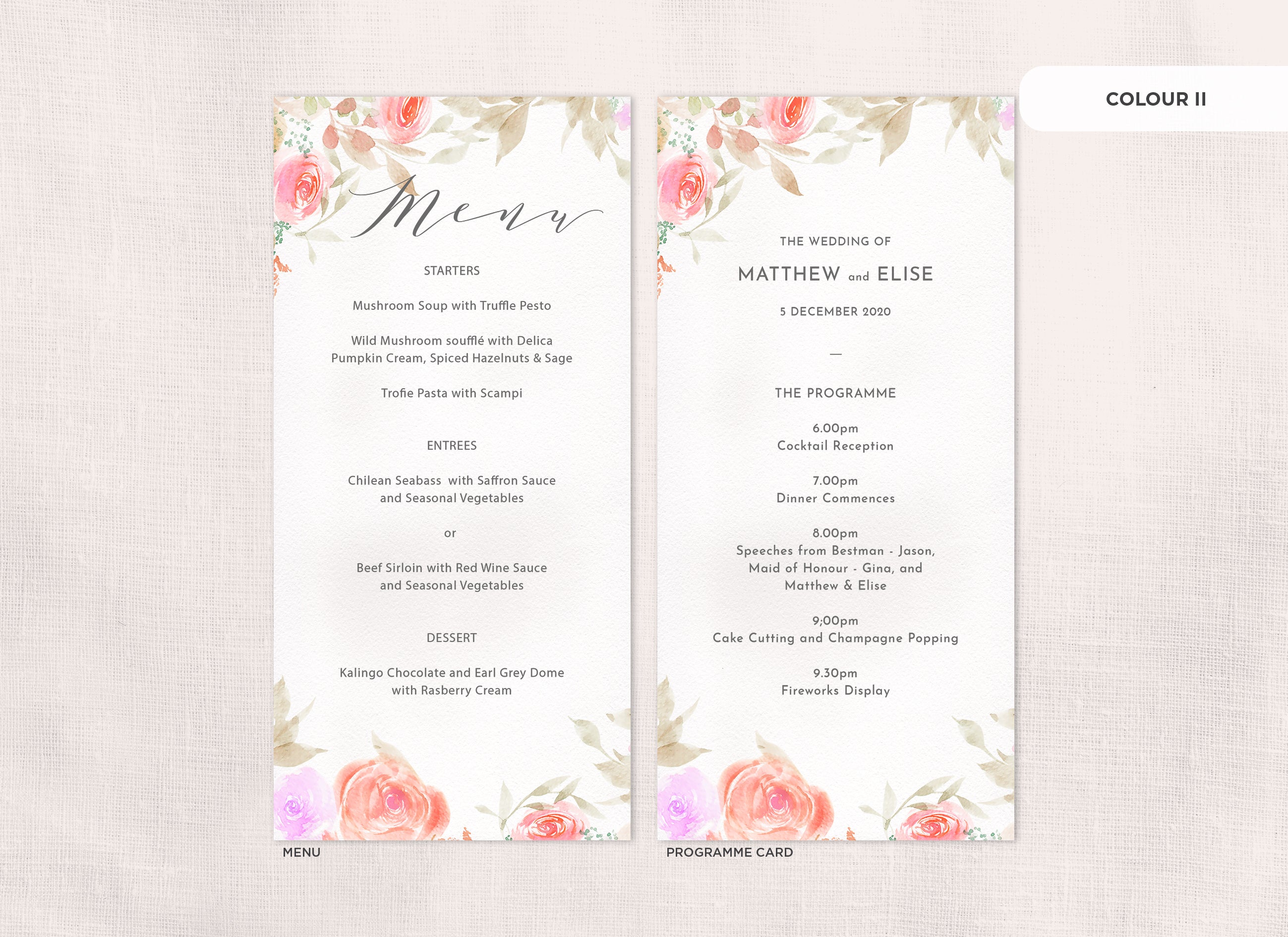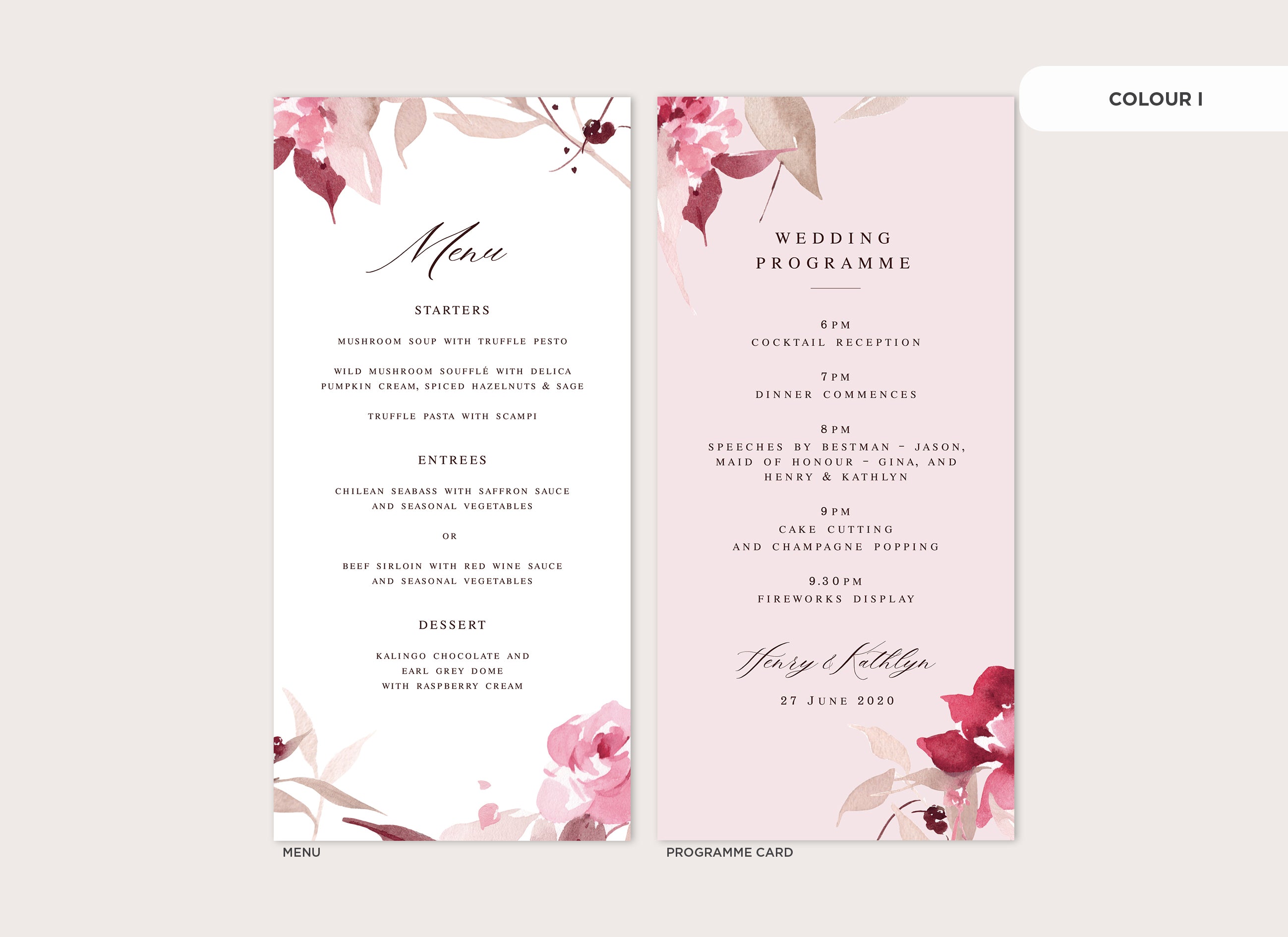 It's the little things that count! Accessorise your wedding day with matching Menu or Programme cards to your invitations.