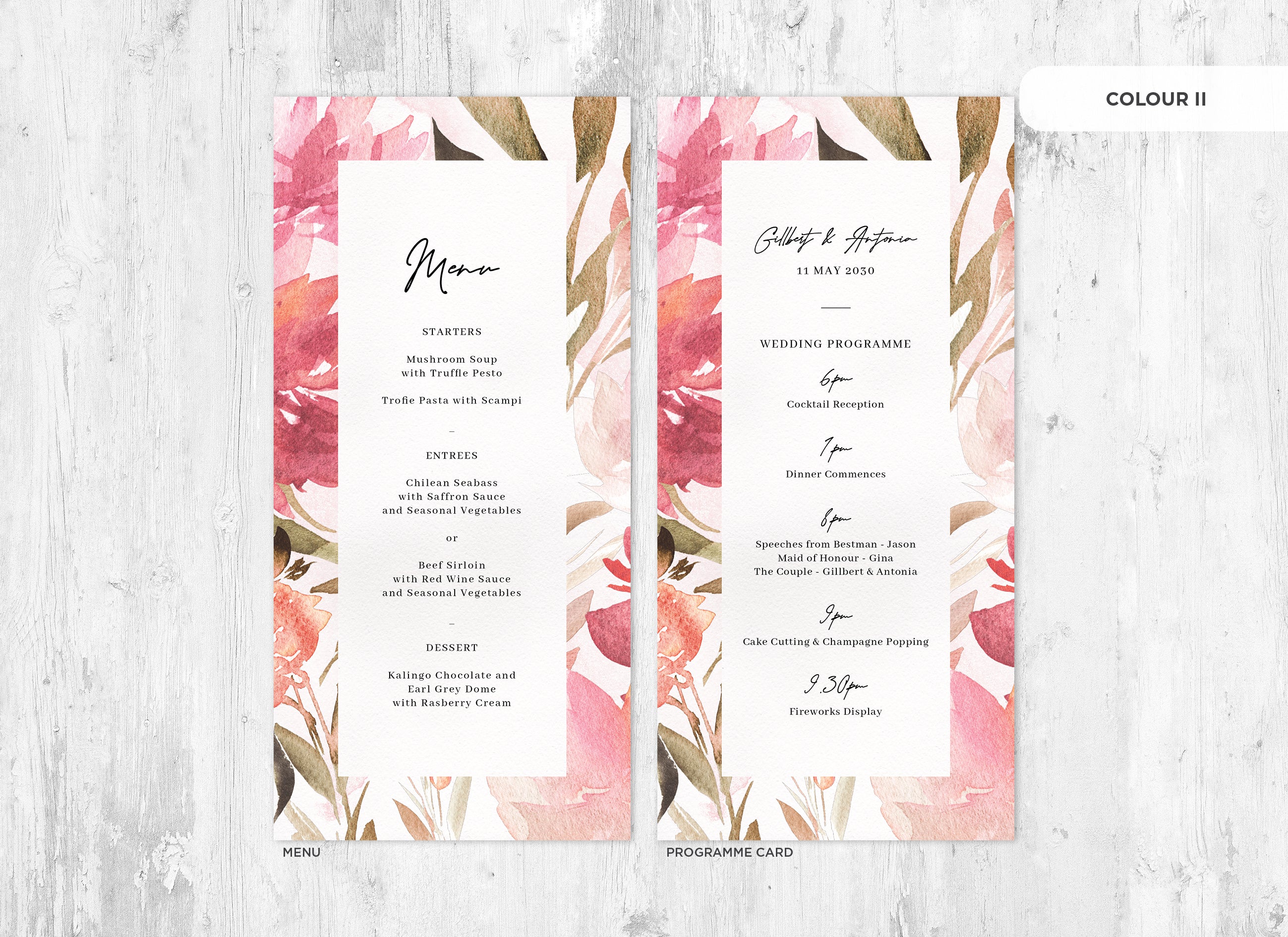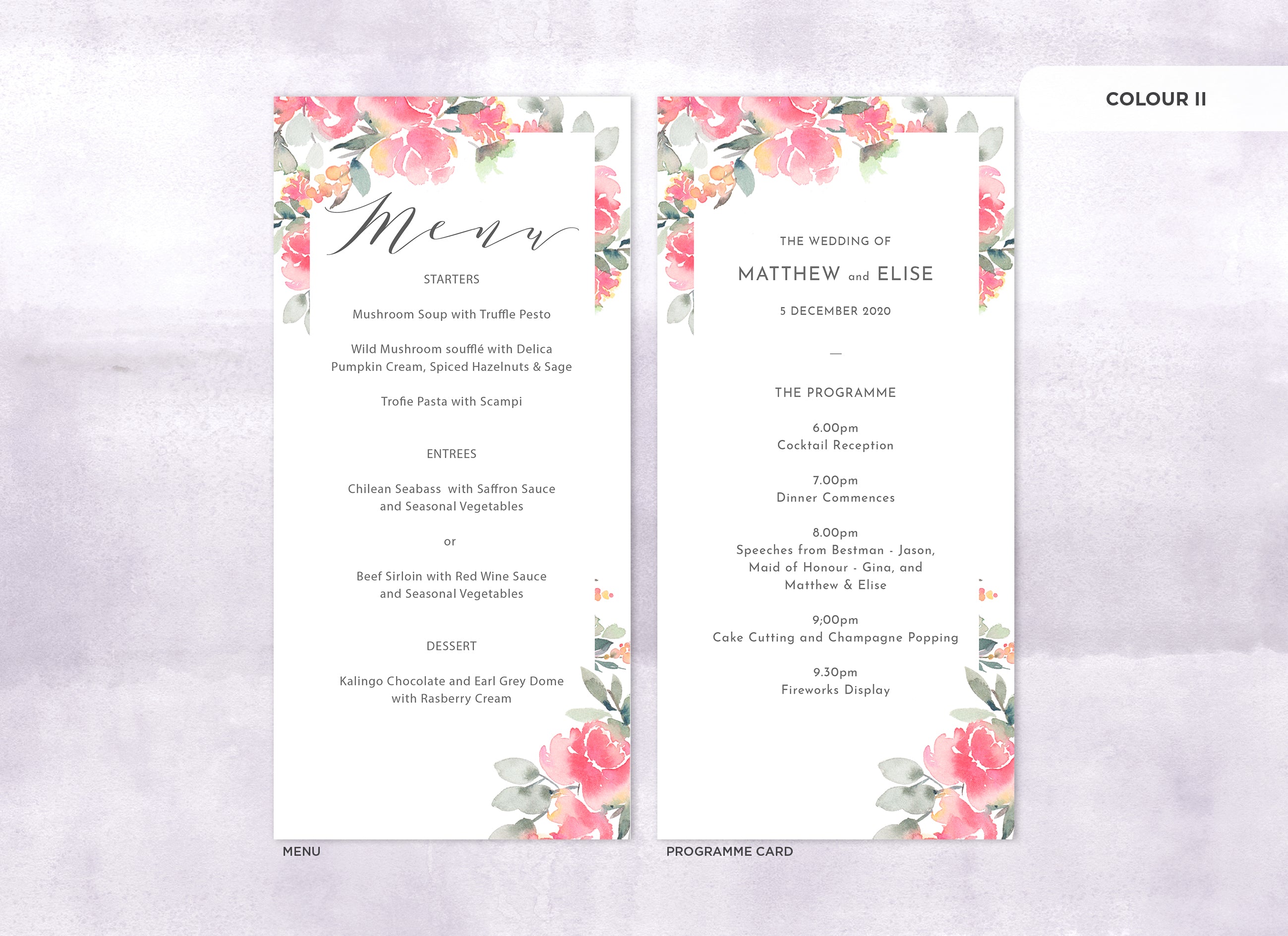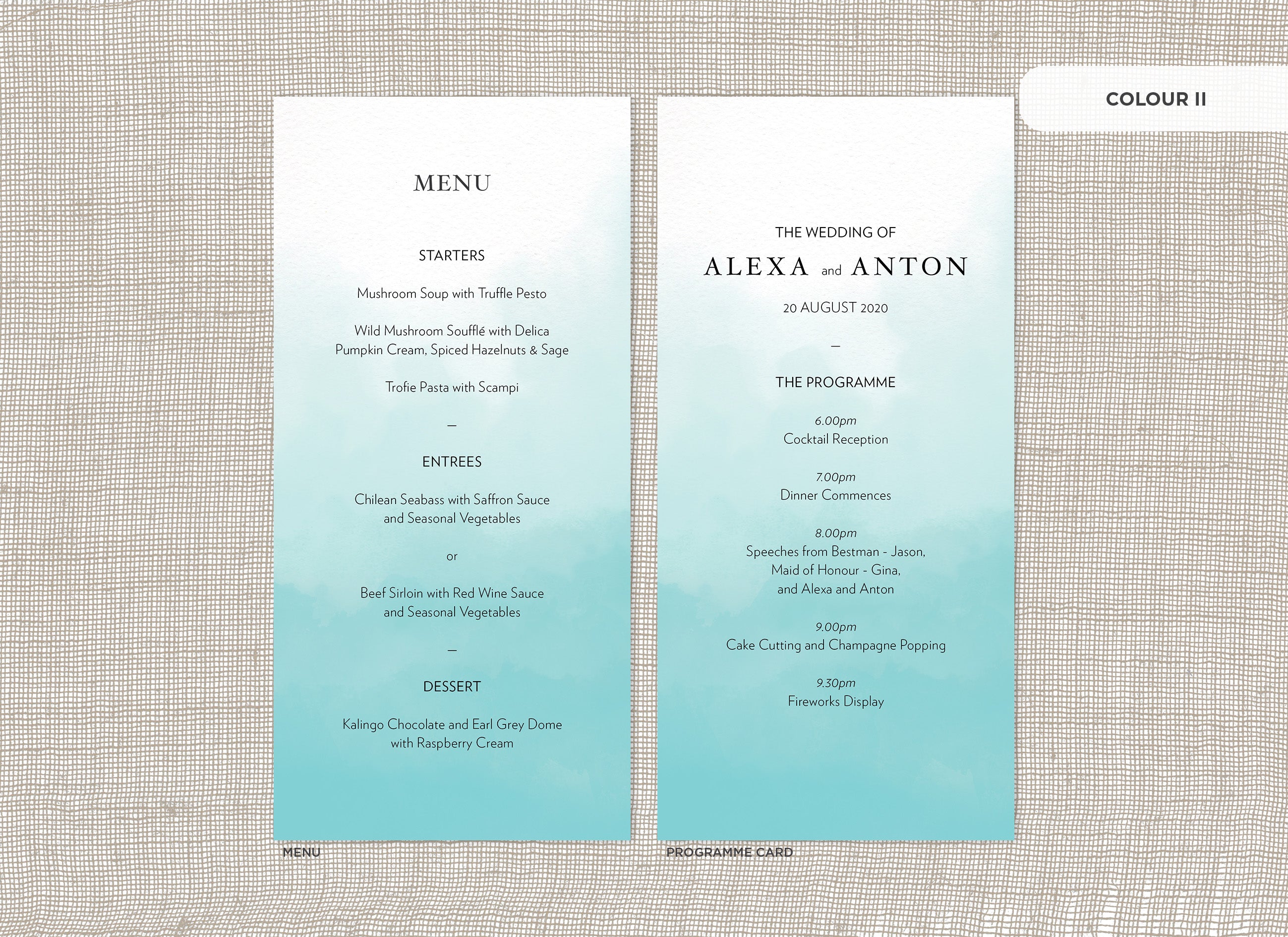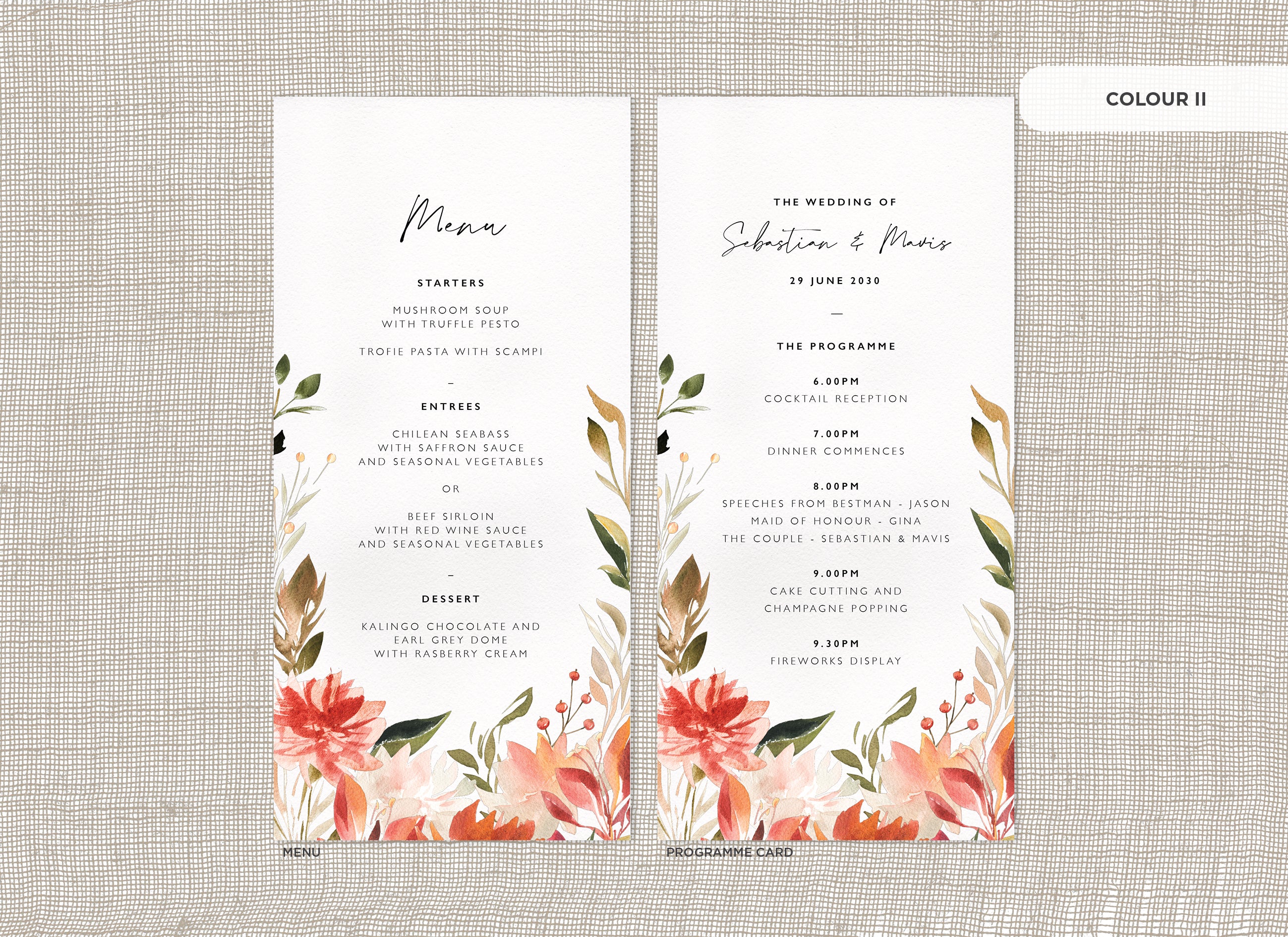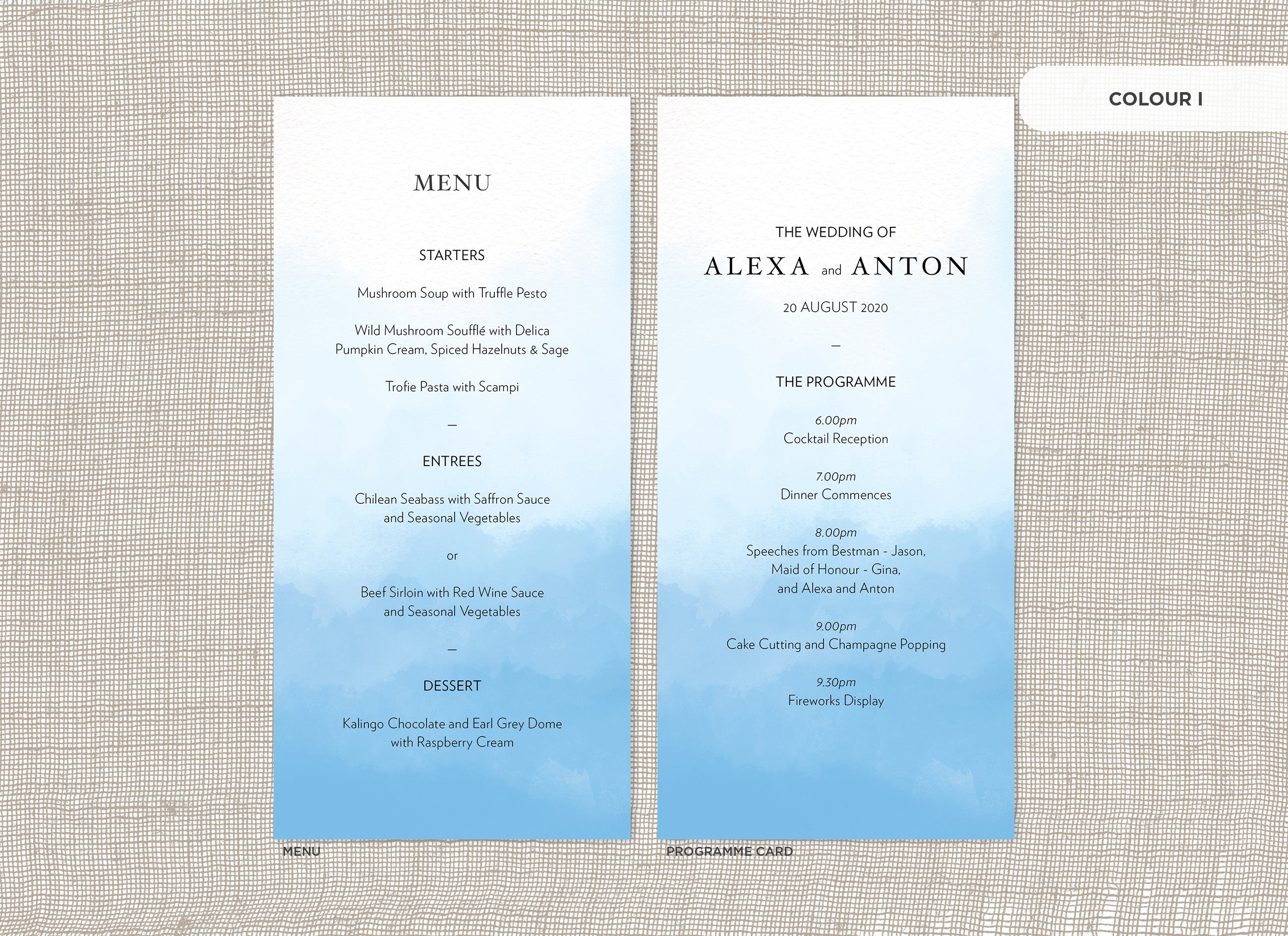 It's the little things that count! Accessorise your wedding day with matching Menu or Programme cards to your invitations.