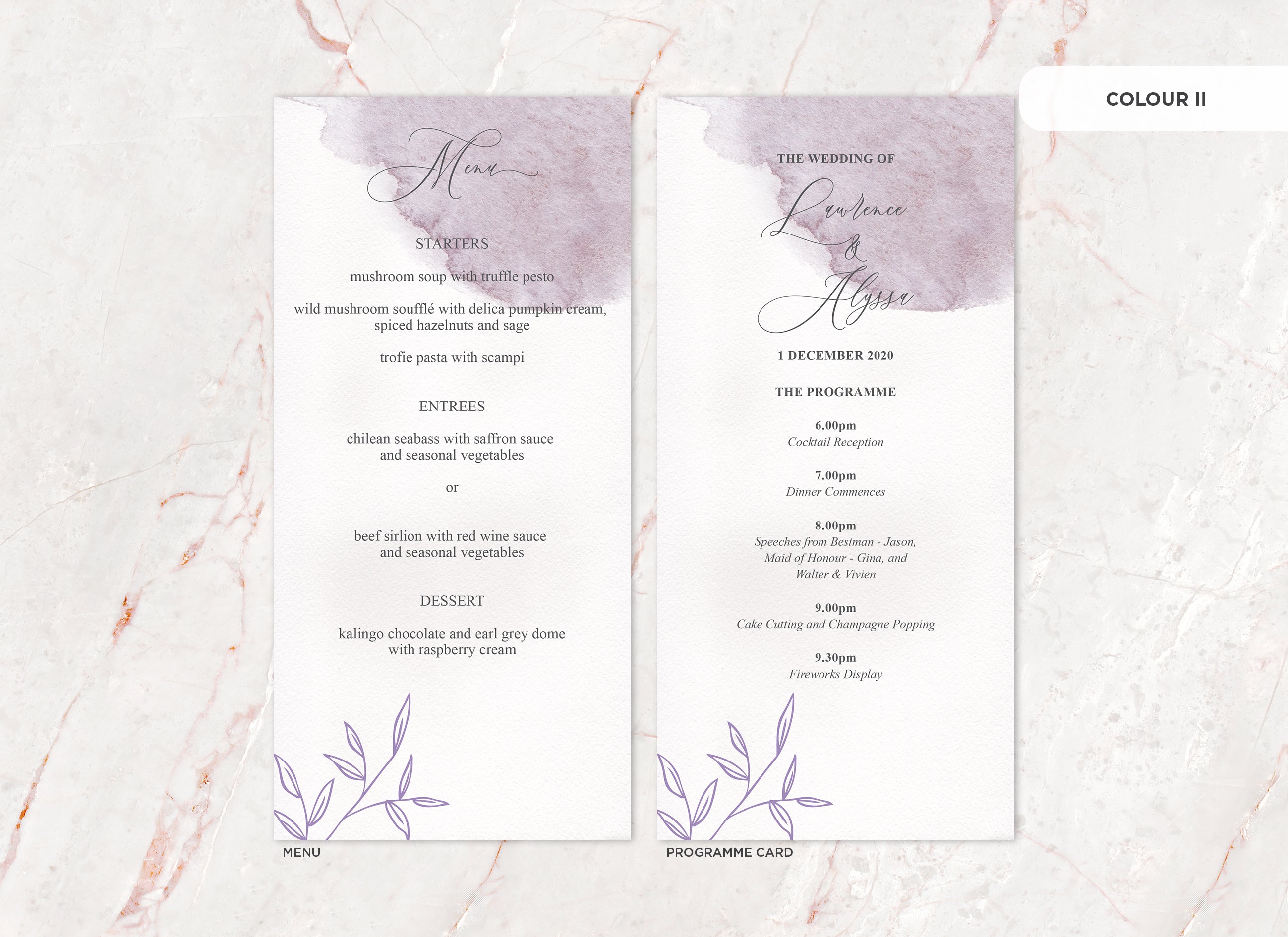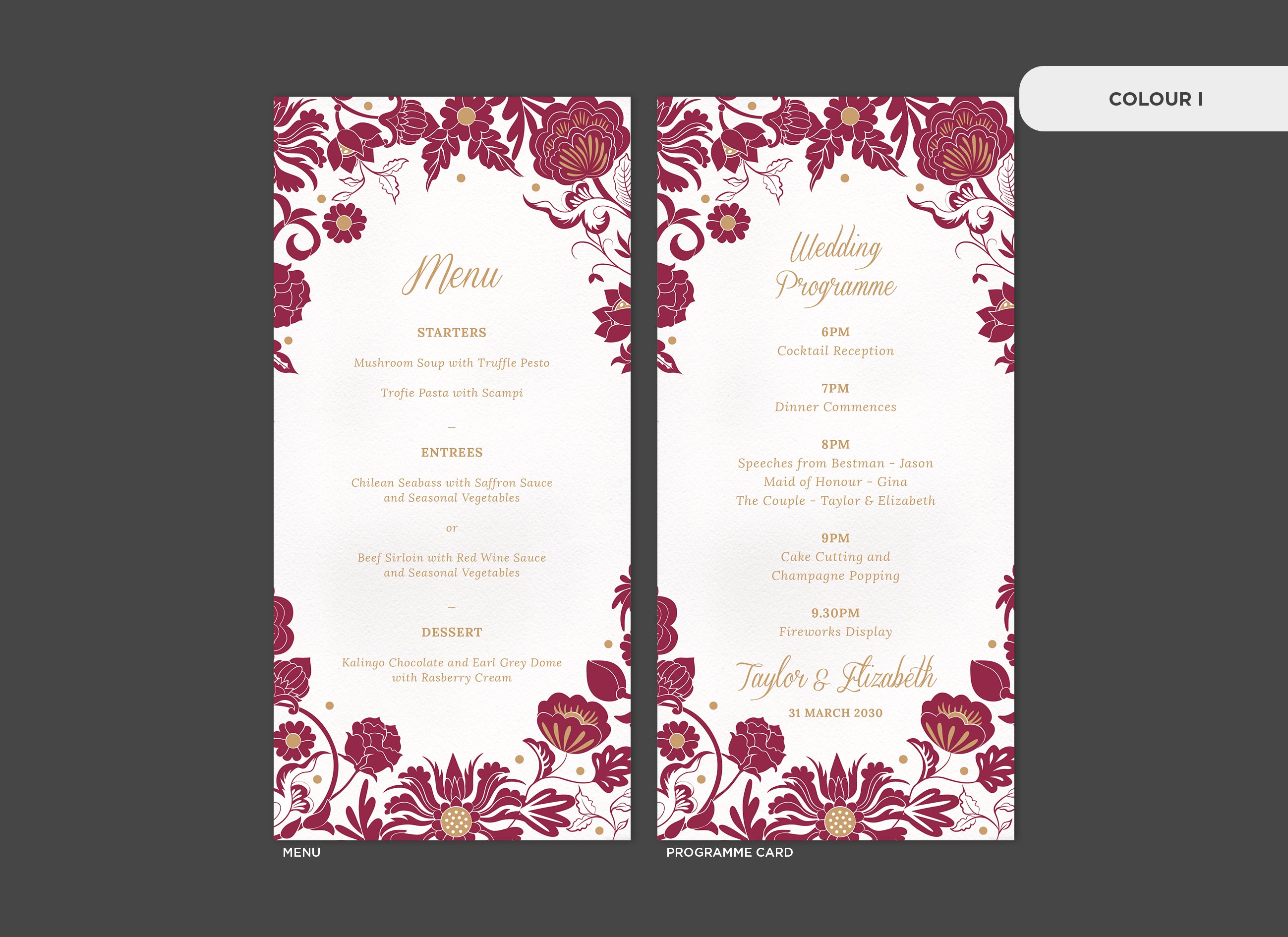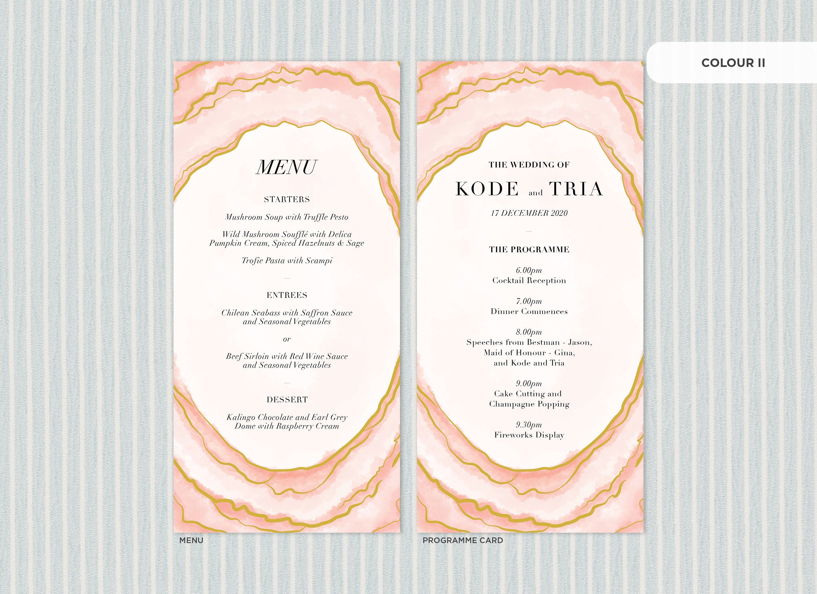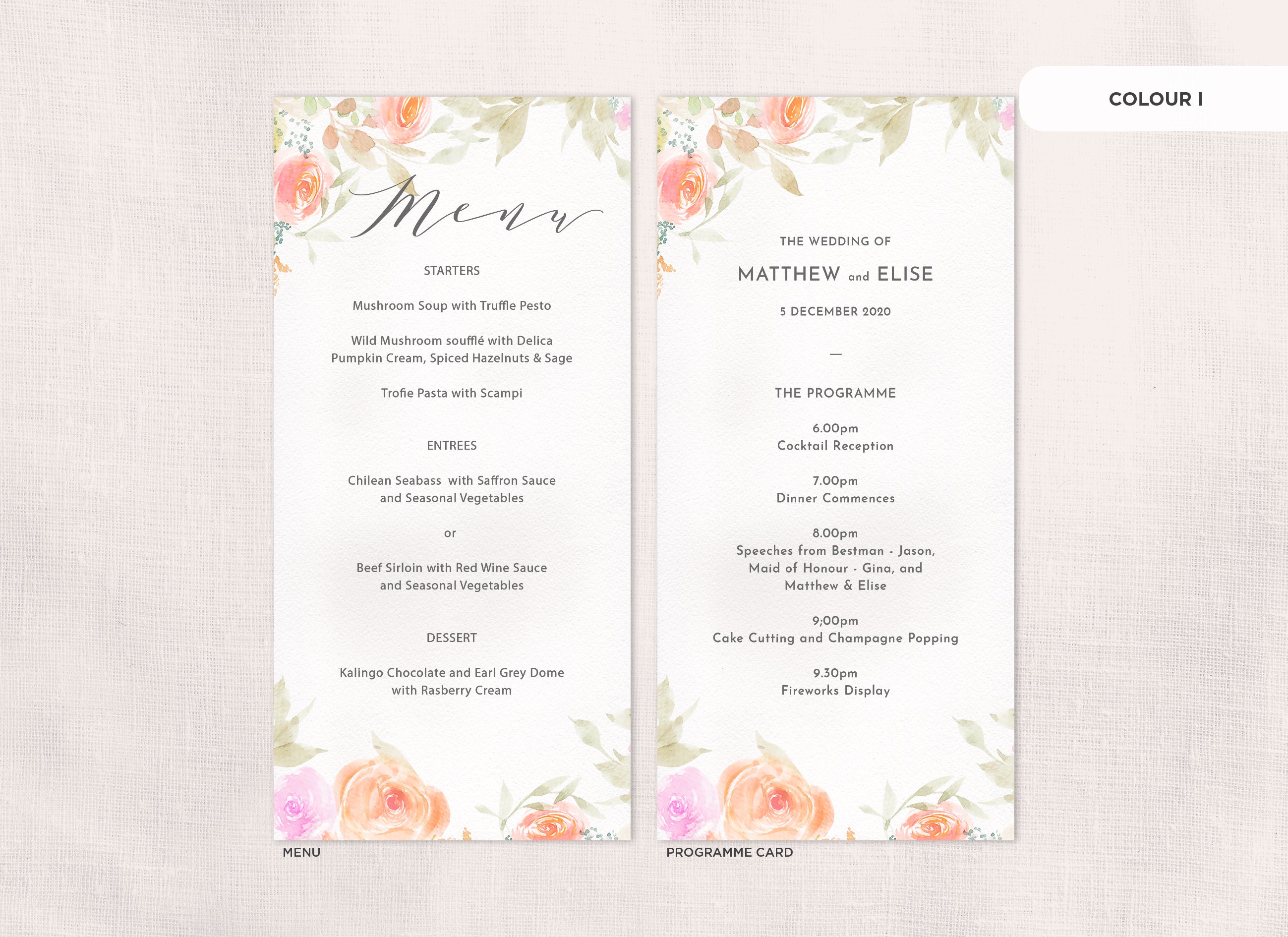 It's the little things that count! Accessorise your wedding day with matching Menu or Programme cards to your invitations.