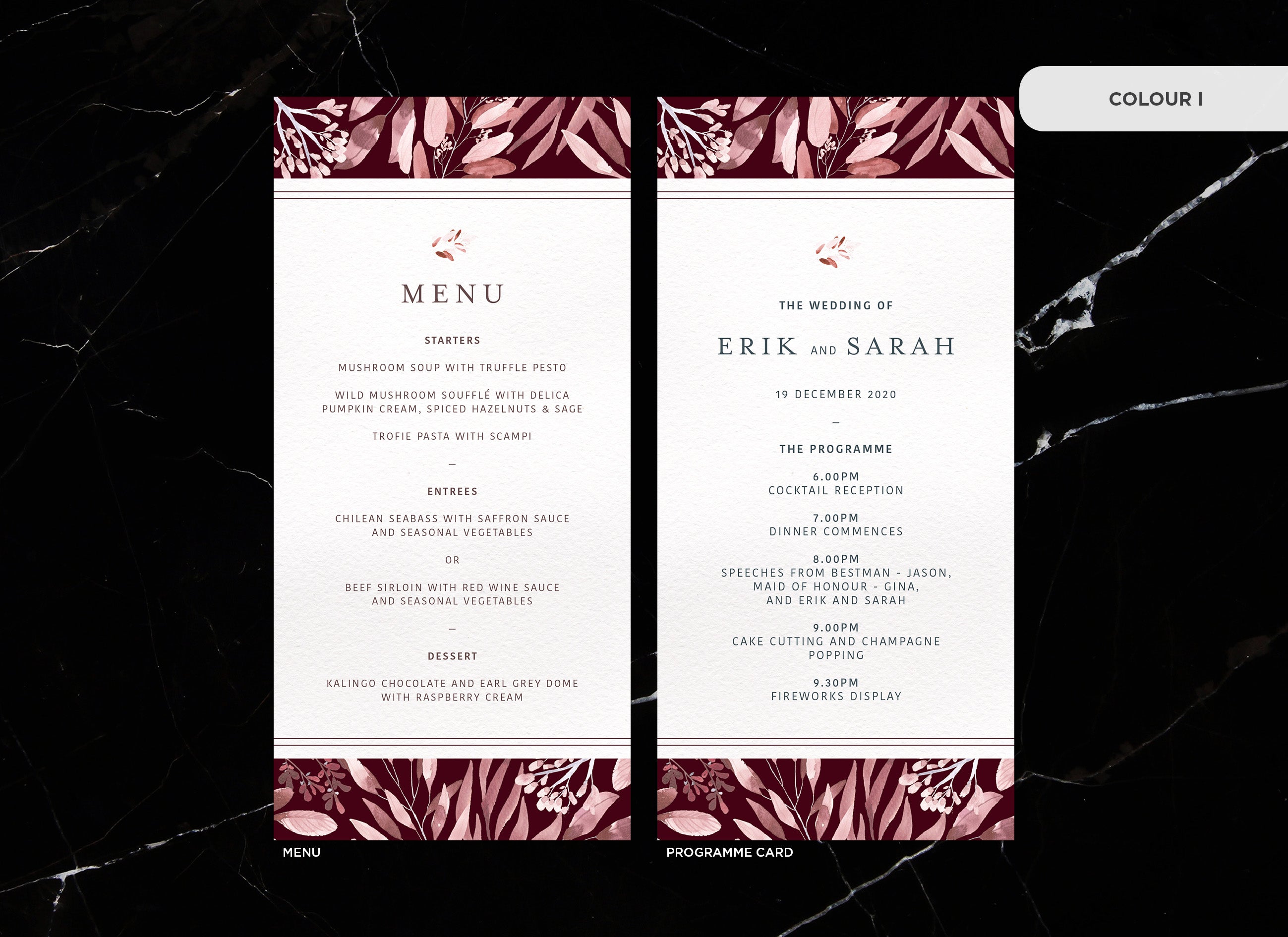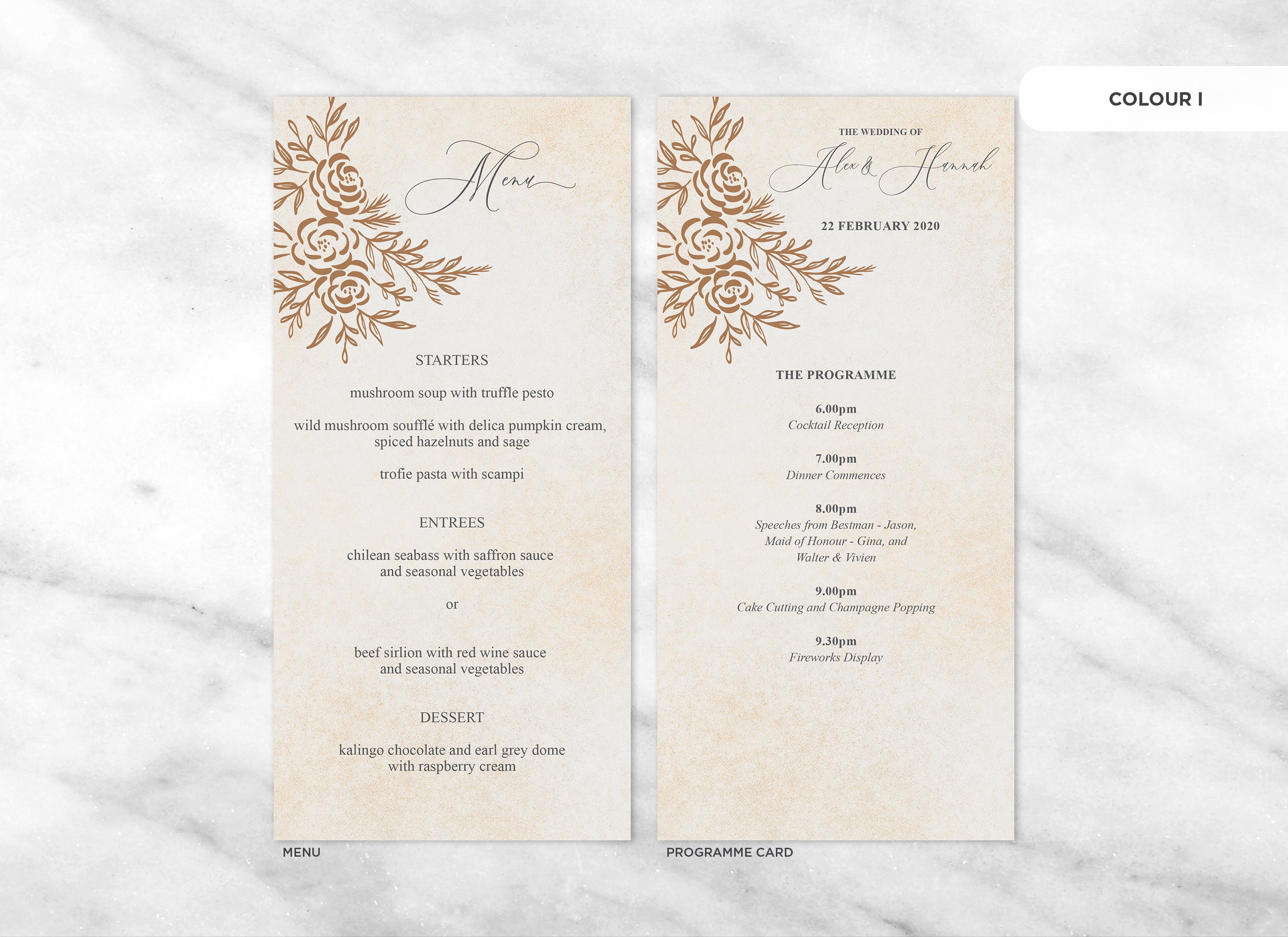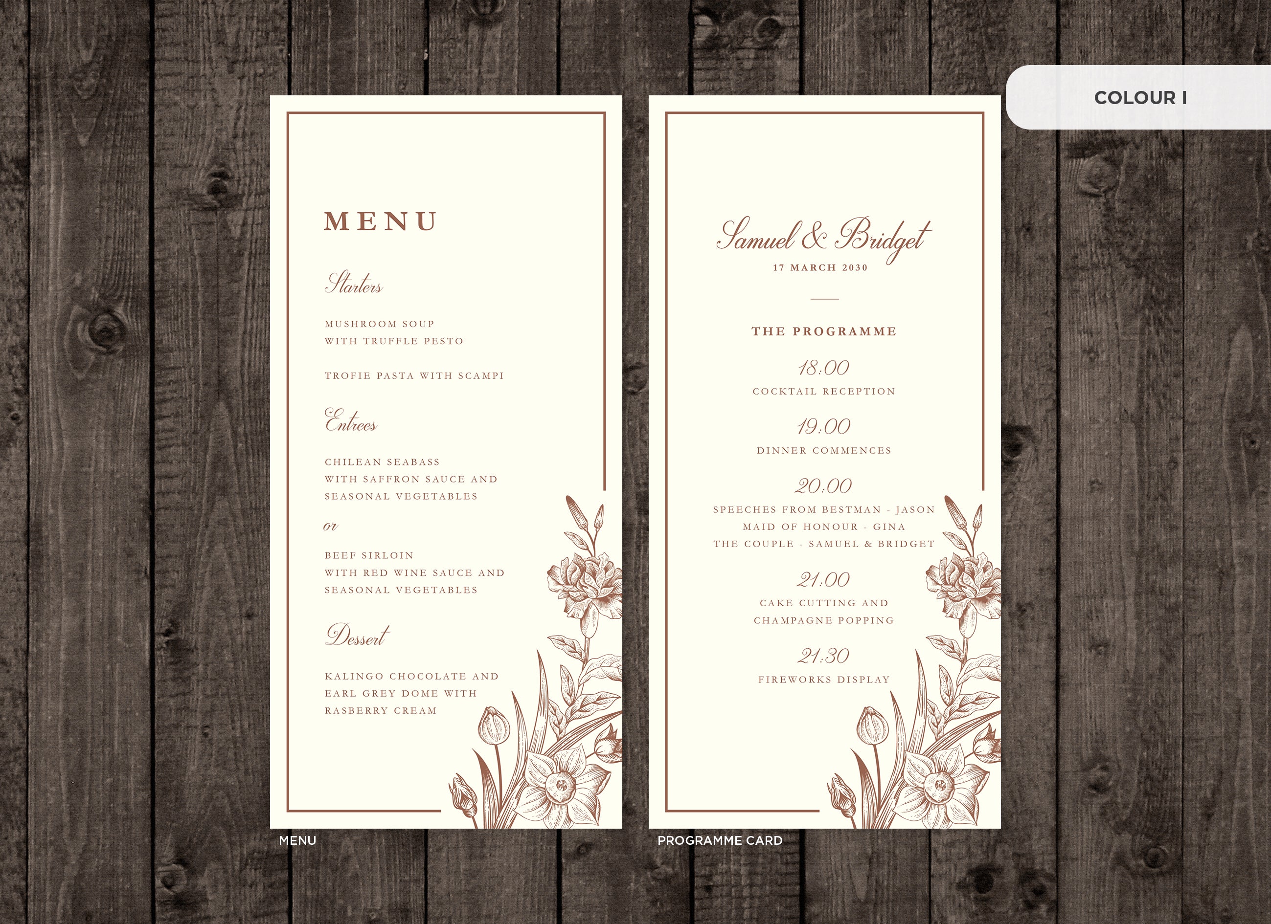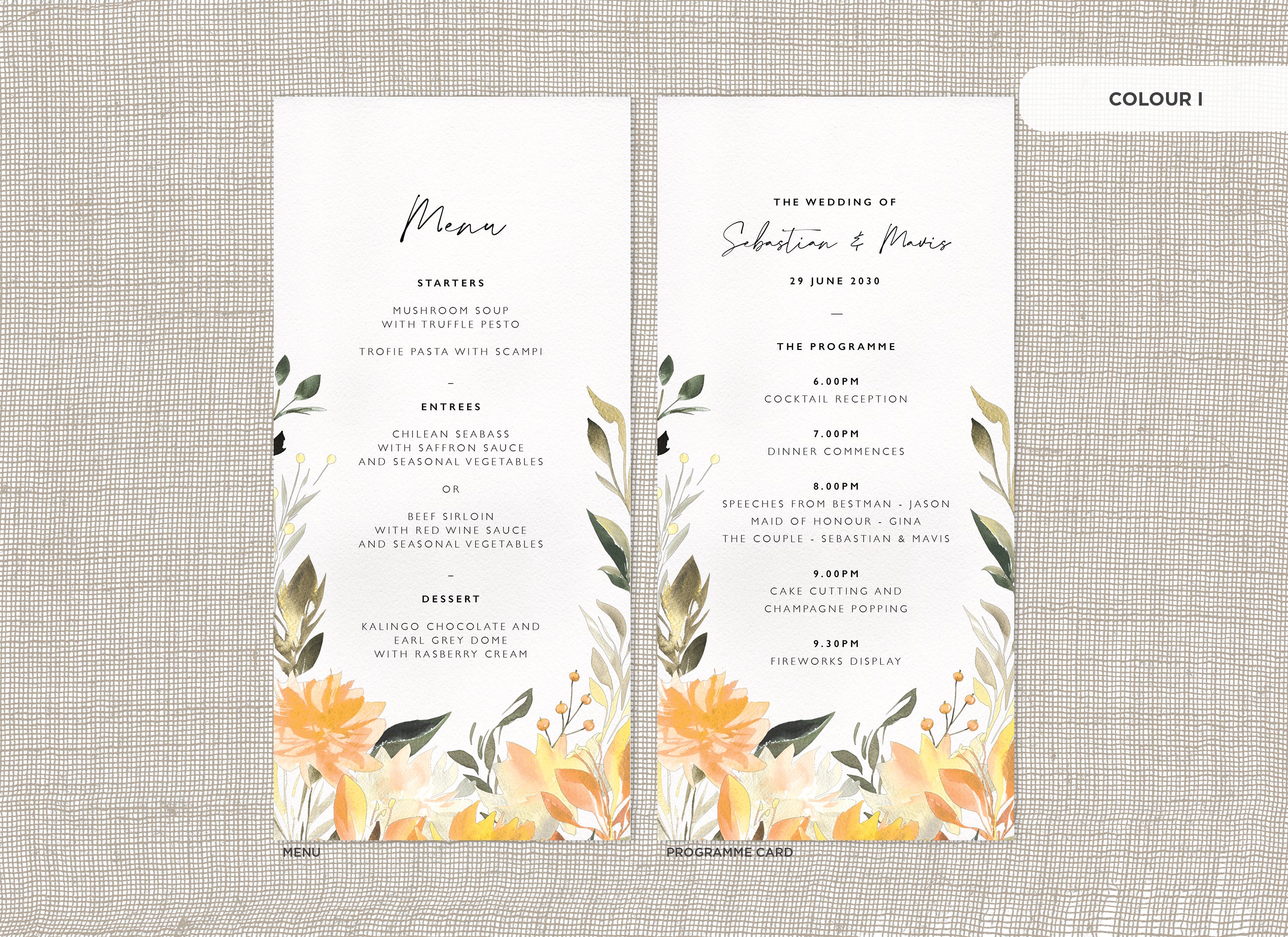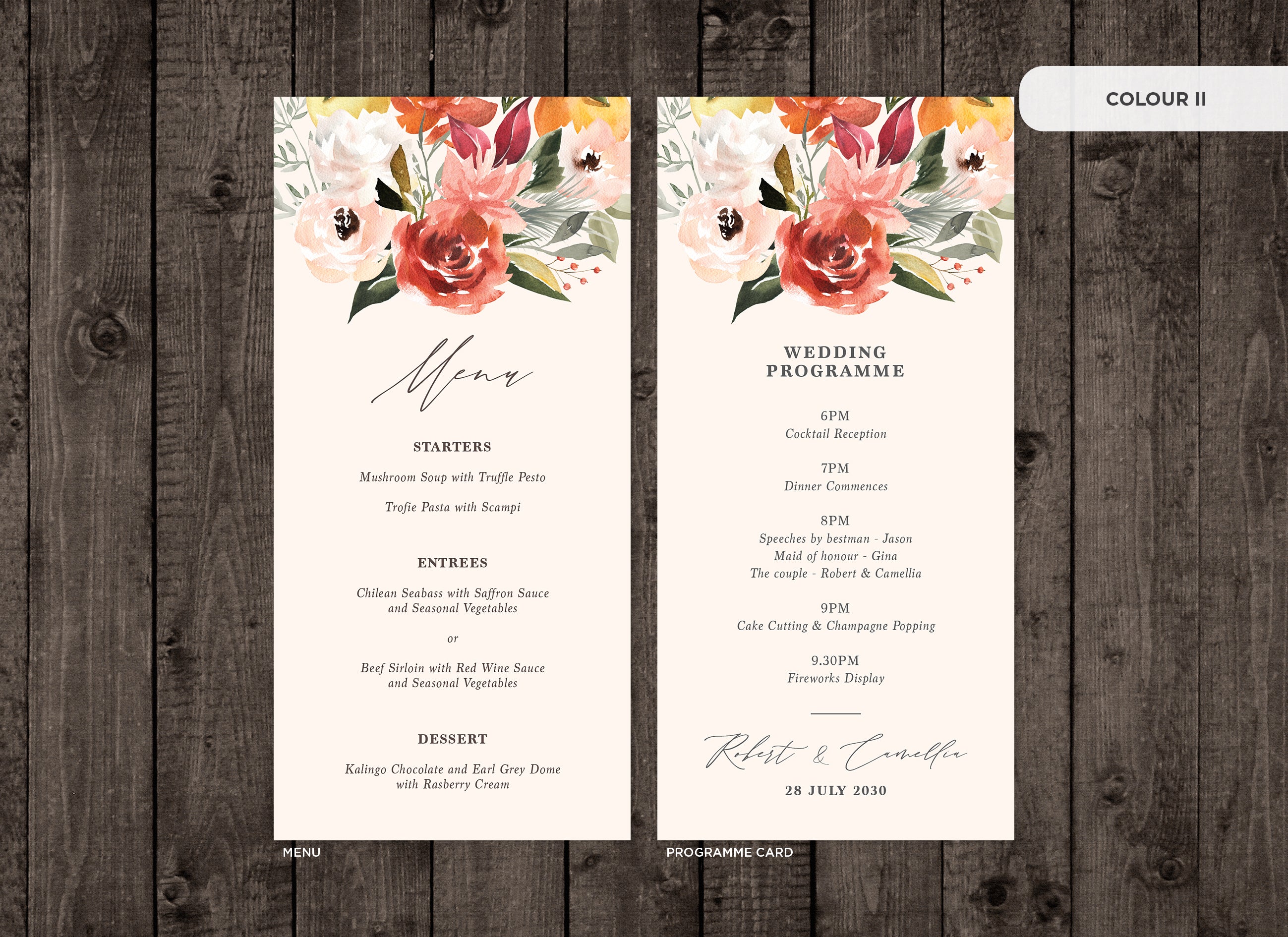 It's the little things that count! Accessorise your wedding day with matching Menu or Programme cards to your invitations.