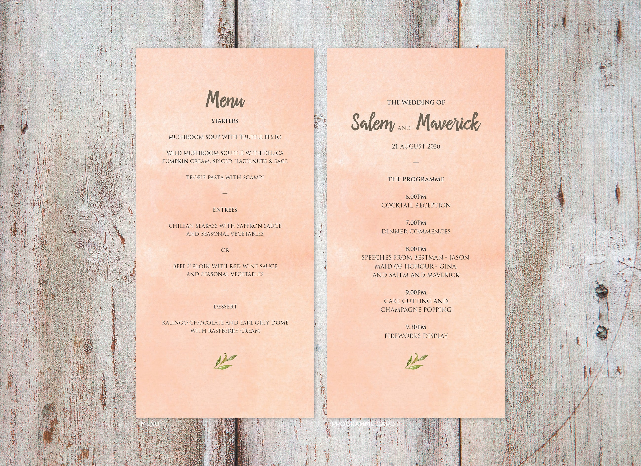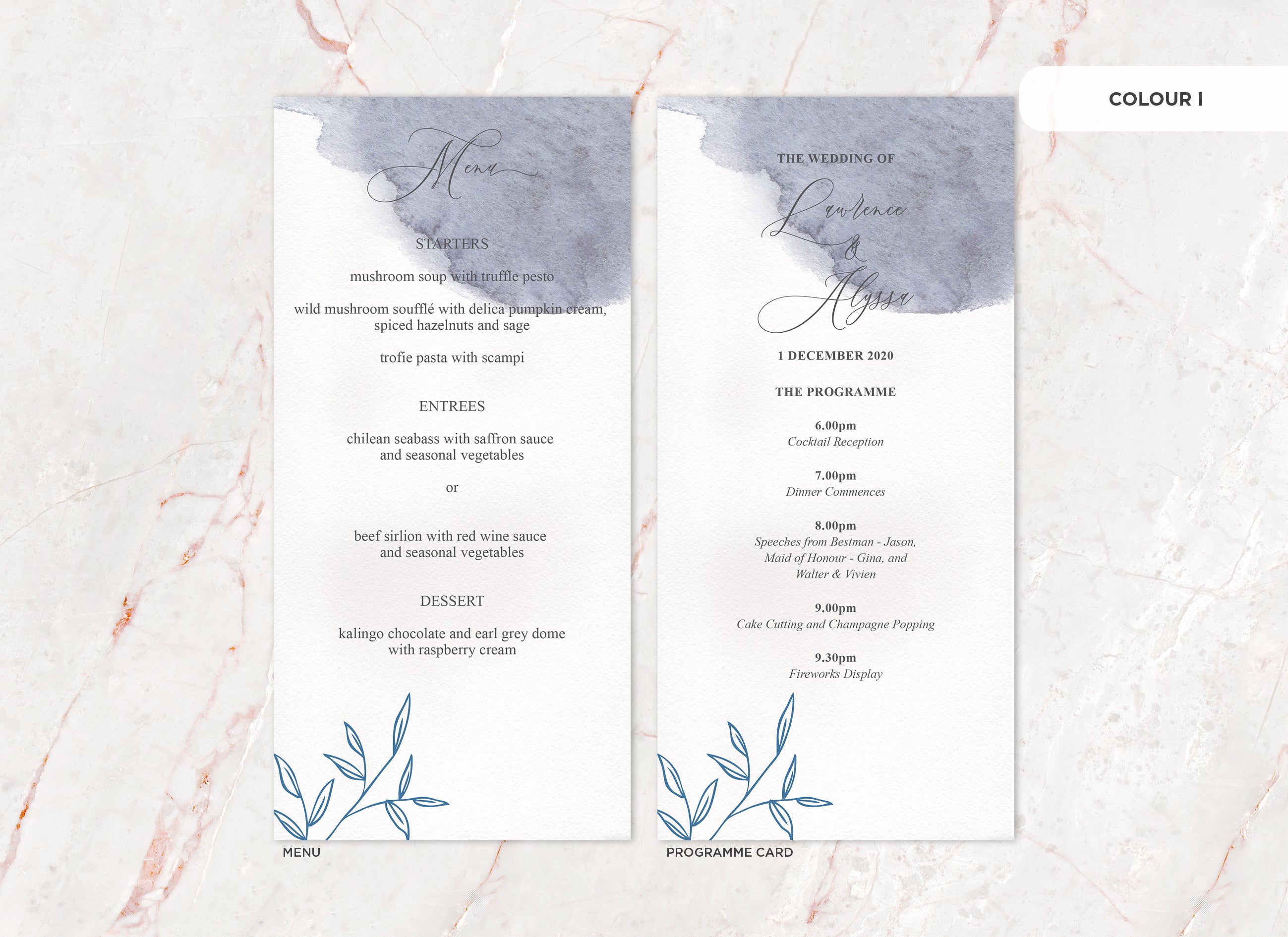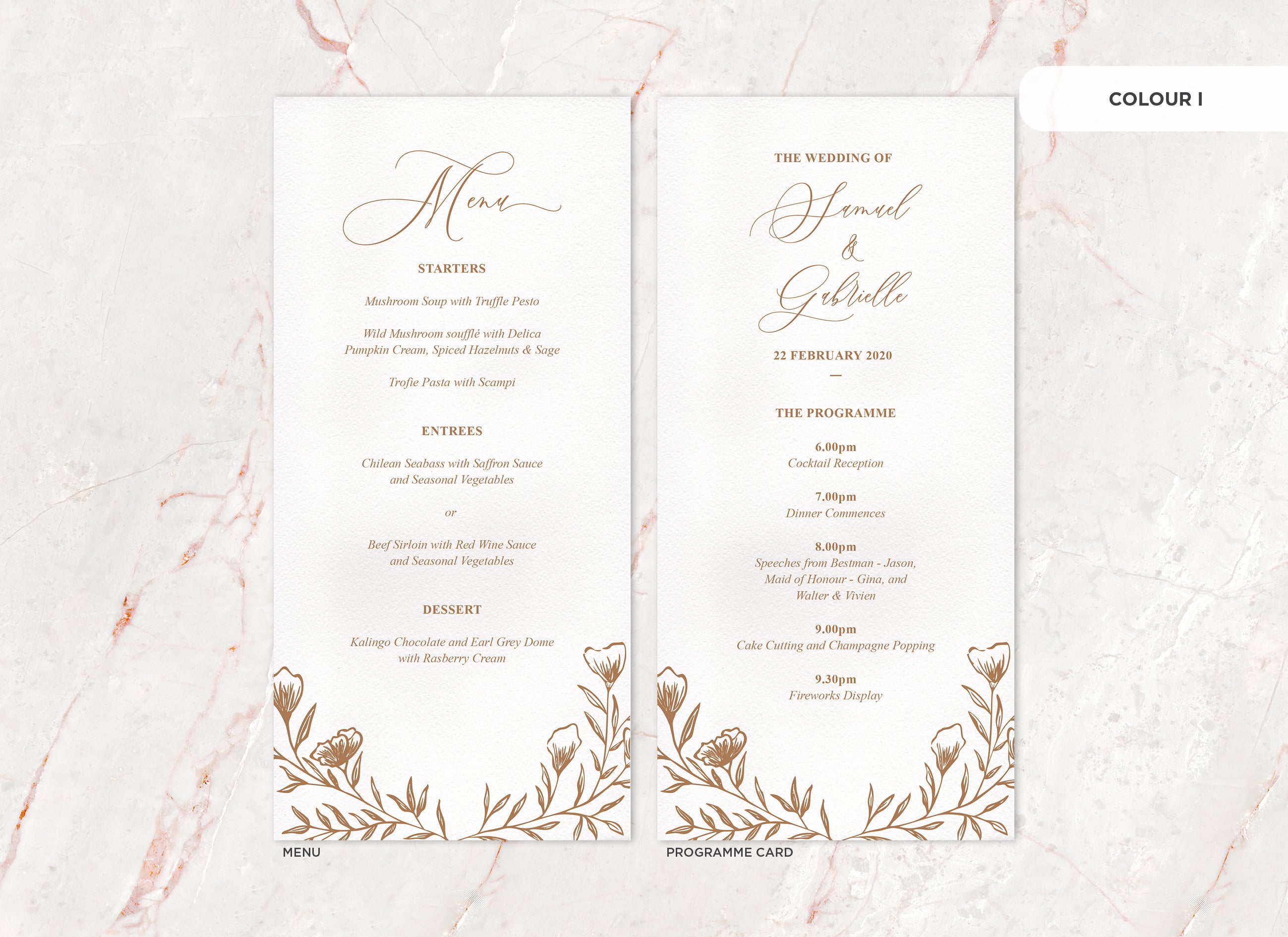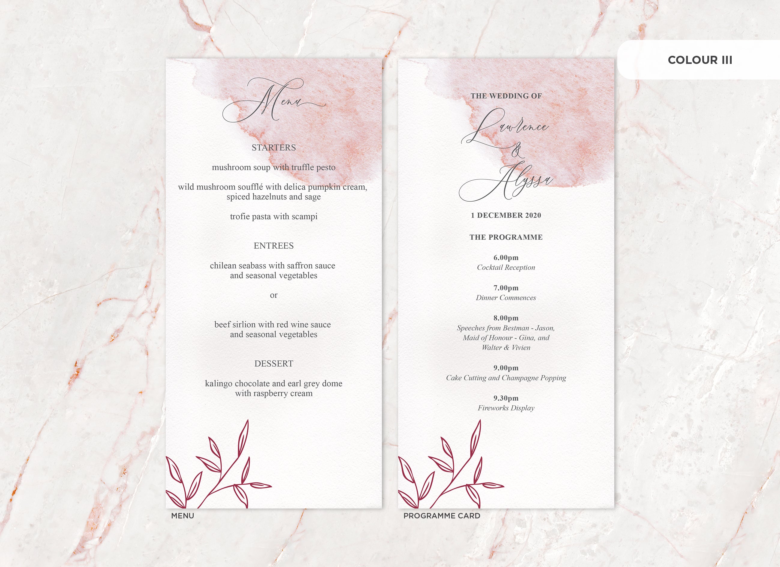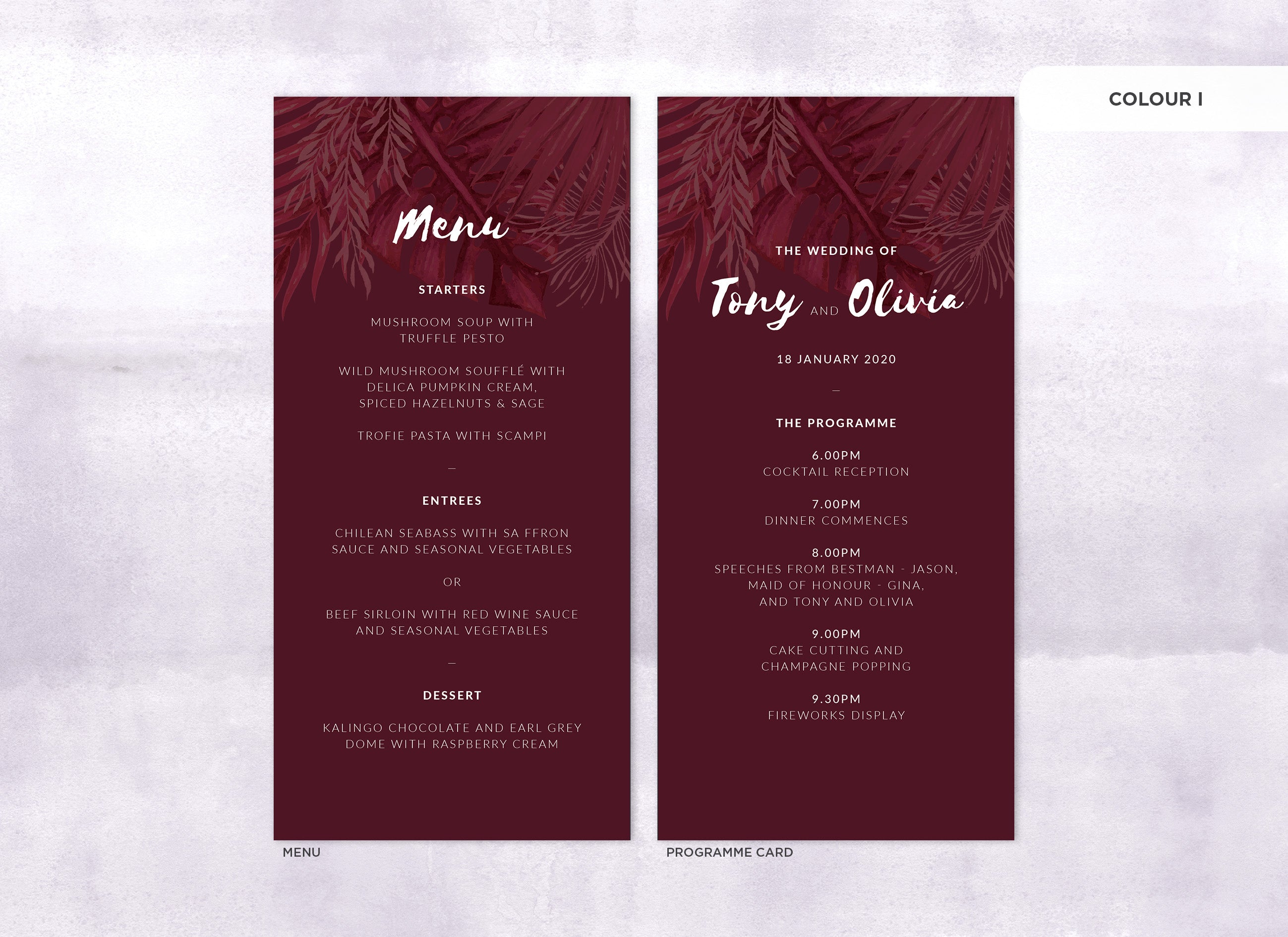 It's the little things that count! Accessorise your wedding day with matching Menu or Programme cards to your invitations.