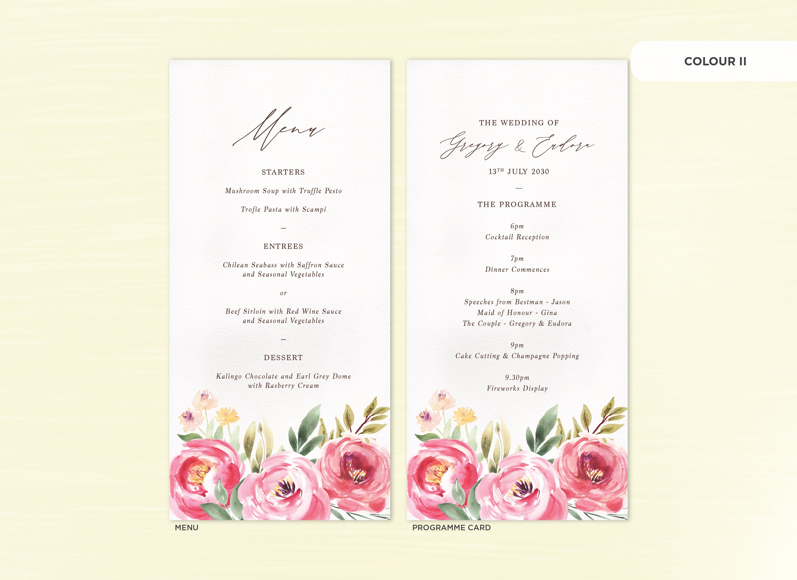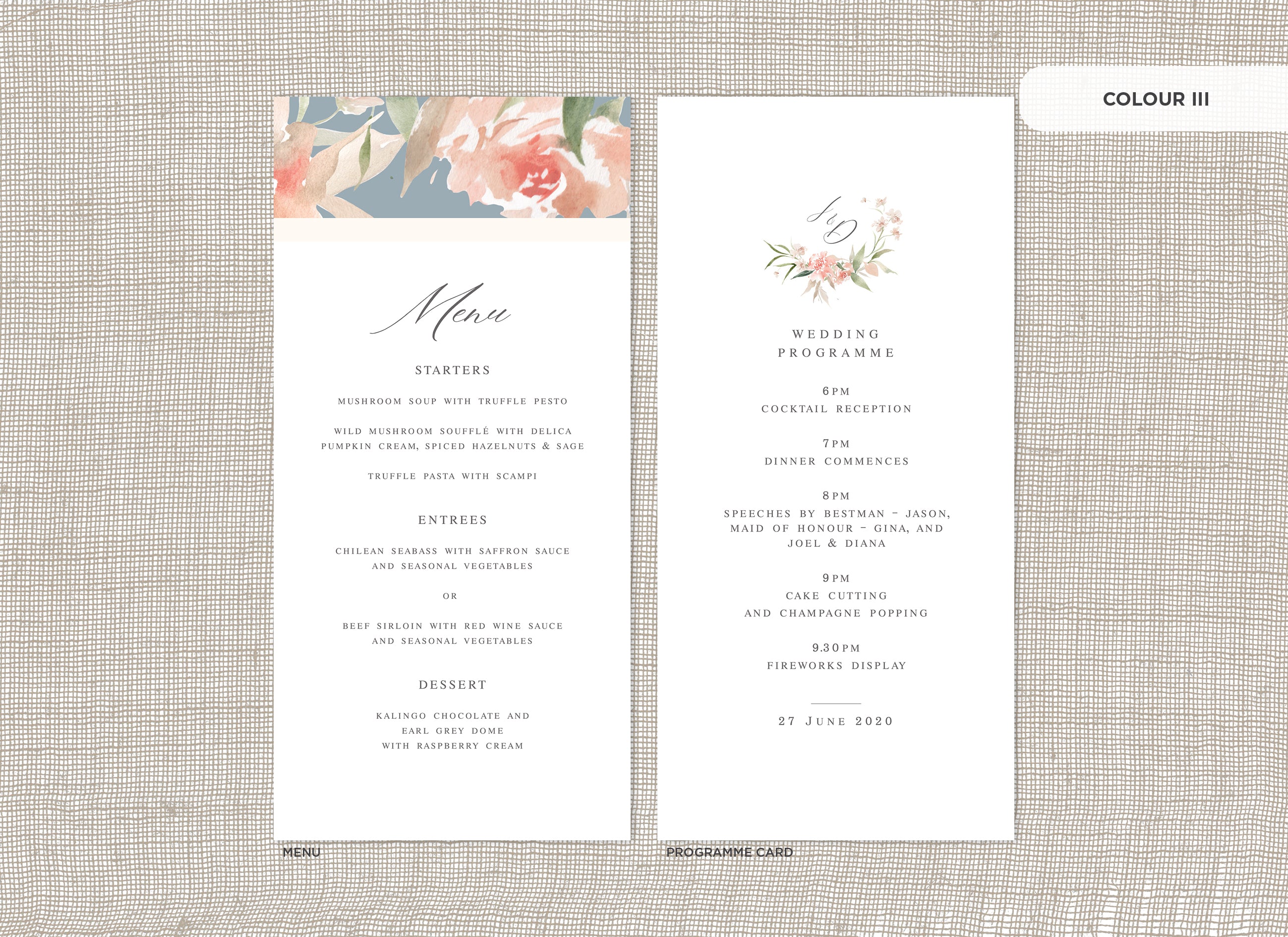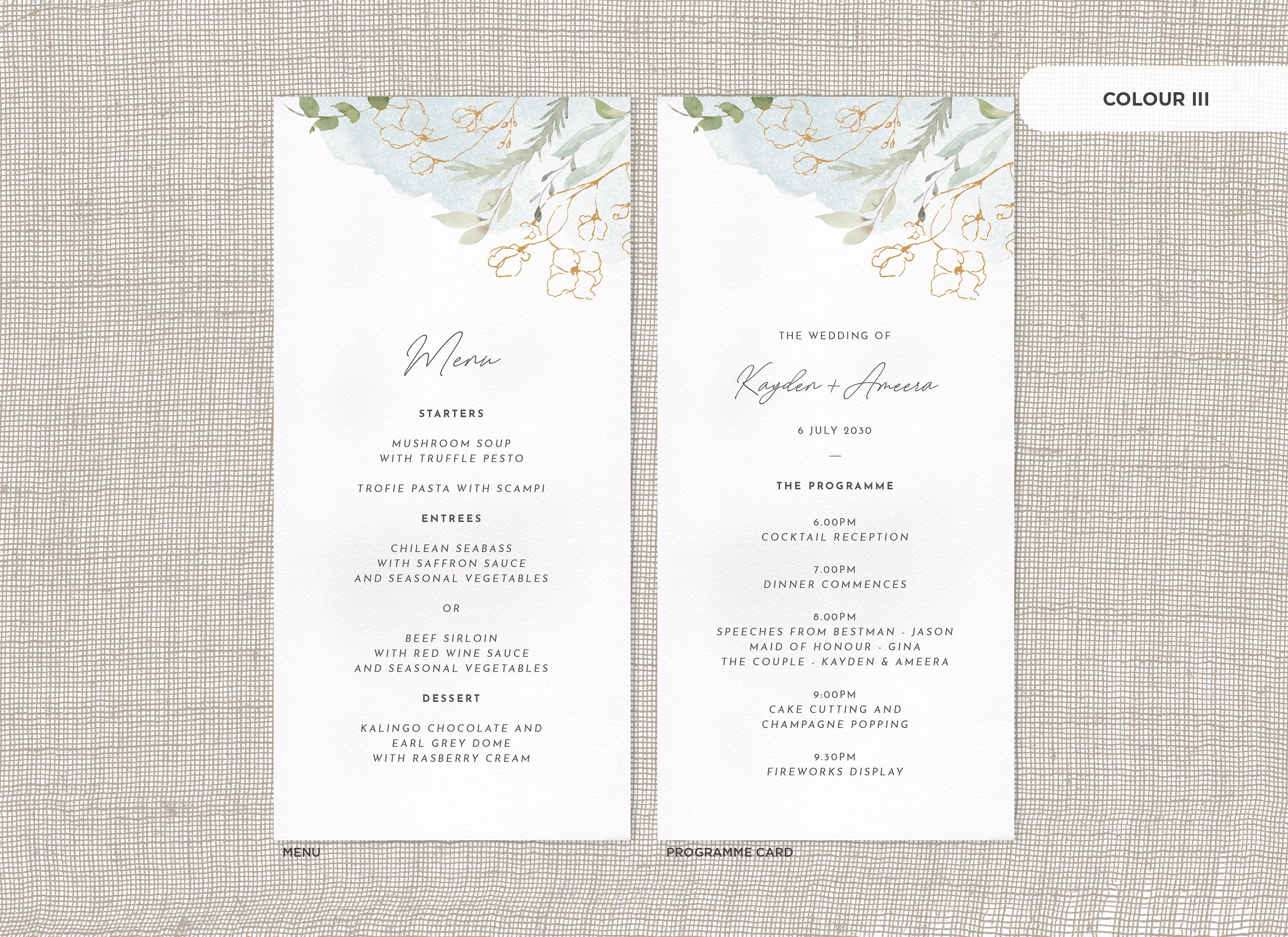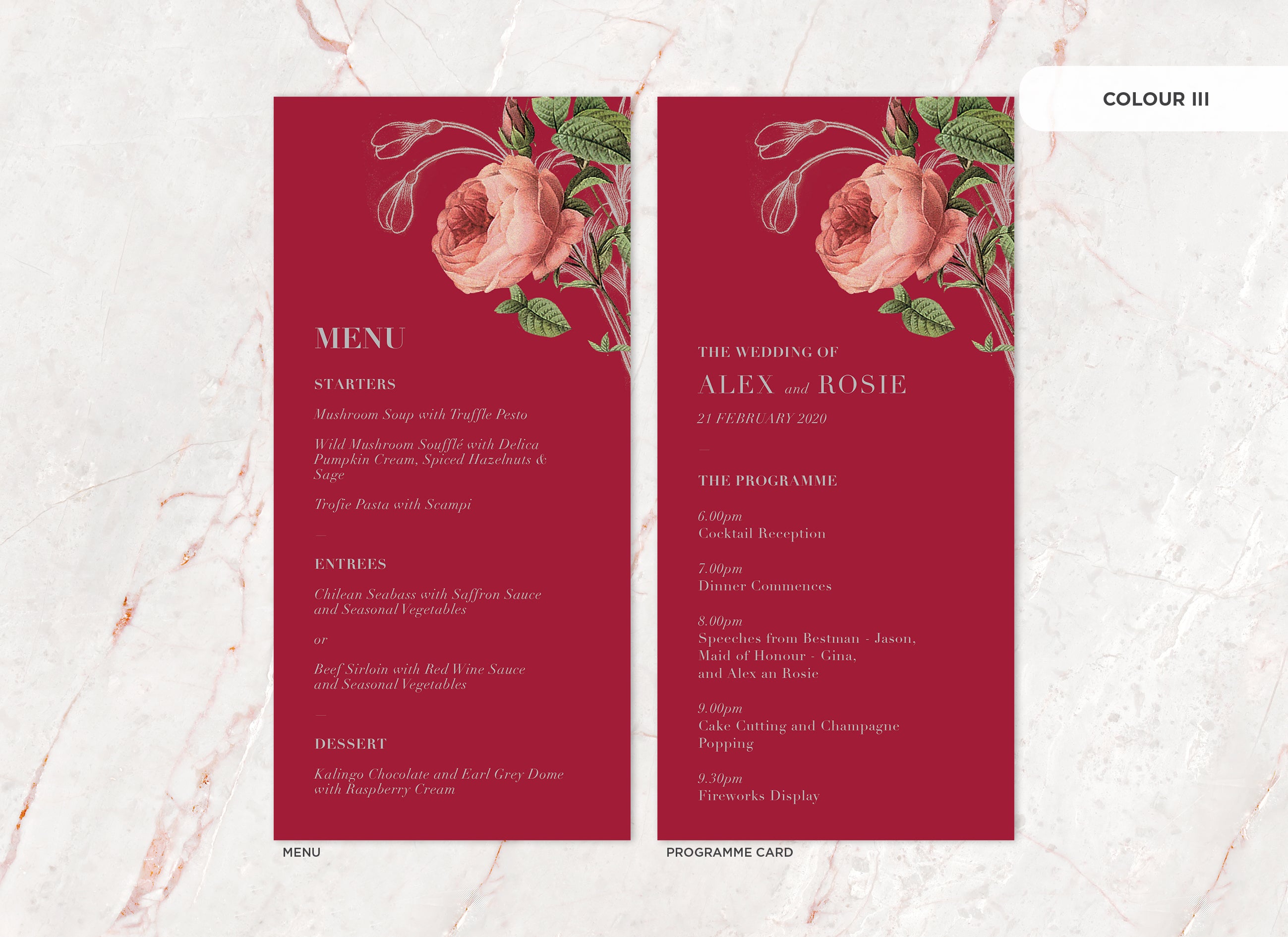 Menu and Programme cards