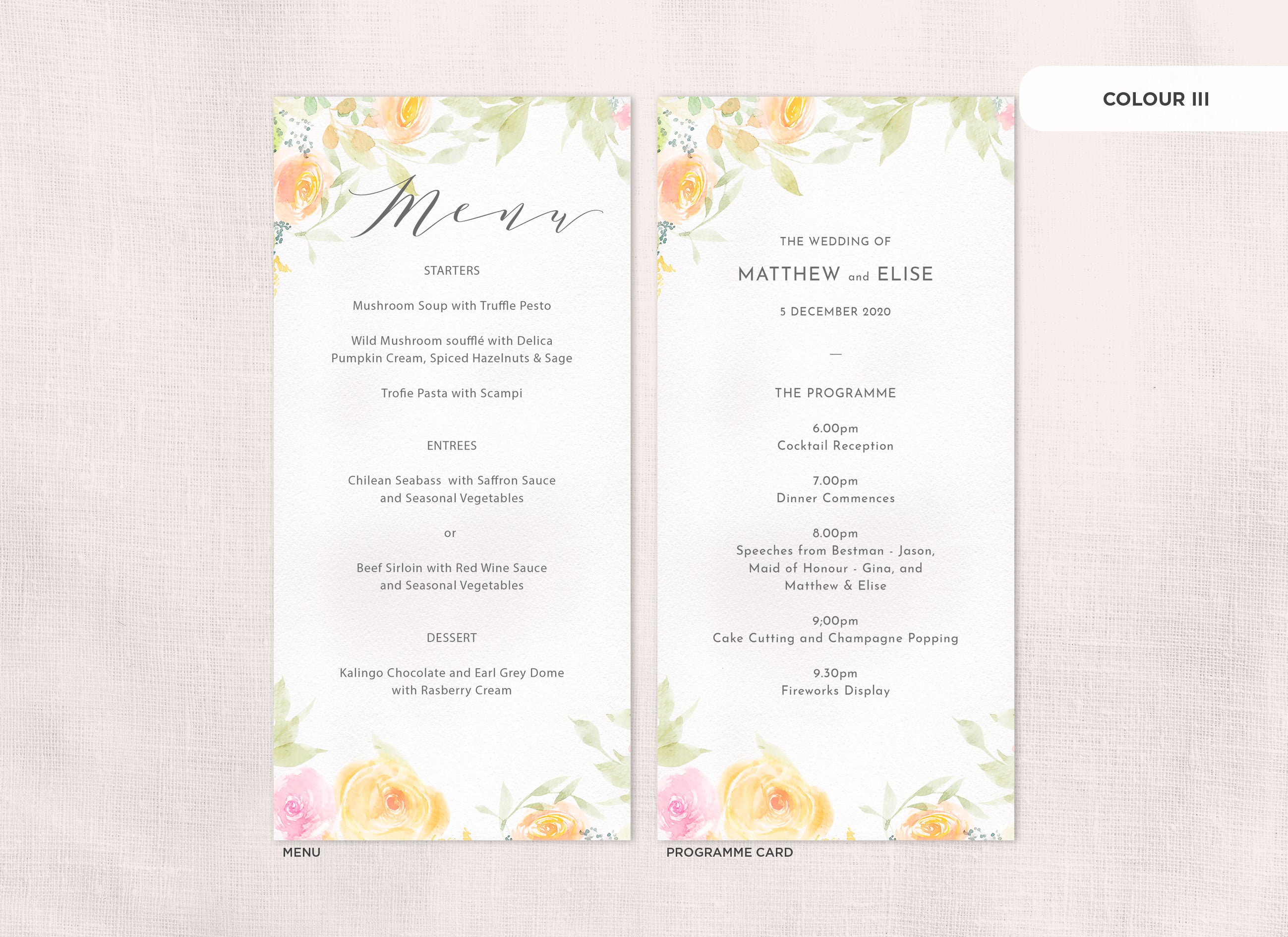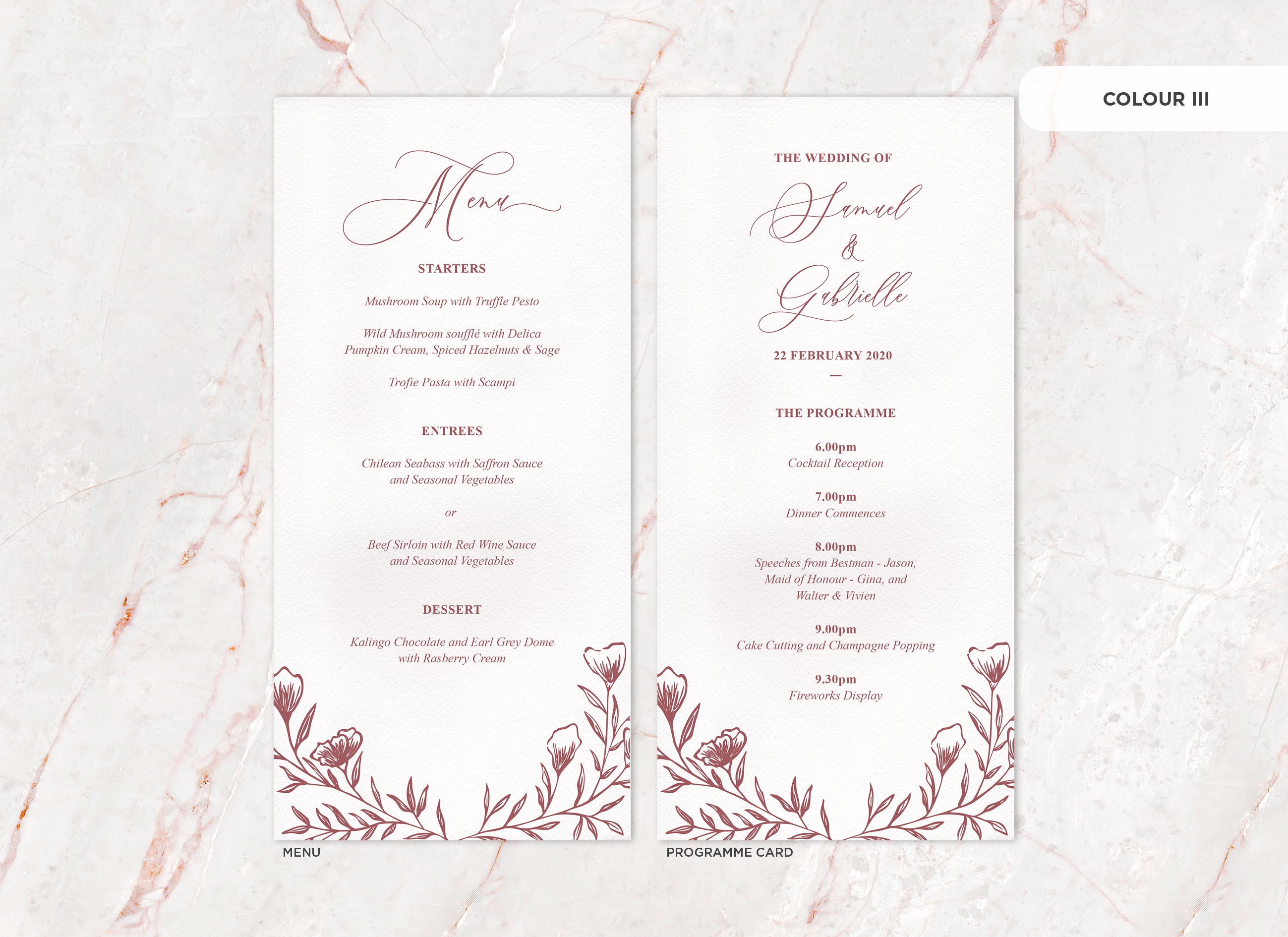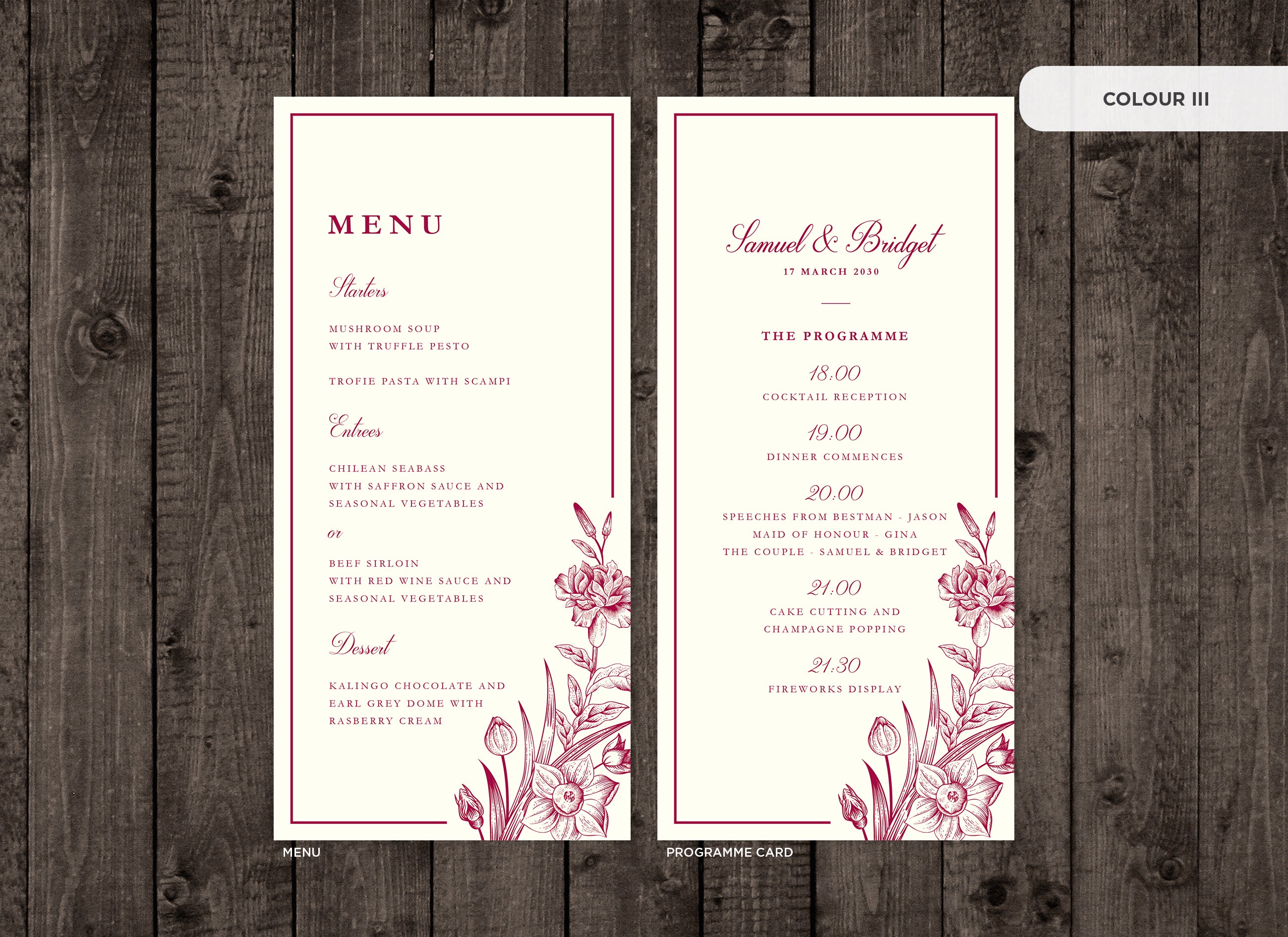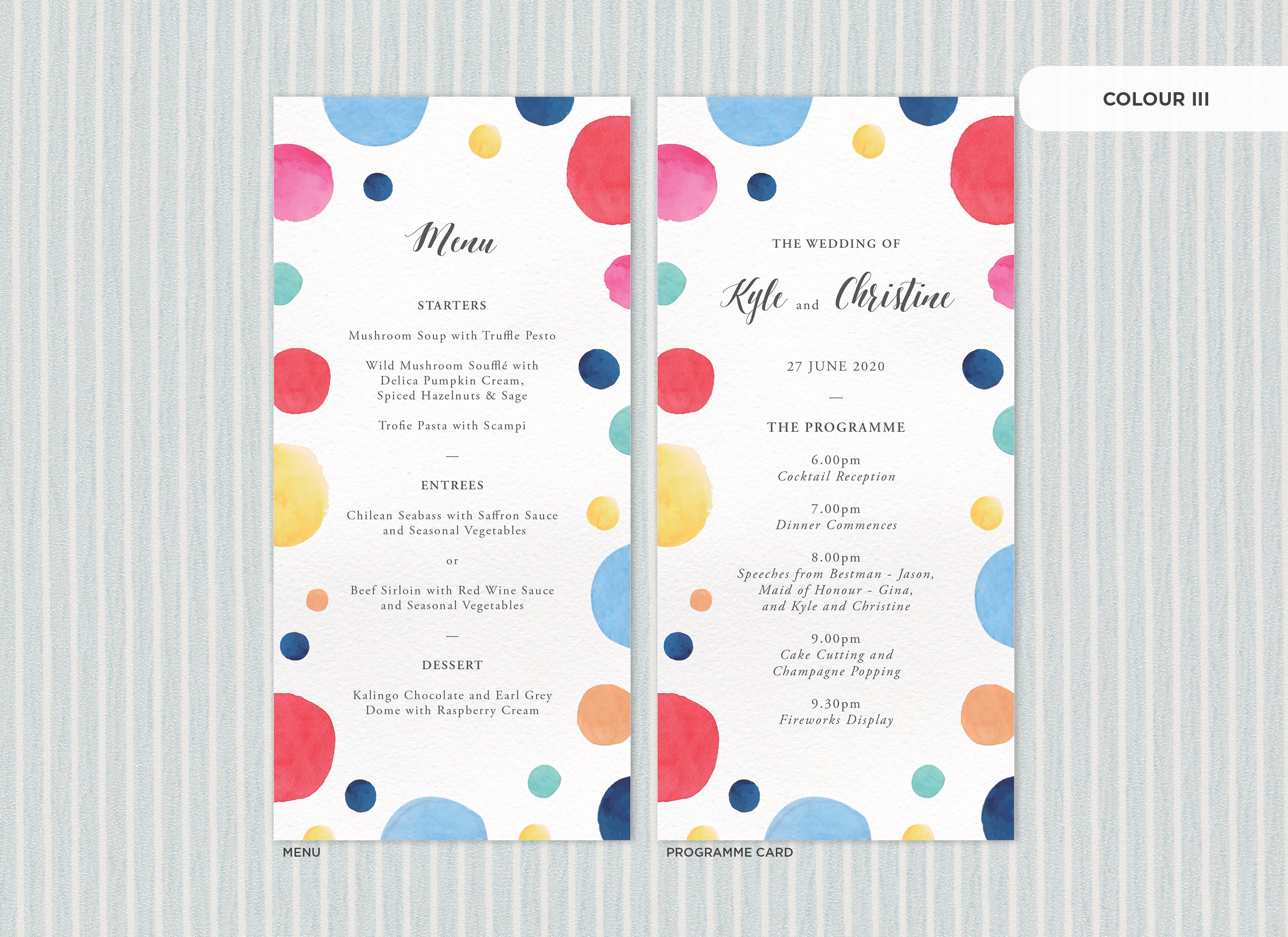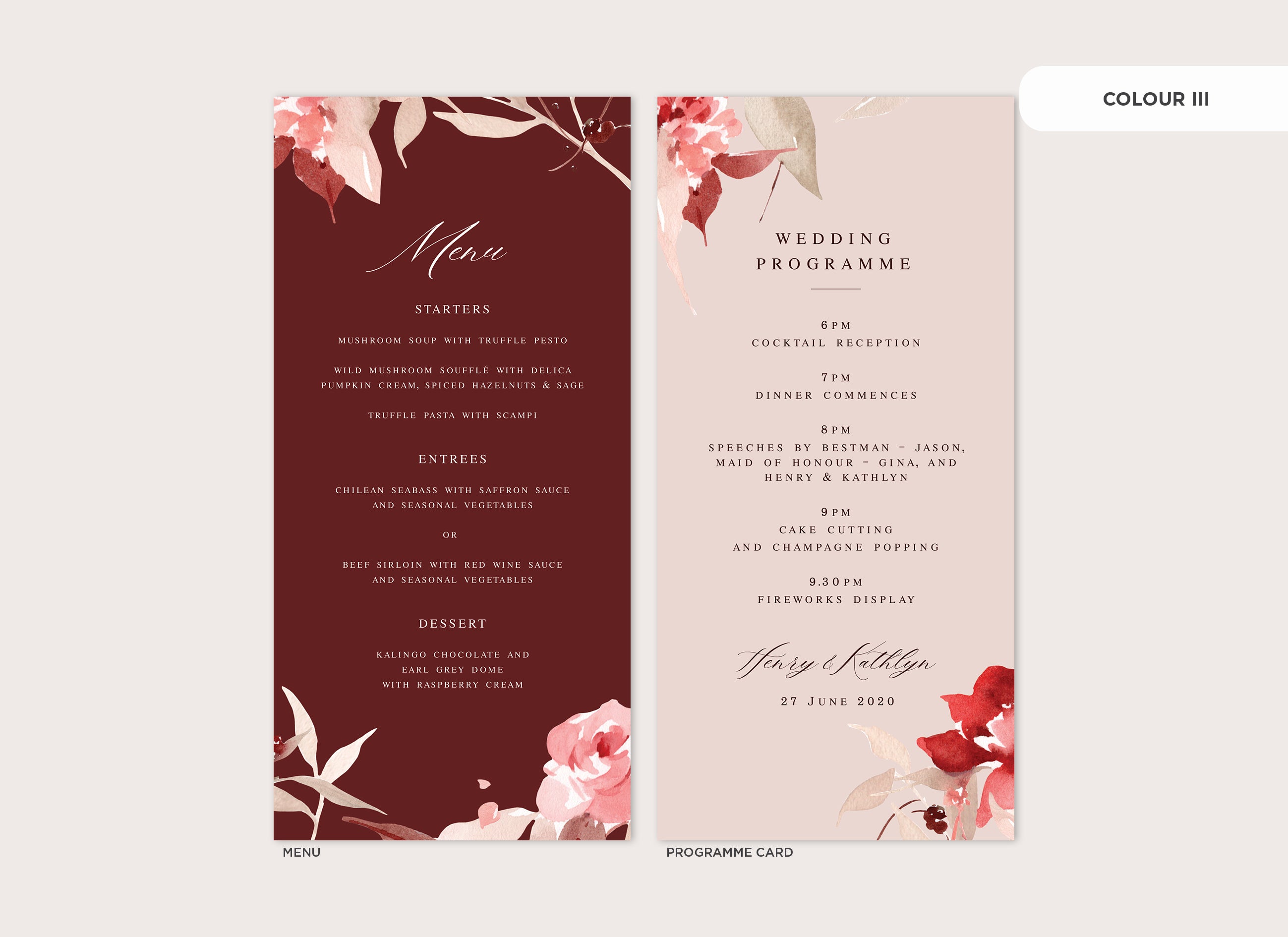 Menu and Programme cards