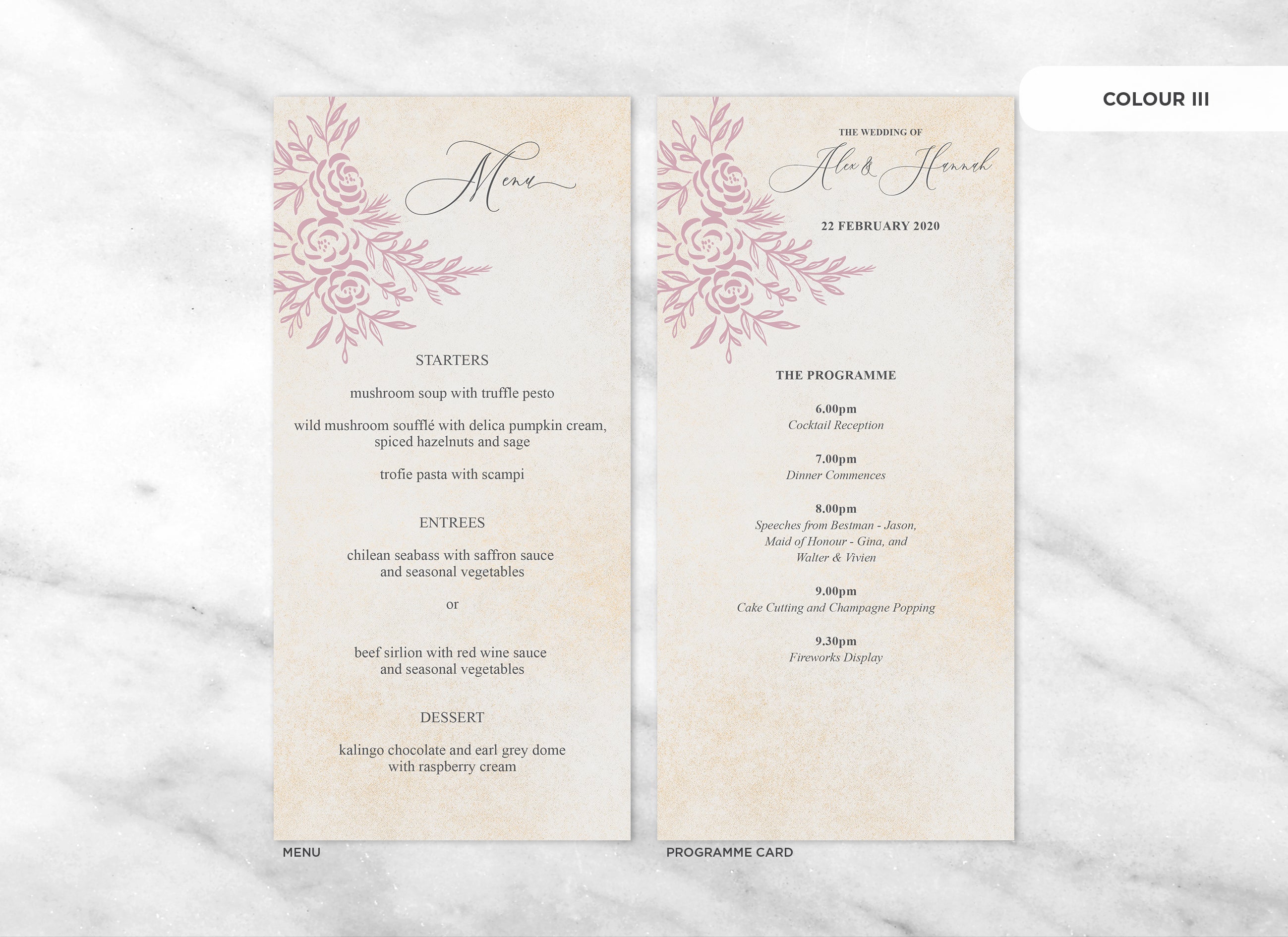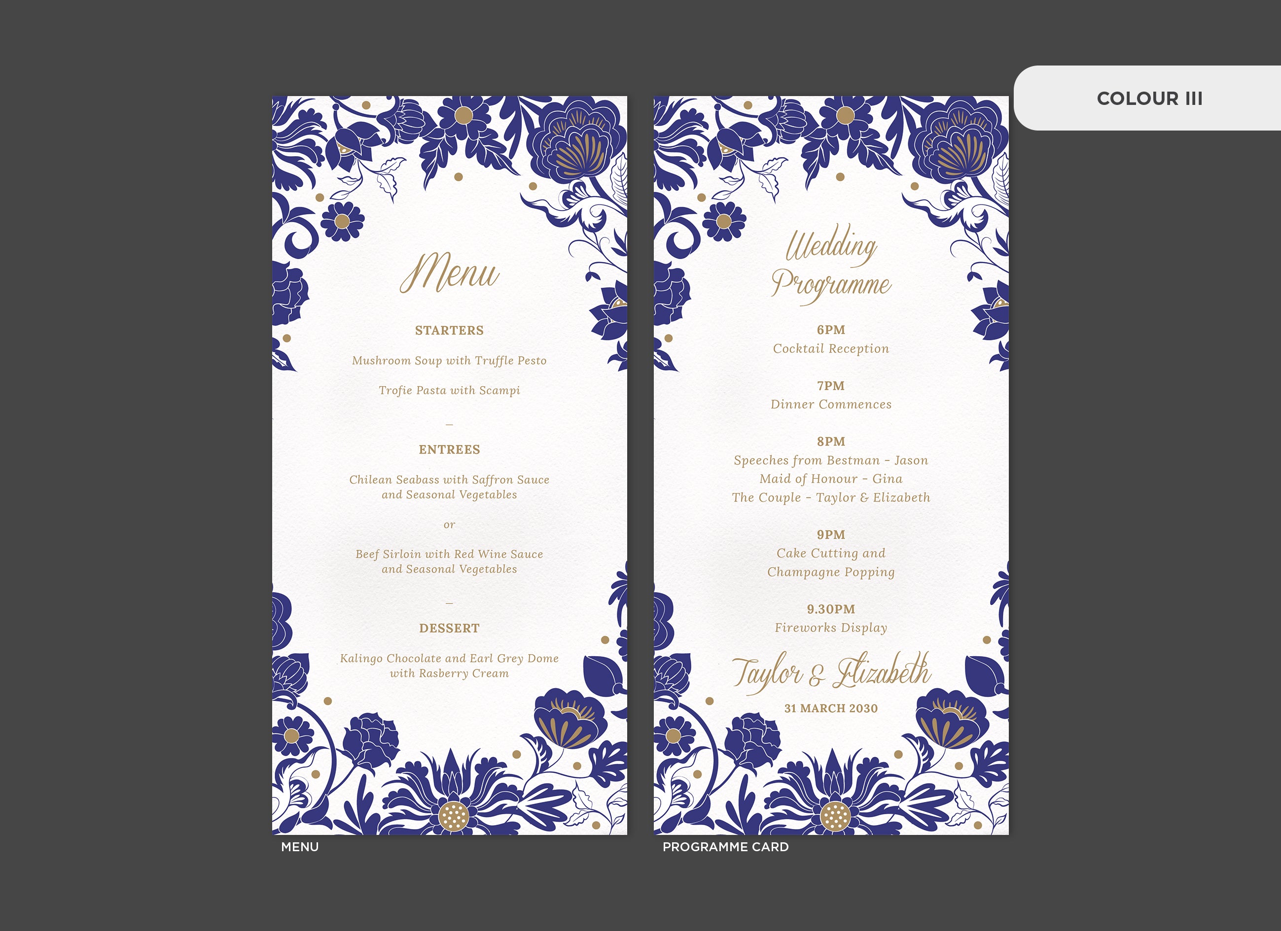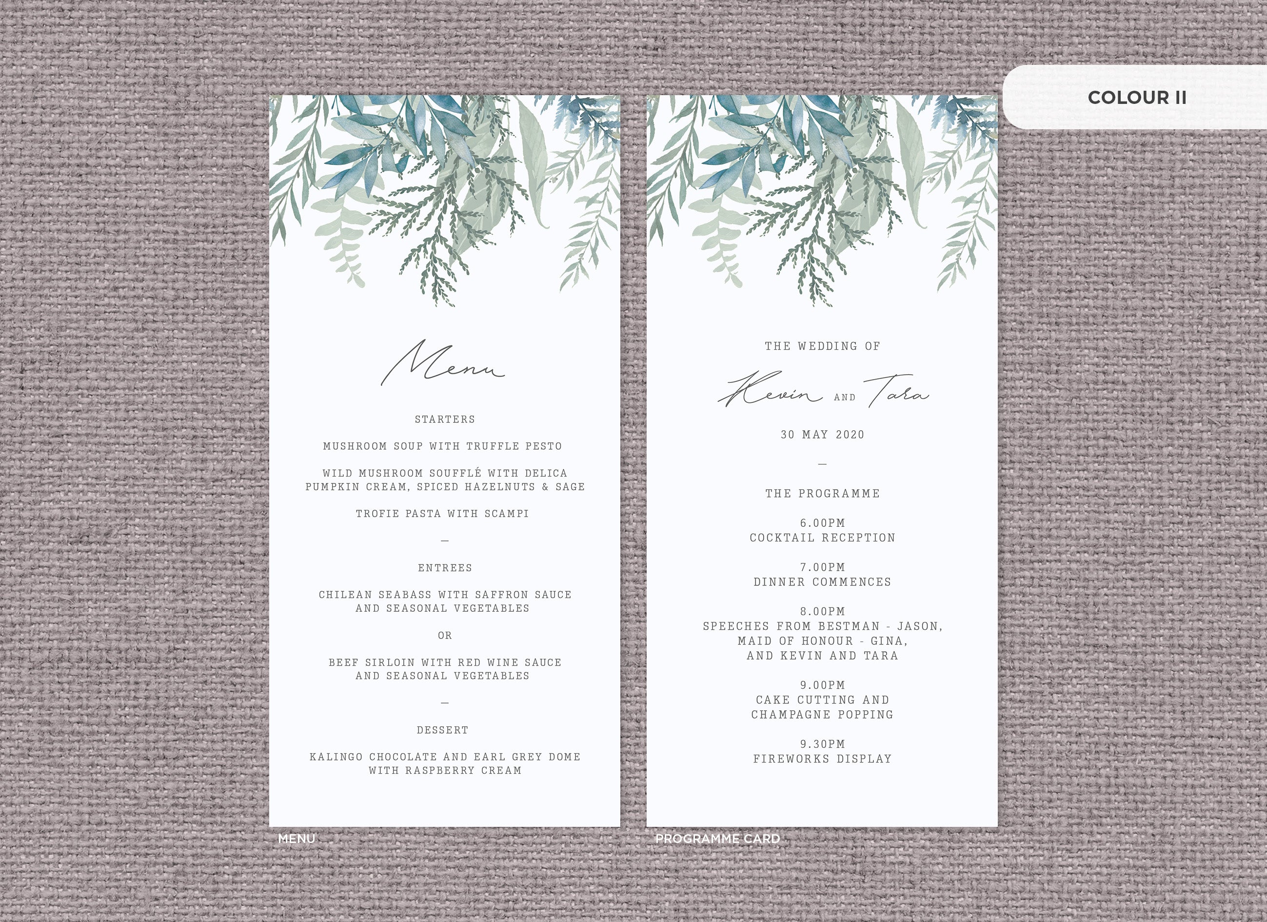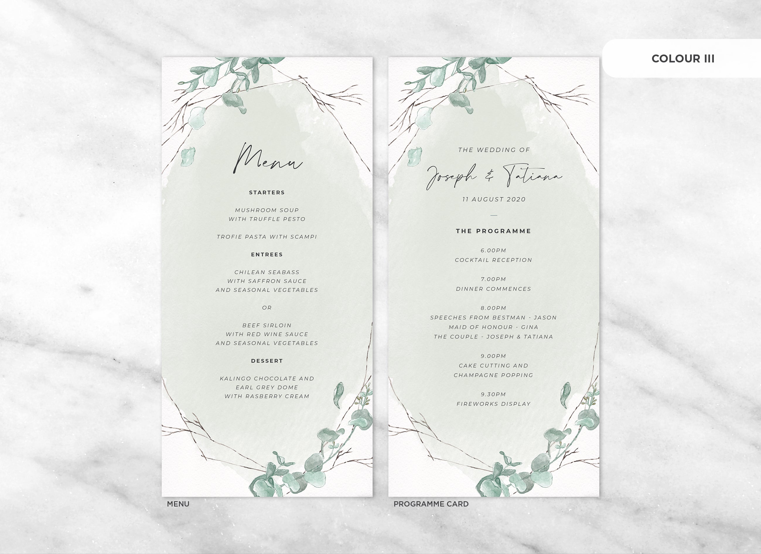 Menu and Programme cards