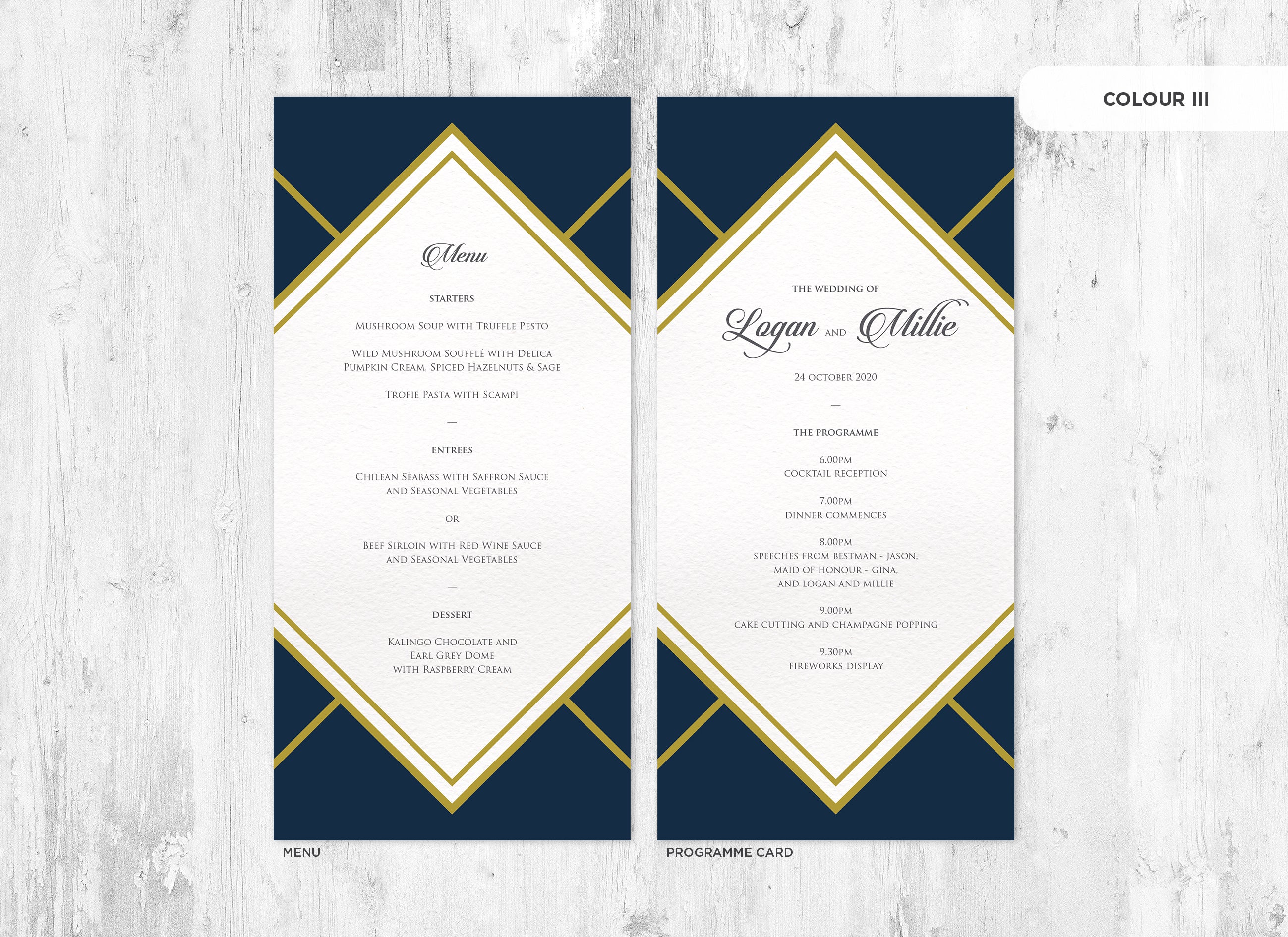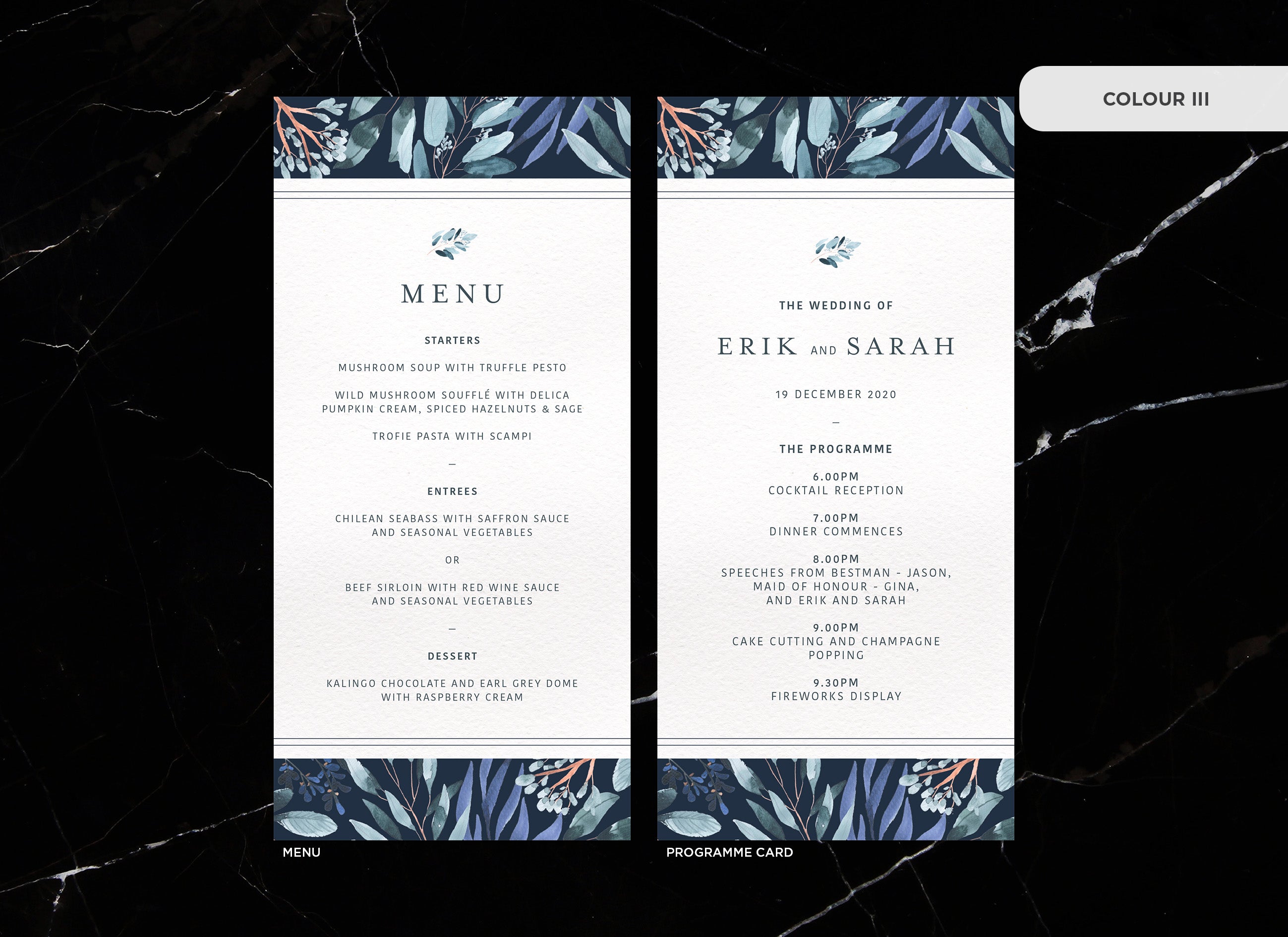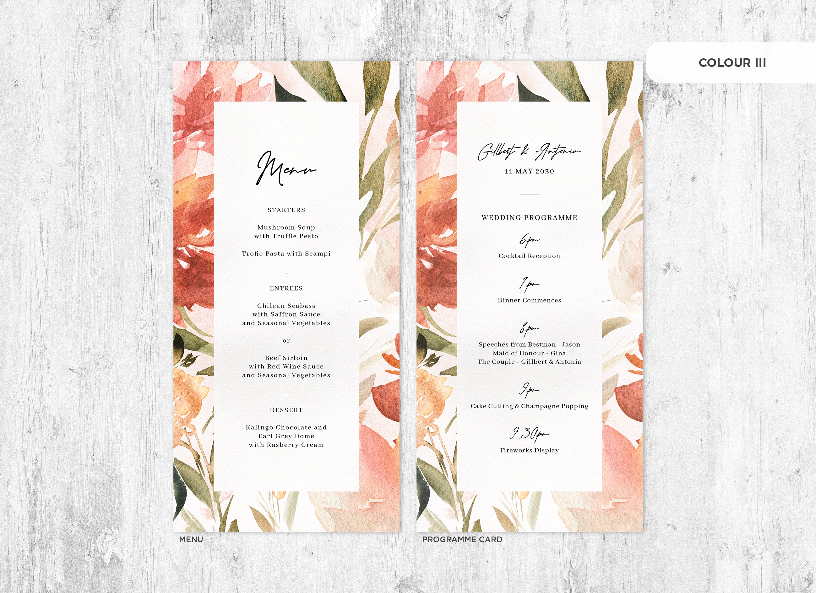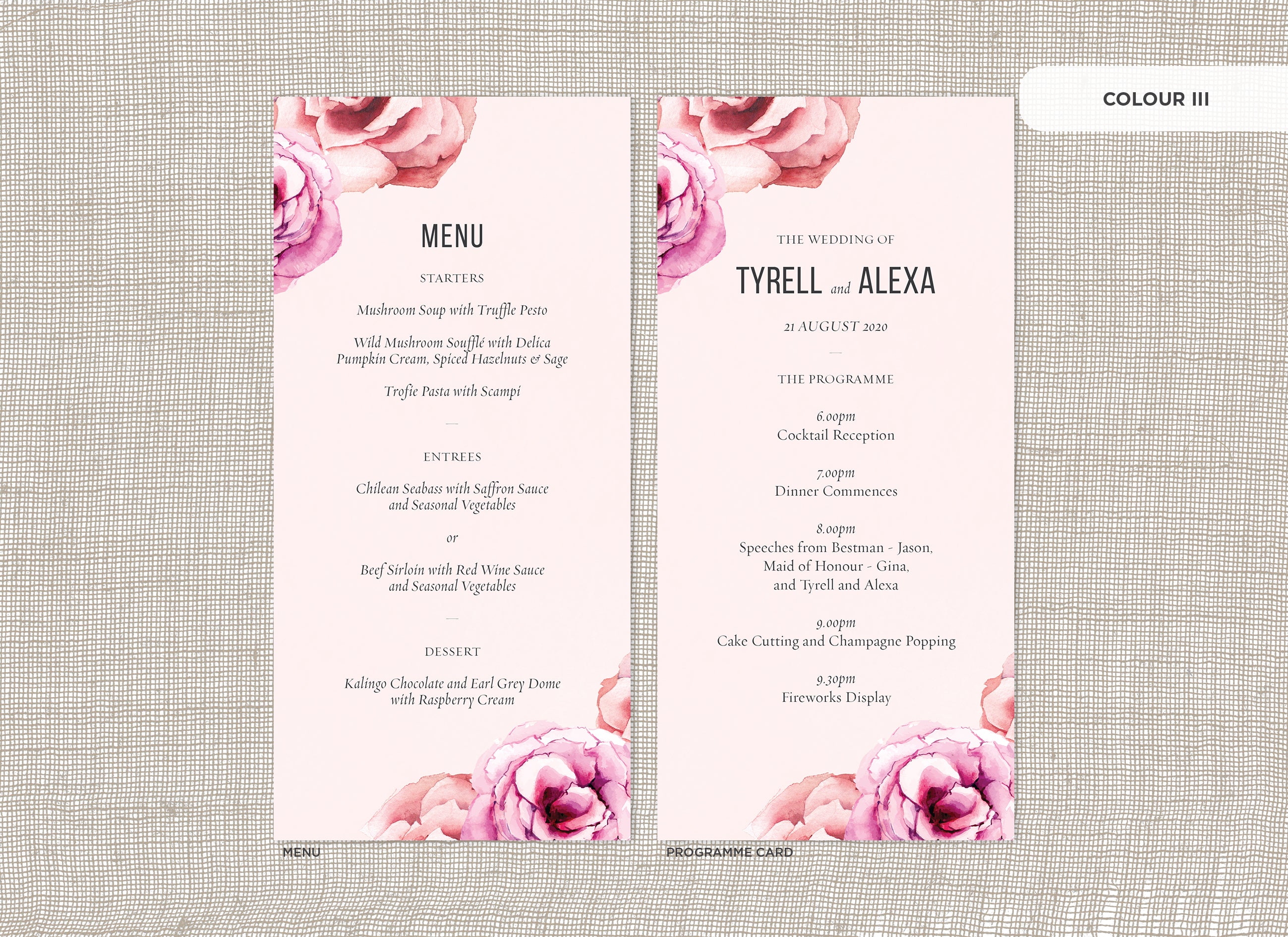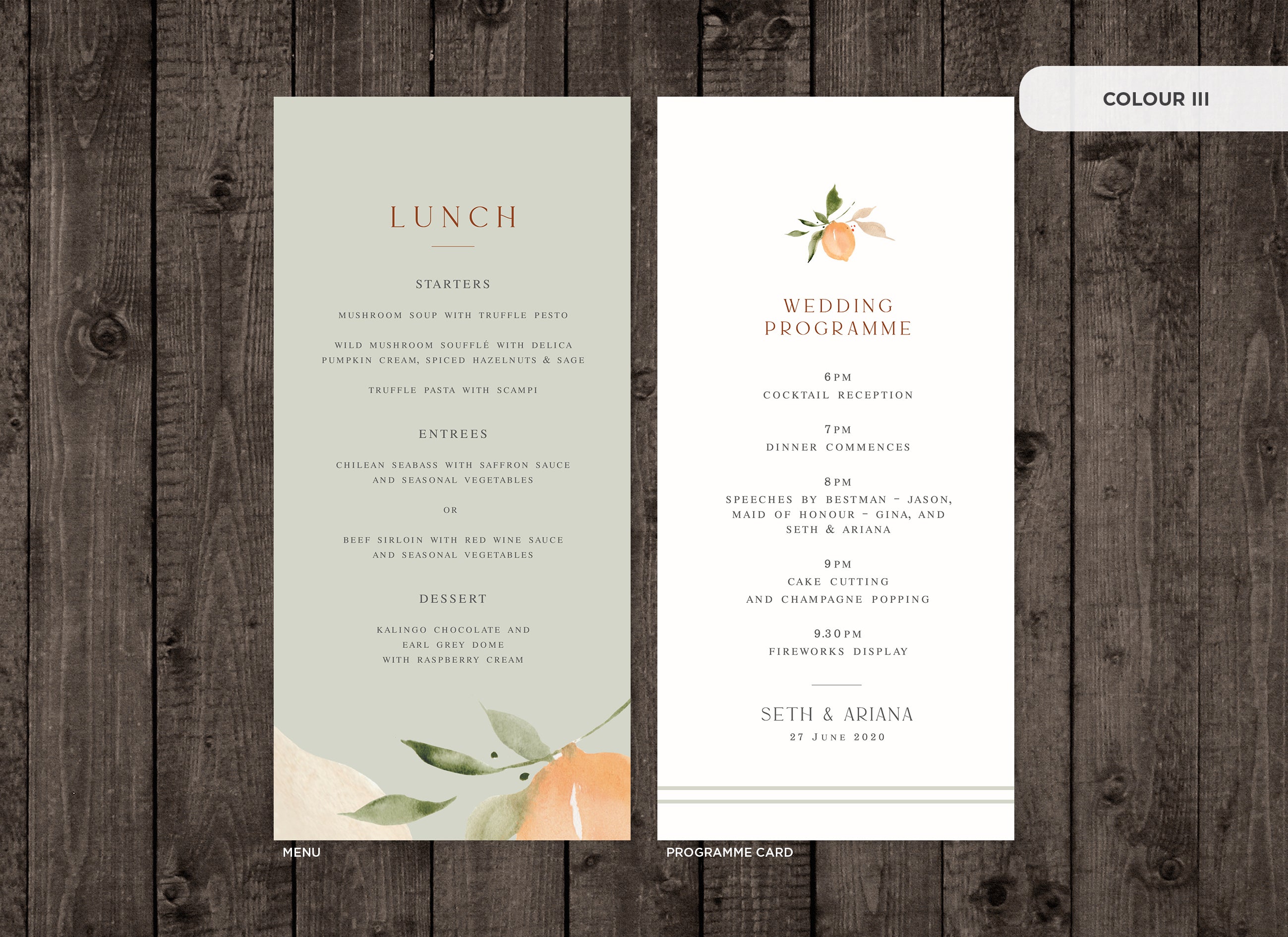 Menu and Programme cards