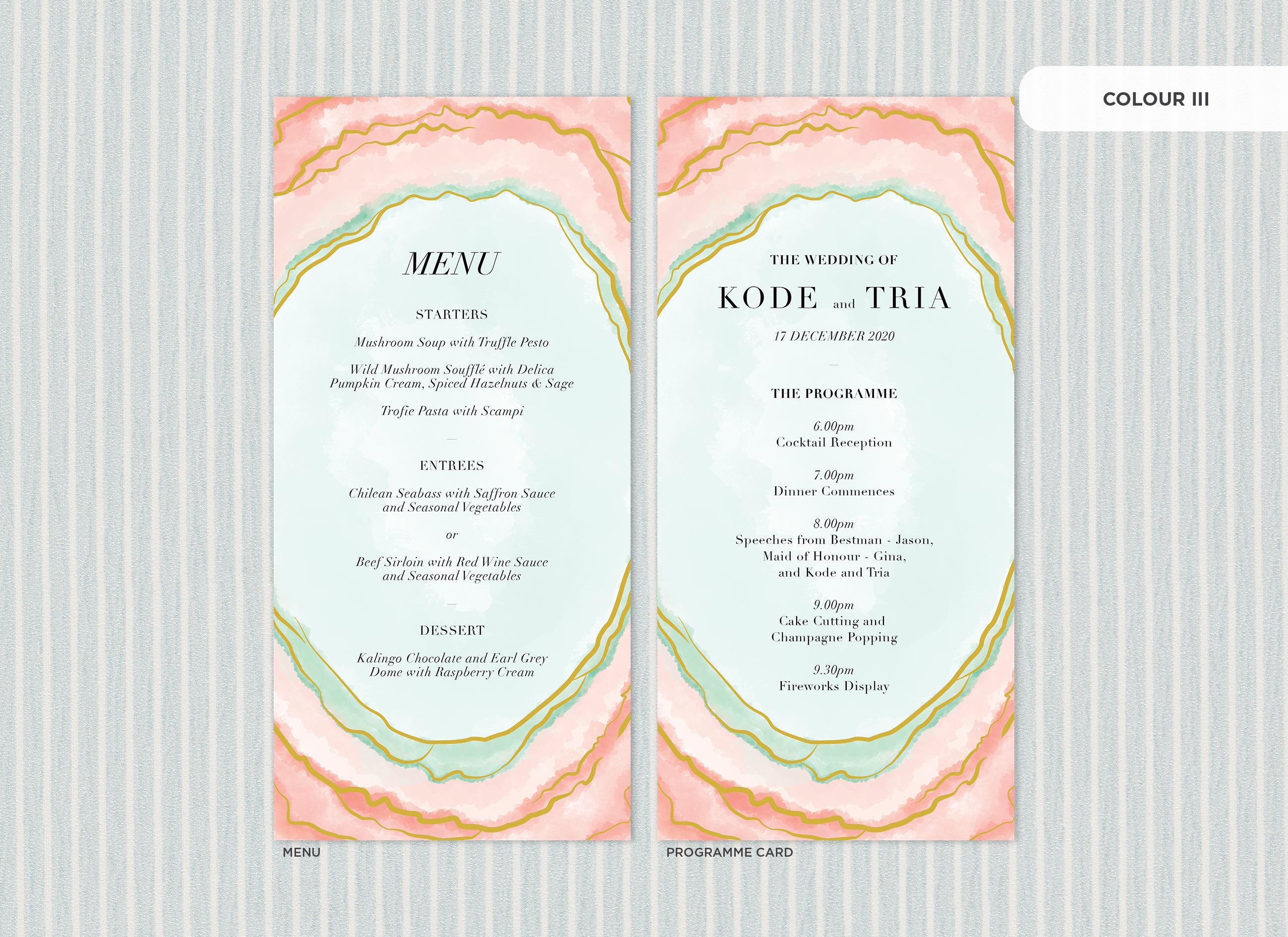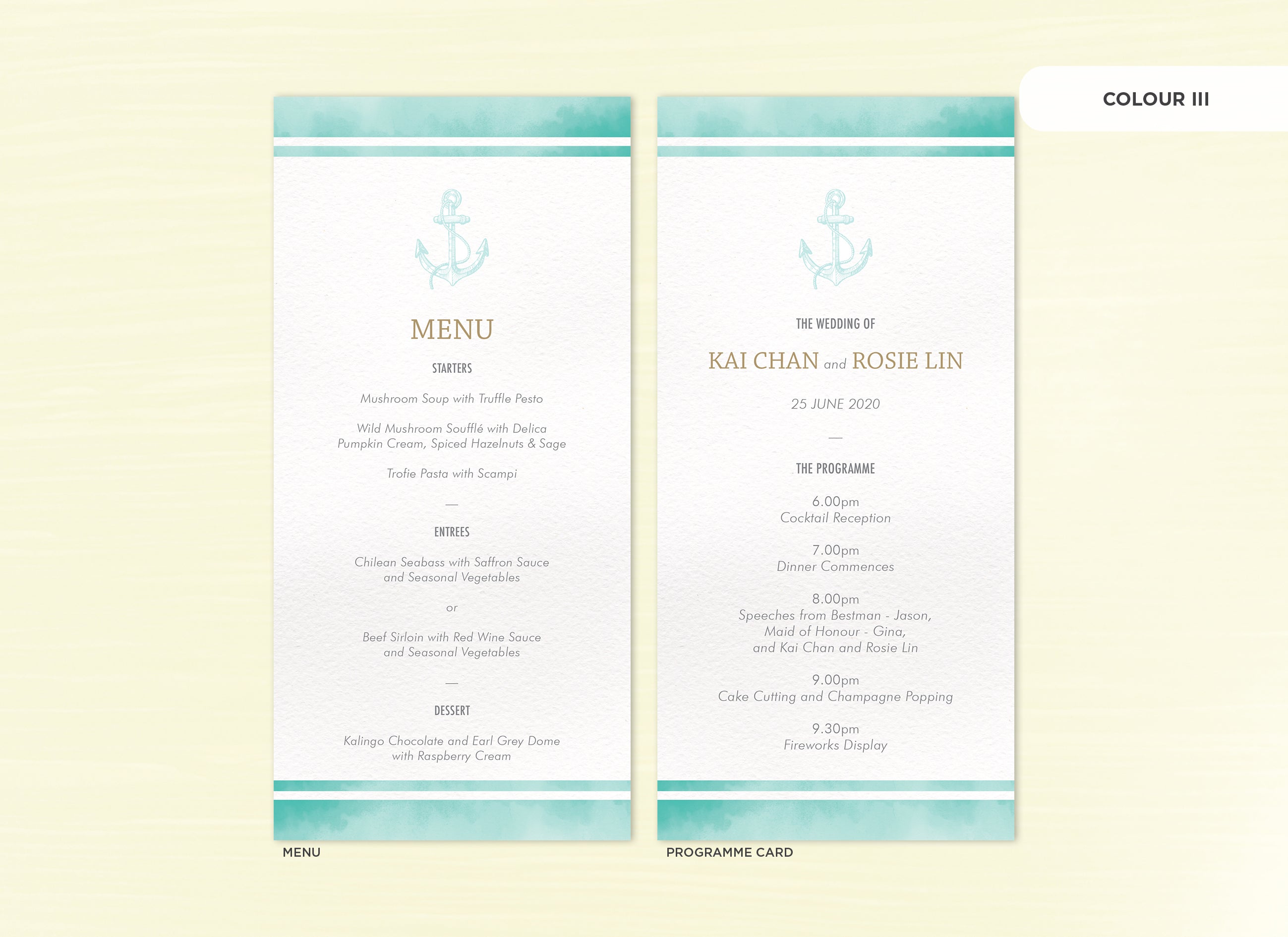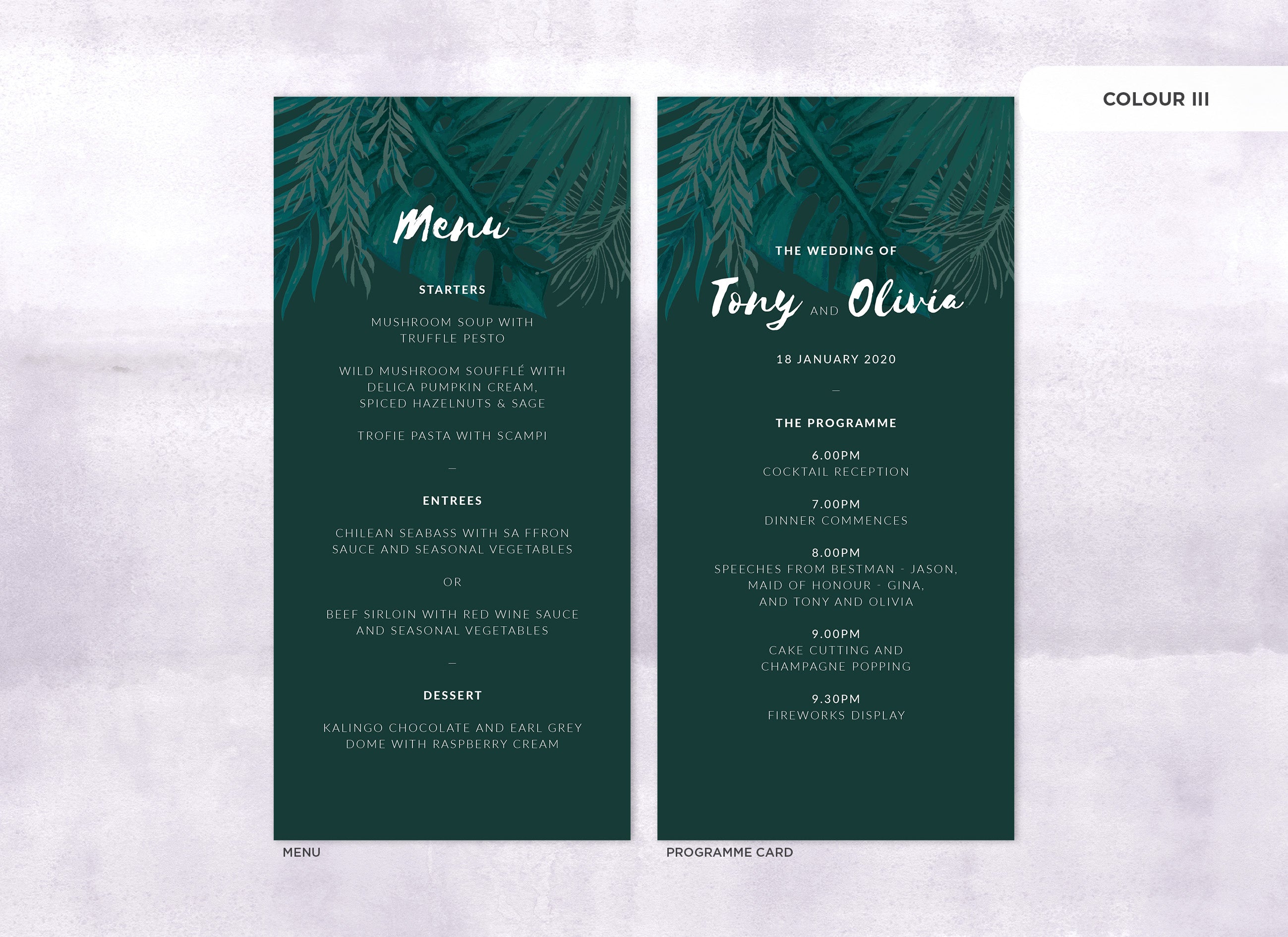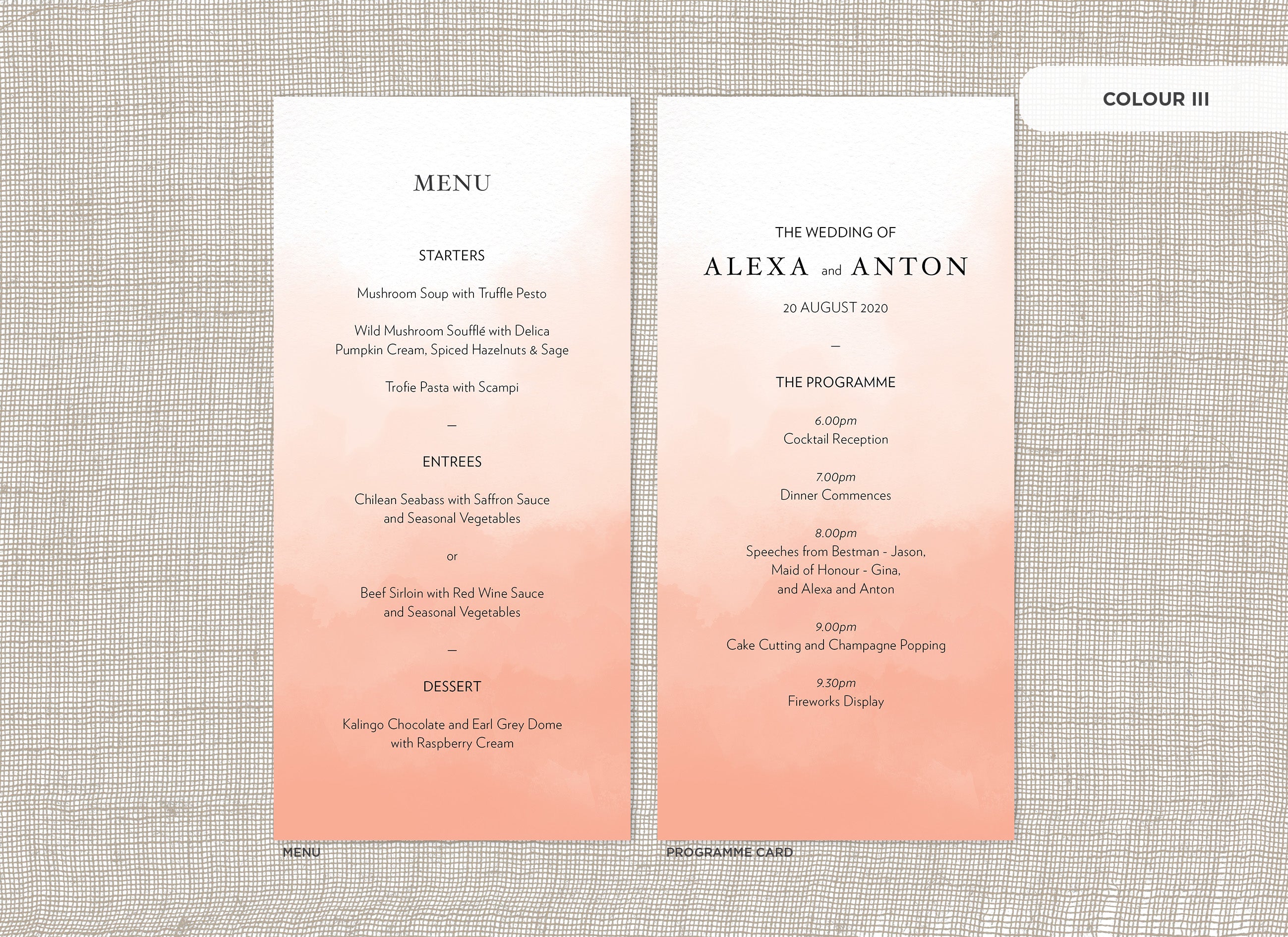 Menu and Programme cards